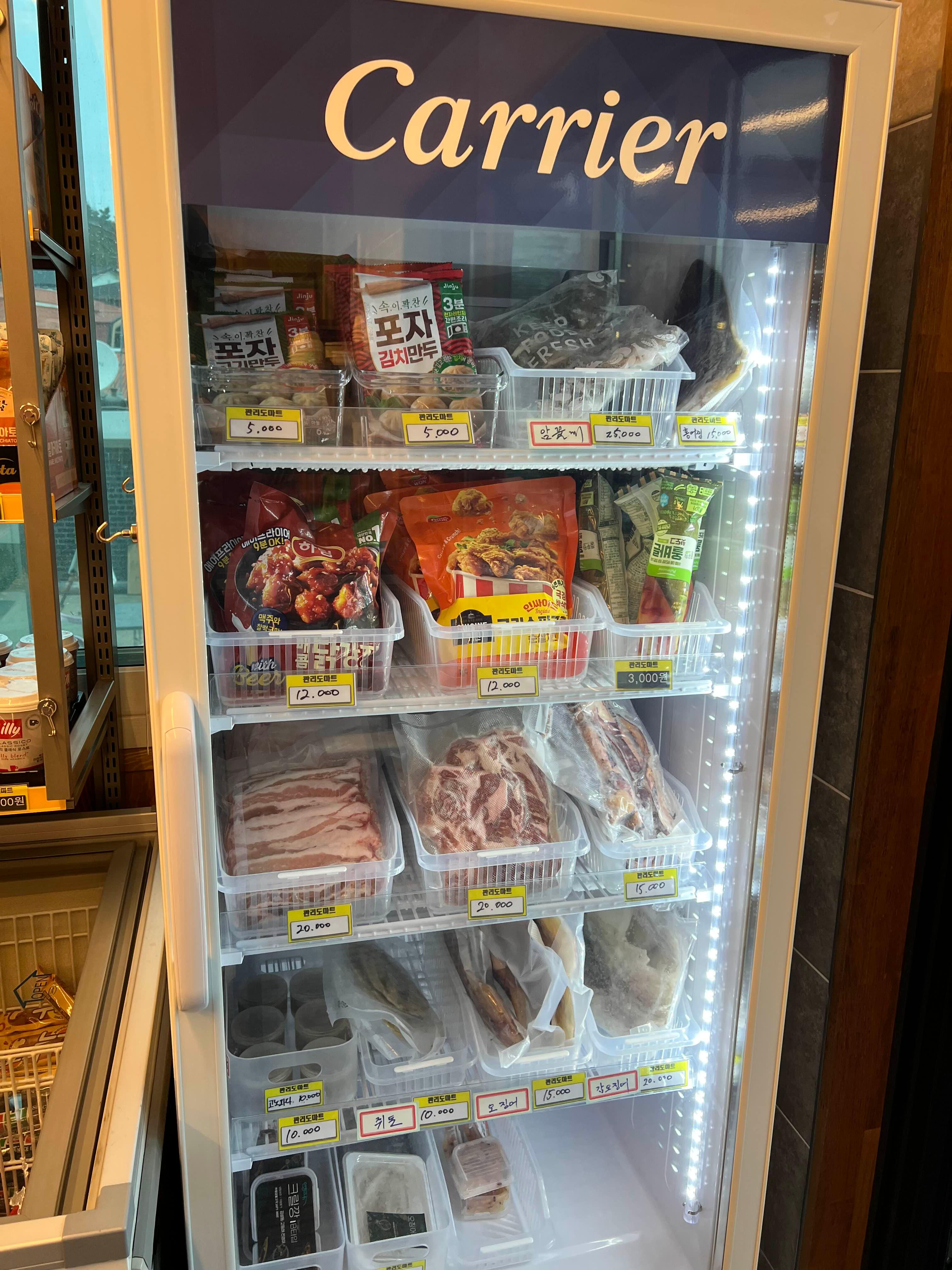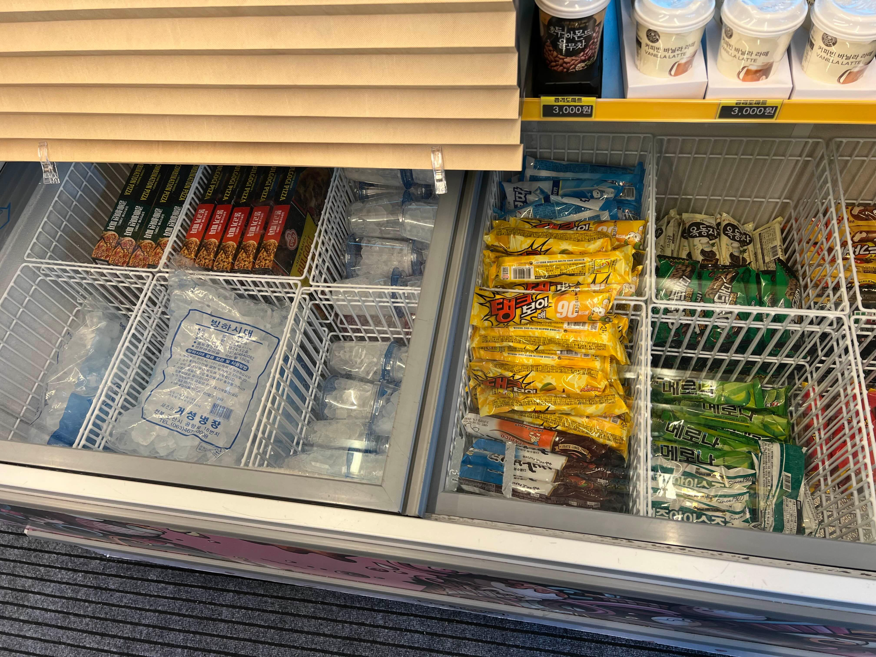 커피, 차, 냉동피자, 얼음, 얼음컵, 아이스크림, 삼겹살 등 고기류, 냉장음식, 라면, 과자, 술(소주, 맥주 등), 낚시용품 등