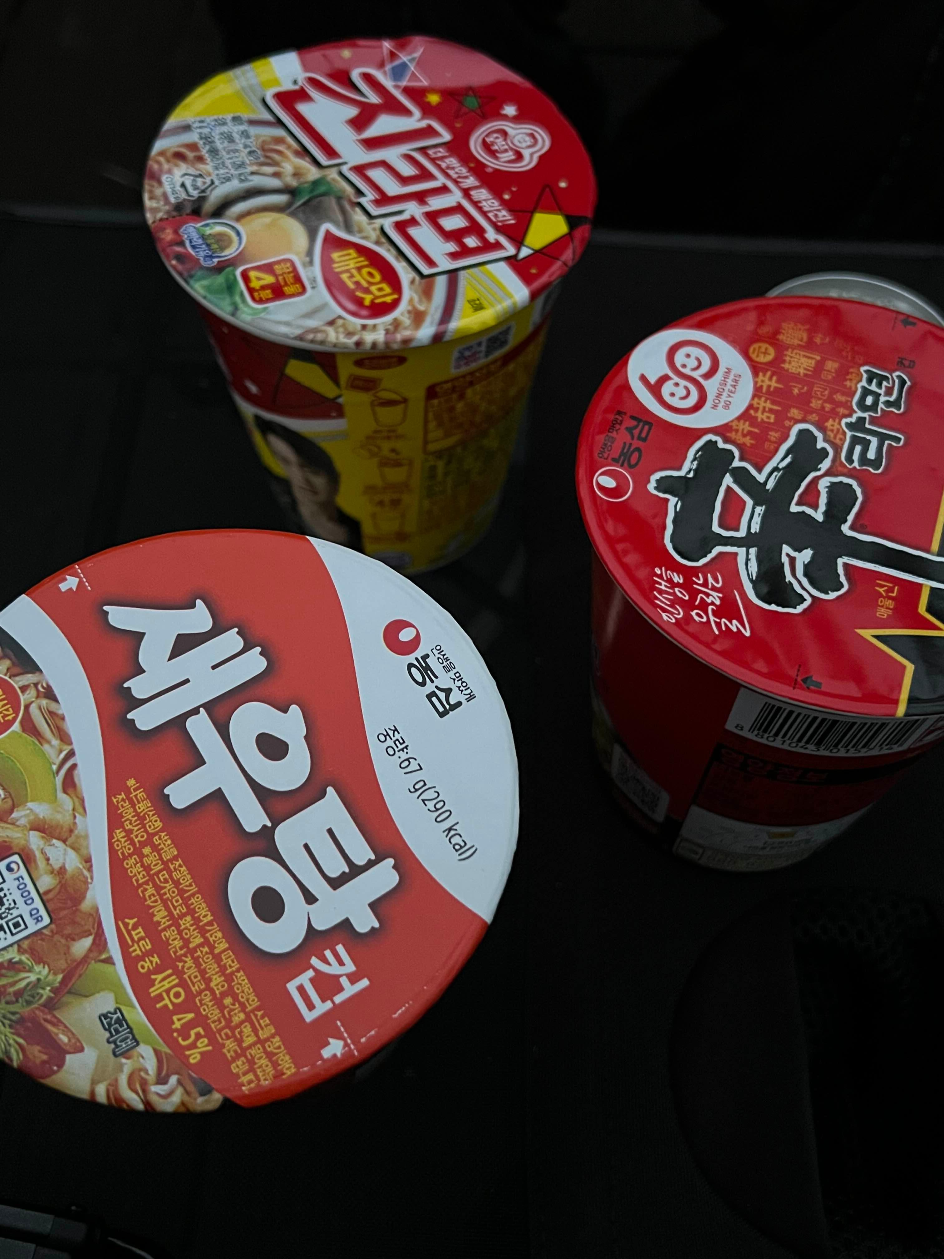 라면, 이소가스, 술, 음료수, 물, 콜라, 음료수, 에프킬라, 햇반, 물티슈 등