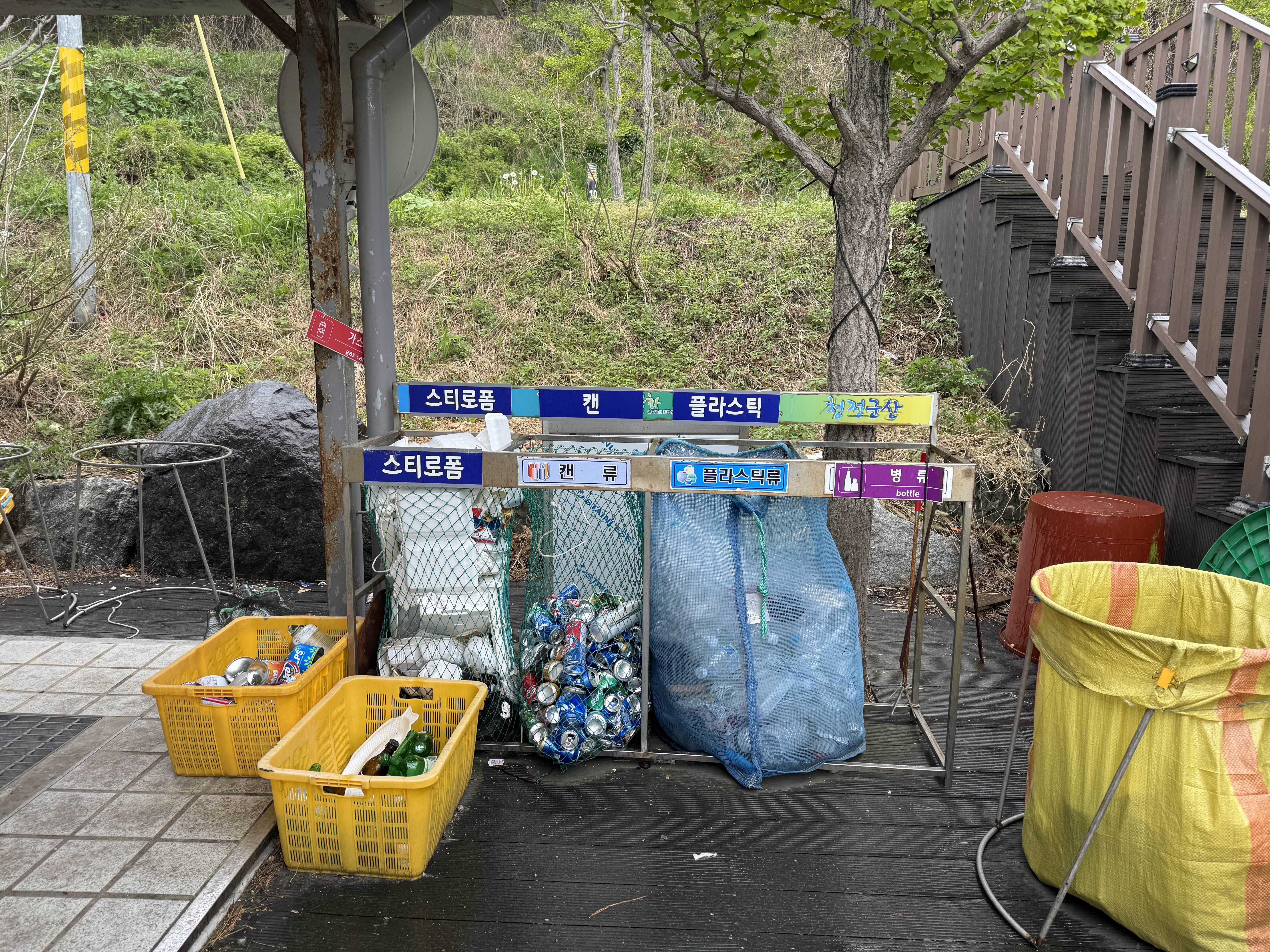 처음에 들어가면 빈 봉투 주셔서 쓰레기 발생한 것 분리하여 담고 나중에 분리수거장에서 잘 정리해서 버리시면 됩니다.