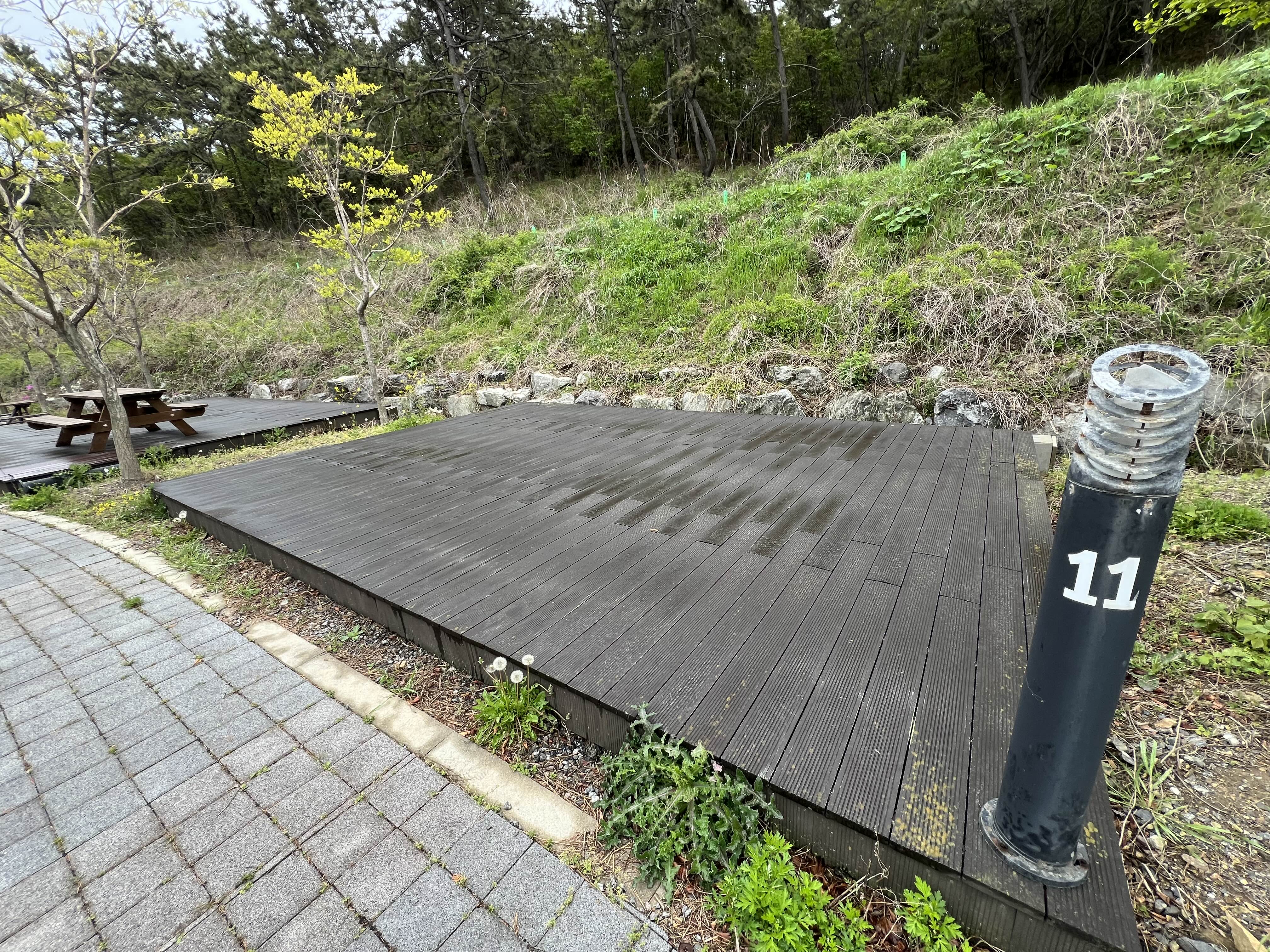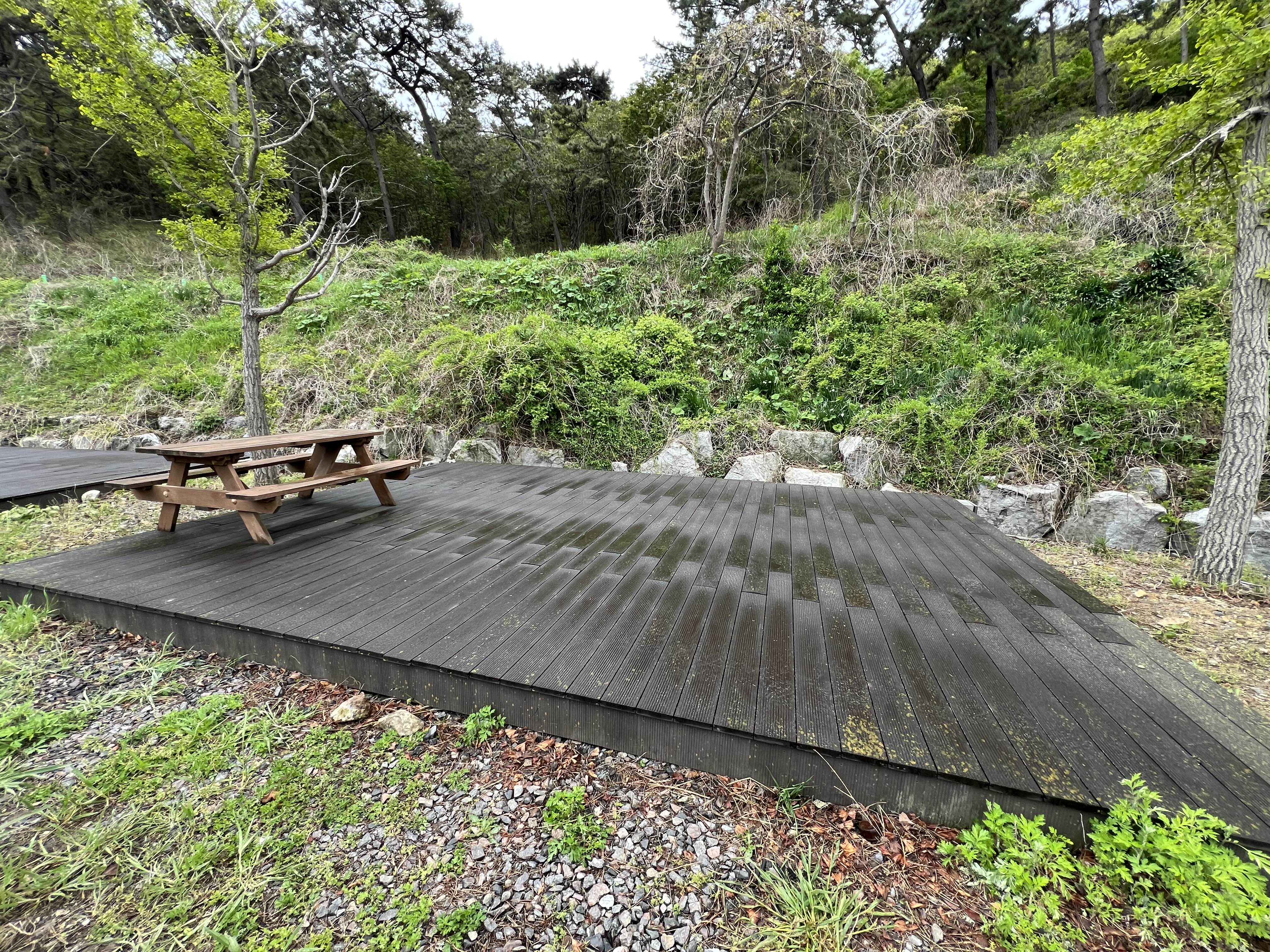 동그란 전망대를 사용하는 C사이트는 뷰가 좋기도 좋지만 공간이 넓어서 아주 좋아요! 그리고 비를 피할 수 있기 때문에 따로 타프를 치지 않아도 좋습니다.