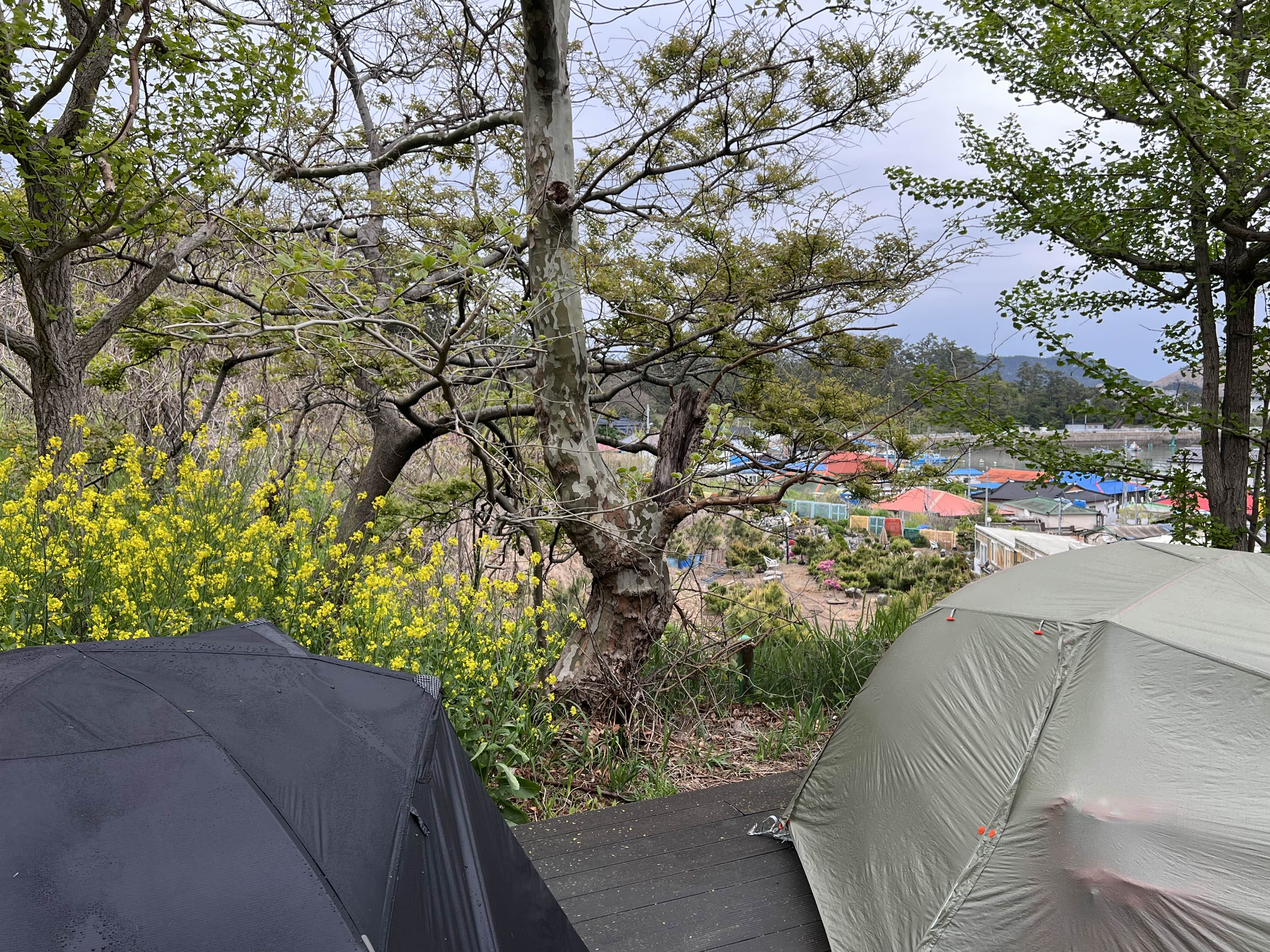 저희는 5번 사이트였는데 가장 구석자리! 꽃도 피어있고 화장실도 가깝고 마을도 보여서 너무 좋았어요.