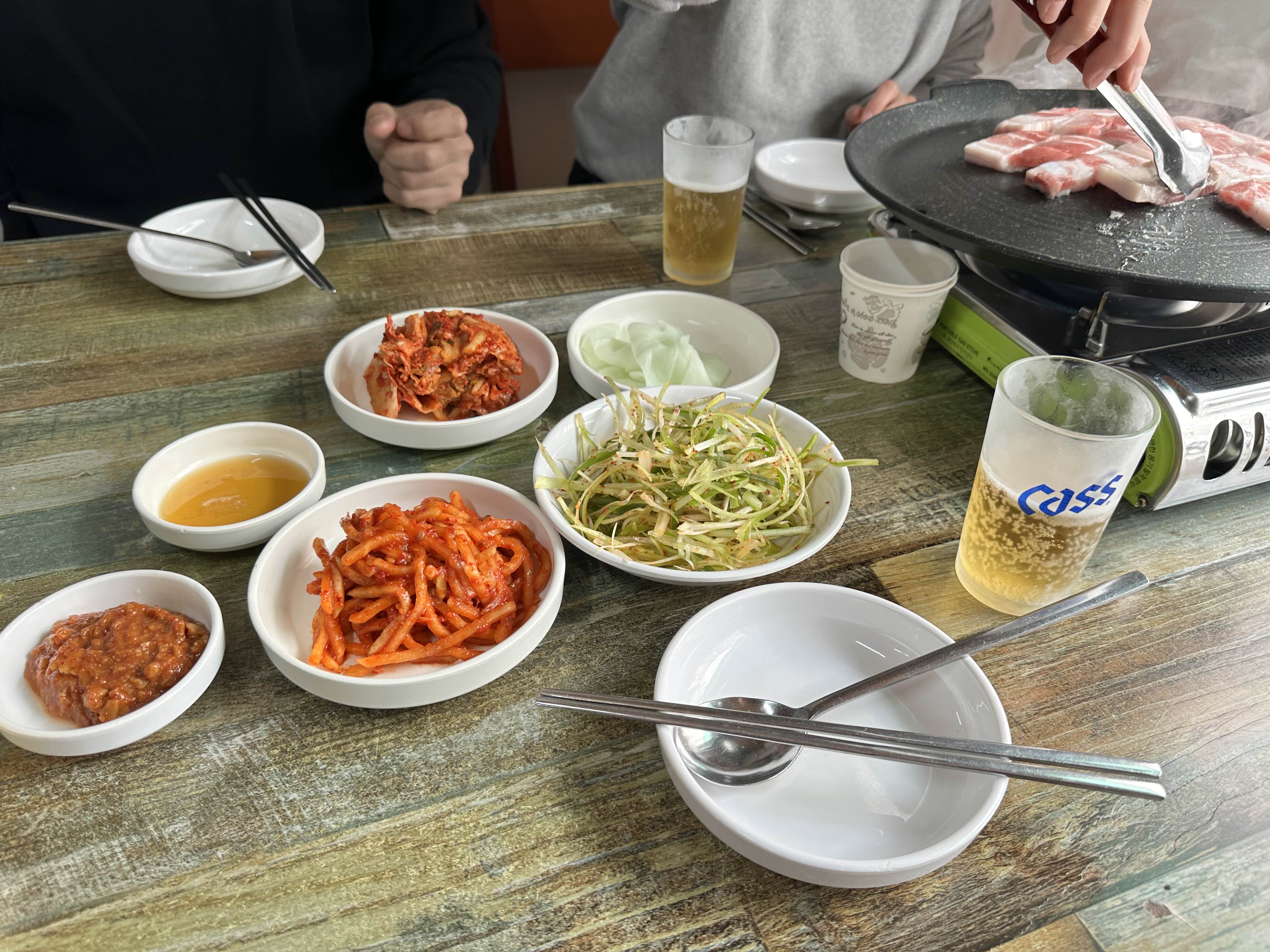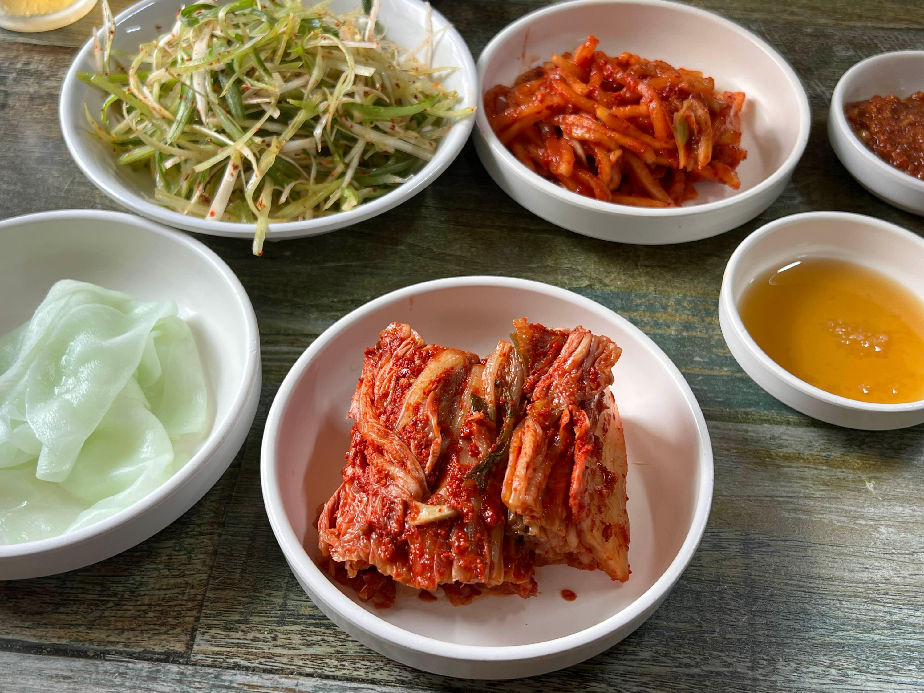 고기는 무생채나 파절임과 같이 먹으면 되고, 김치도 맛있어서 불판에 구워주시는 것도 좋은 방법입니다.