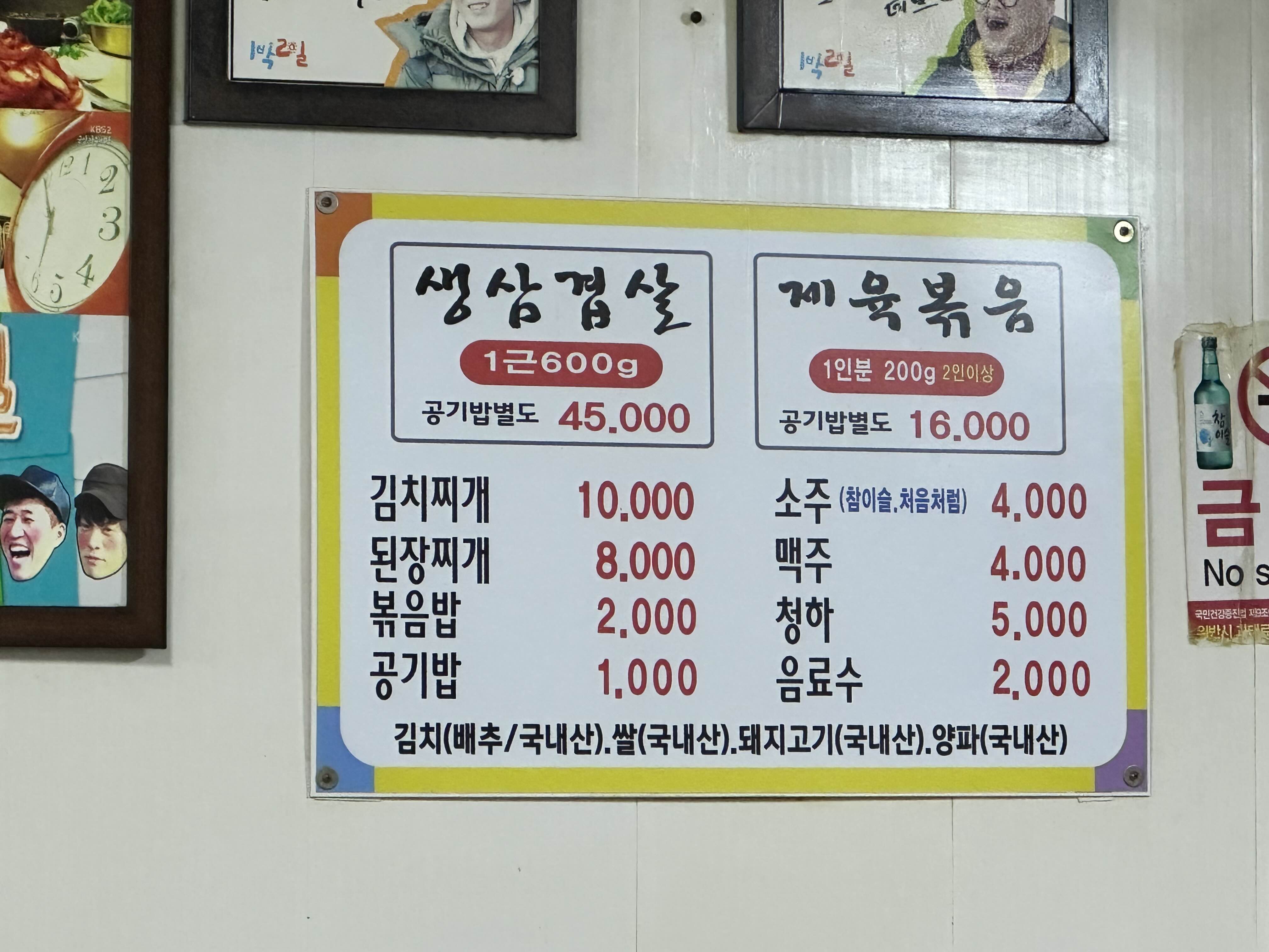 오픈하자마자 바로 갔습니다. 월요일이라 그런지 만석은 아니었어요! 1박2일에도 나오고해서 인기가 많다고 하더라고요. 삼겹살뿐만 아니라 점심에는 제육볶음 드시는 분들도 많습니다.