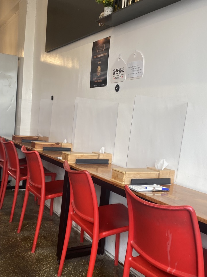 내부 인테리어는 이렇게 생겼고, 이 옆에 또 김밥여행 작은 공간이 추가로 더 있습니다. 프랜차이즈 배달 분식에 질리신 분들이라면 한번 시켜 먹으면 산뜻하고 좋으실 것 같아요.