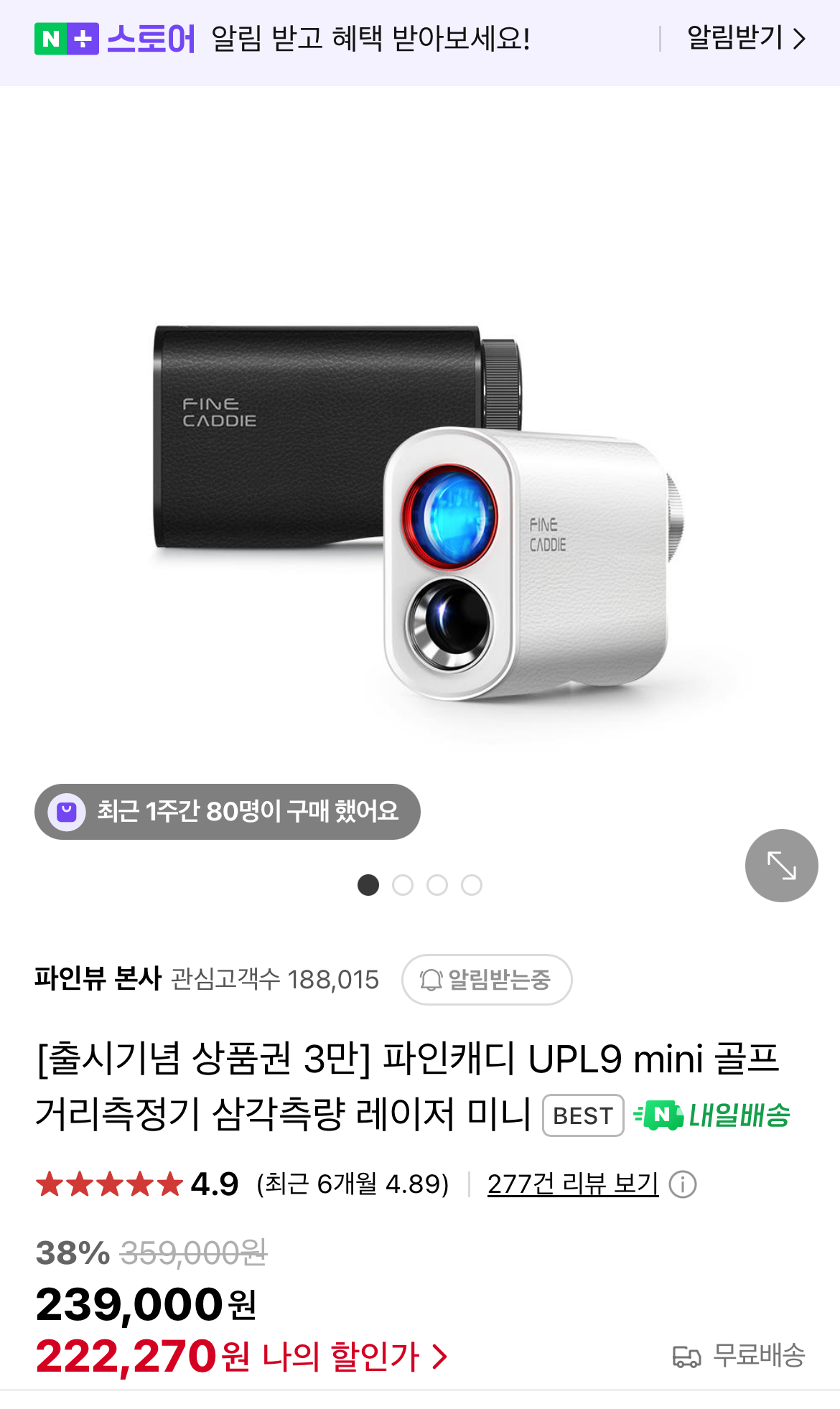 파인캐디 UPL7입니다. 가격은 네이버에서 할인받아서 18만원대 구입했습니다. 제 친구들도 다 10만원대 제품을 구매해서 쓰고 있는데 잘 쓰고 있더라고요.