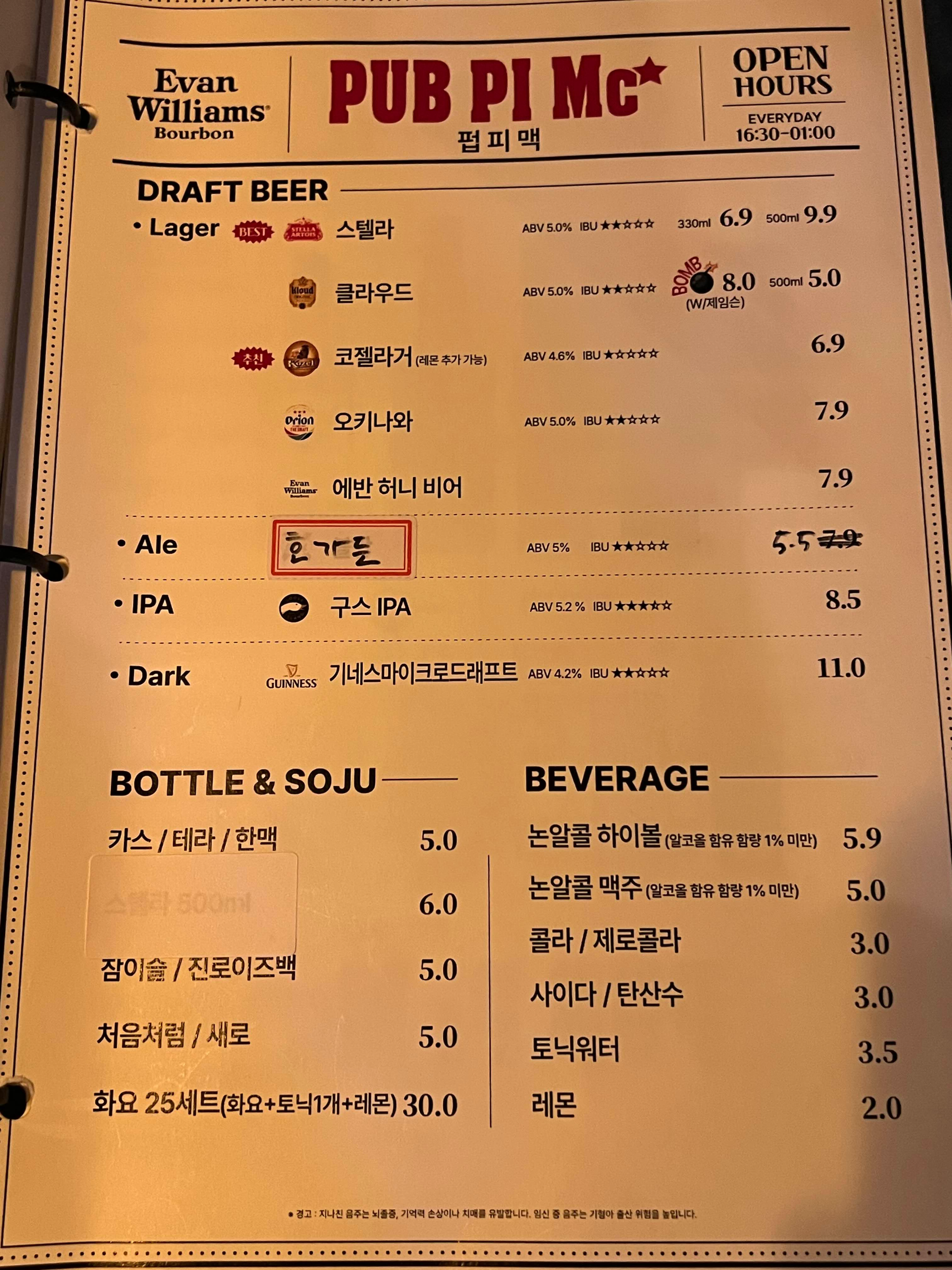 맥주는 스텔라도 있고 이벤트 같은 것도 있었는데 가격대비 클라우드가 최고더라고요!