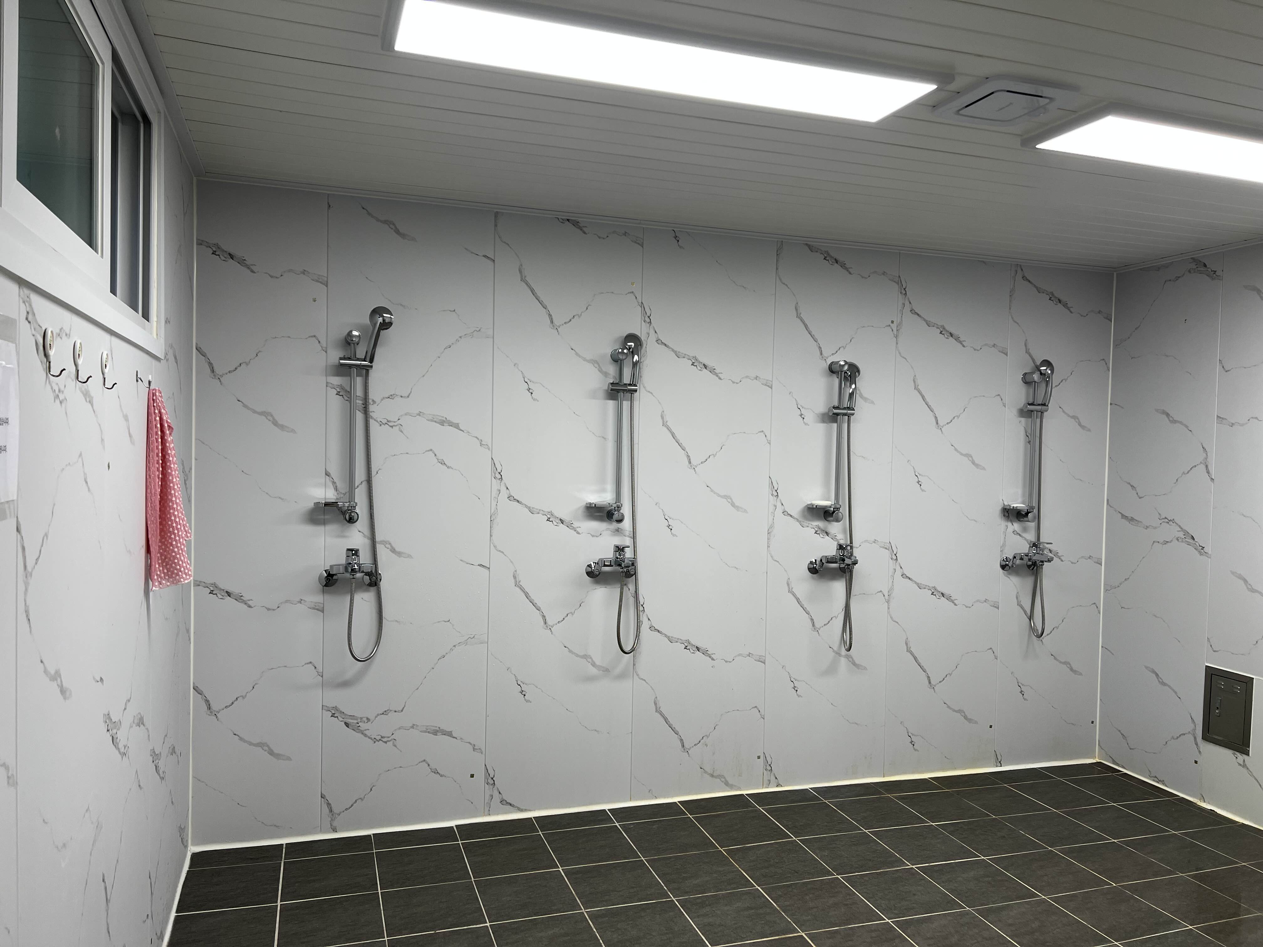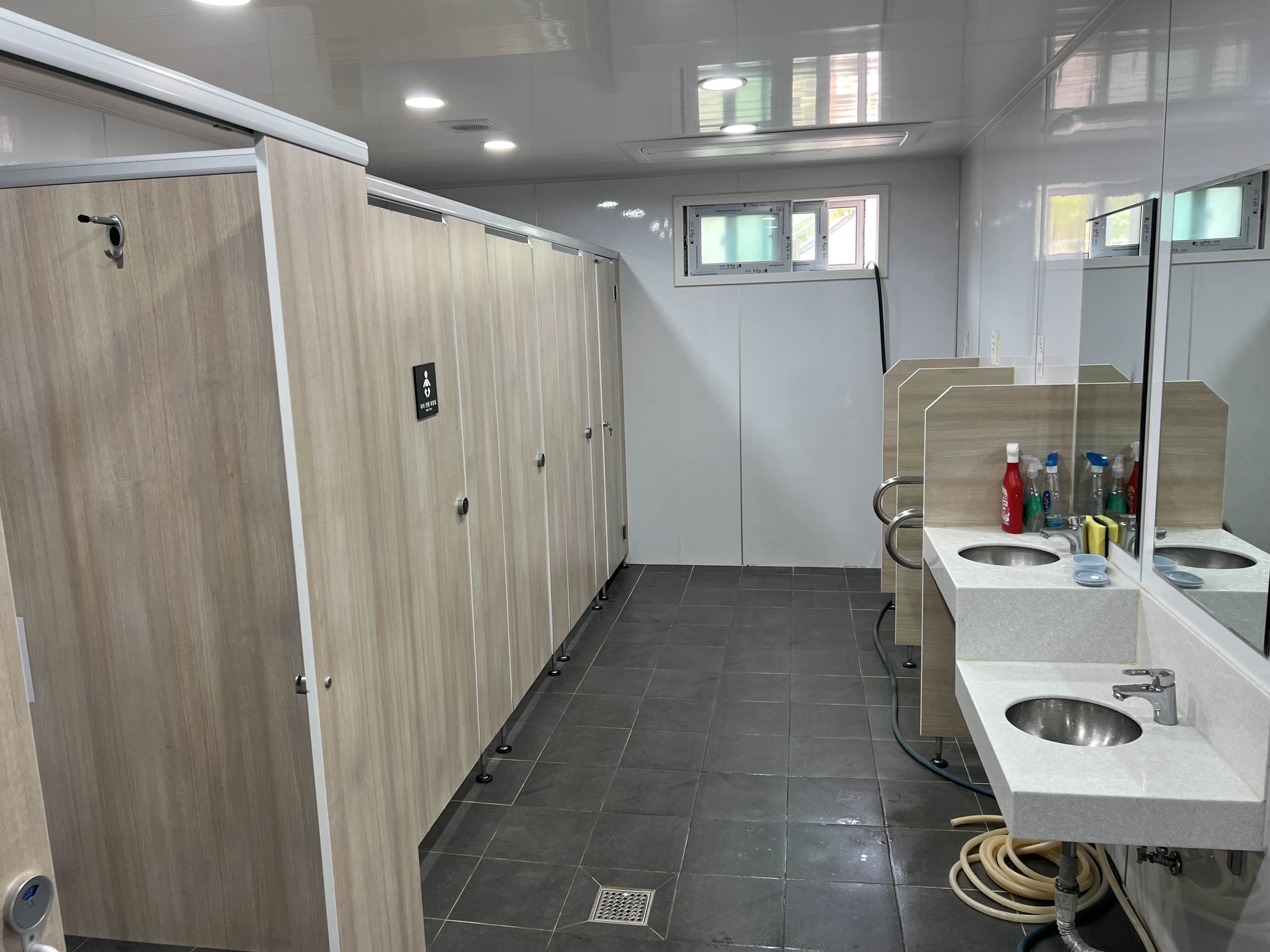 관리 사무실을 기준으로 개수대와 화장실 샤워실이 다 붙어 있습니다. 여자 화장실과 샤워실은 남자화장실은 정반대에 있어서 동선이 분리되어 있어서 안심할 수 있습니다.