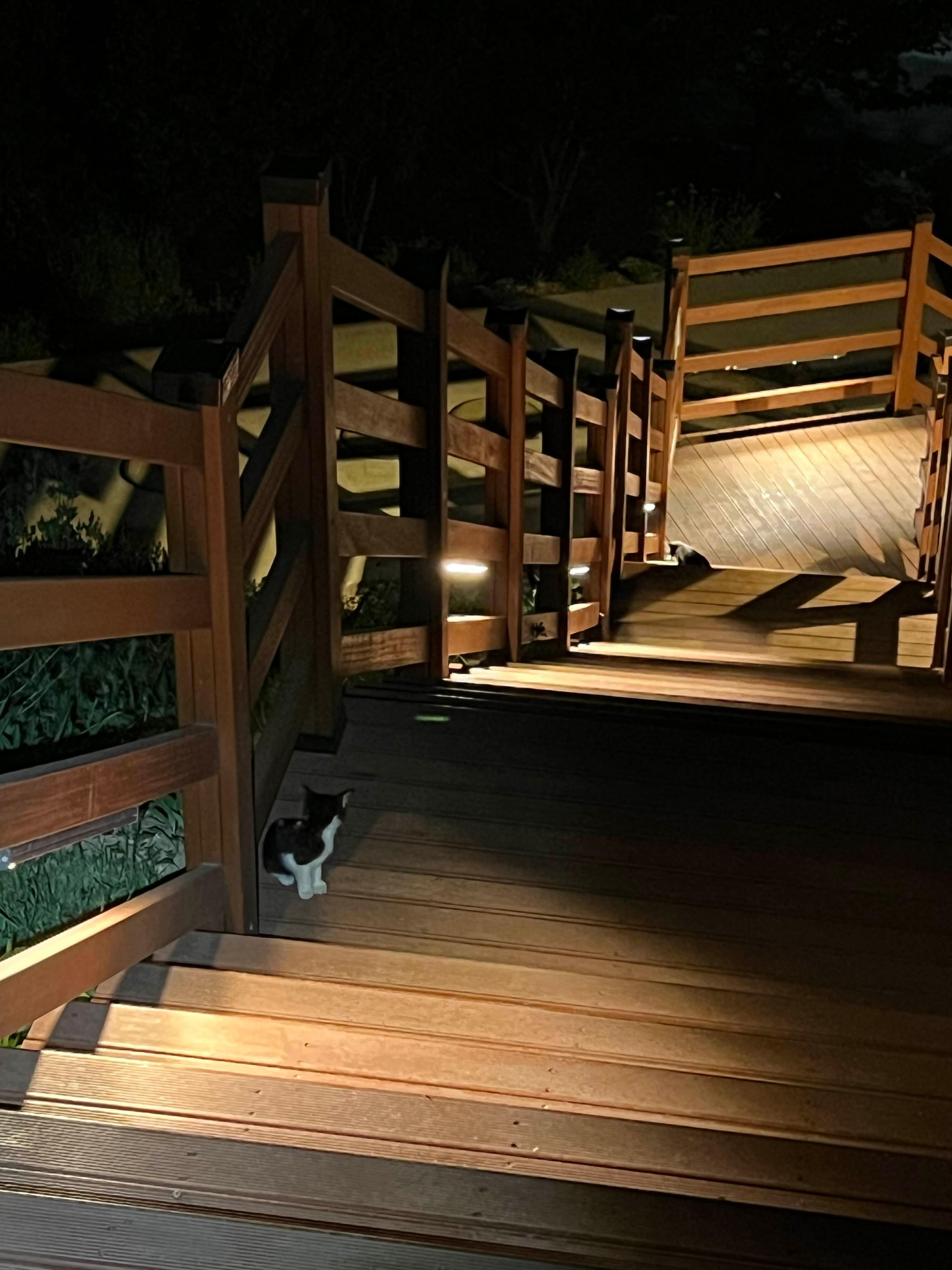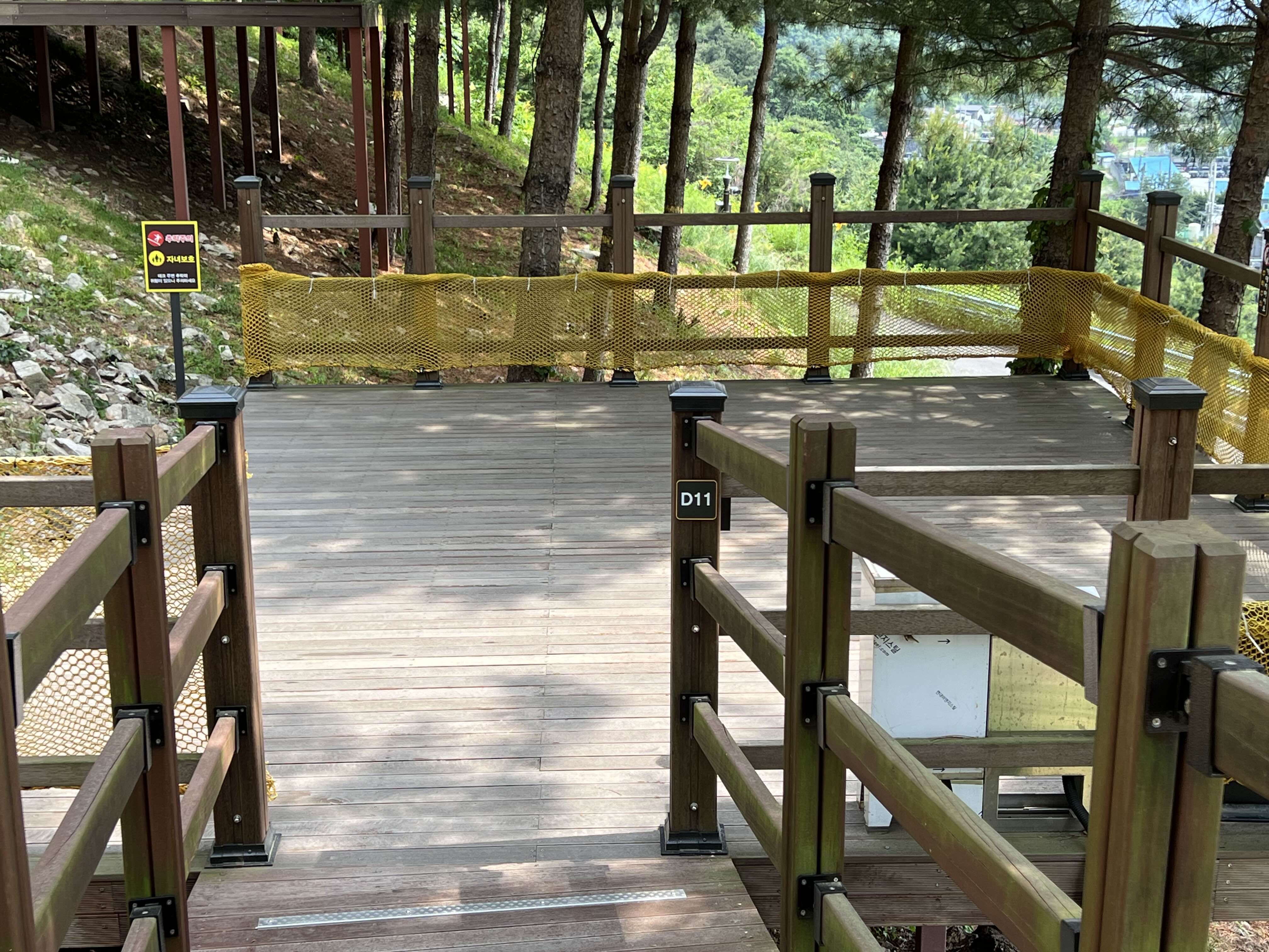 사이트별로 장단점이 있겠지만 가족단위나 연세가 있으신 분들은 아래쪽 데크가 그나마 계단을 덜 걷는 위치입니다.
