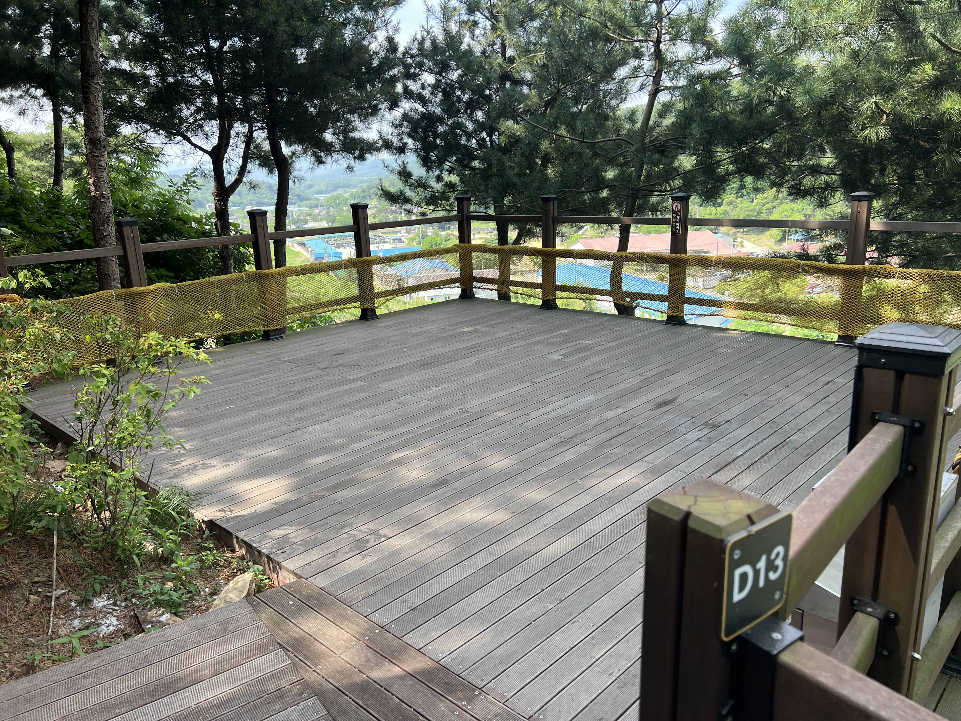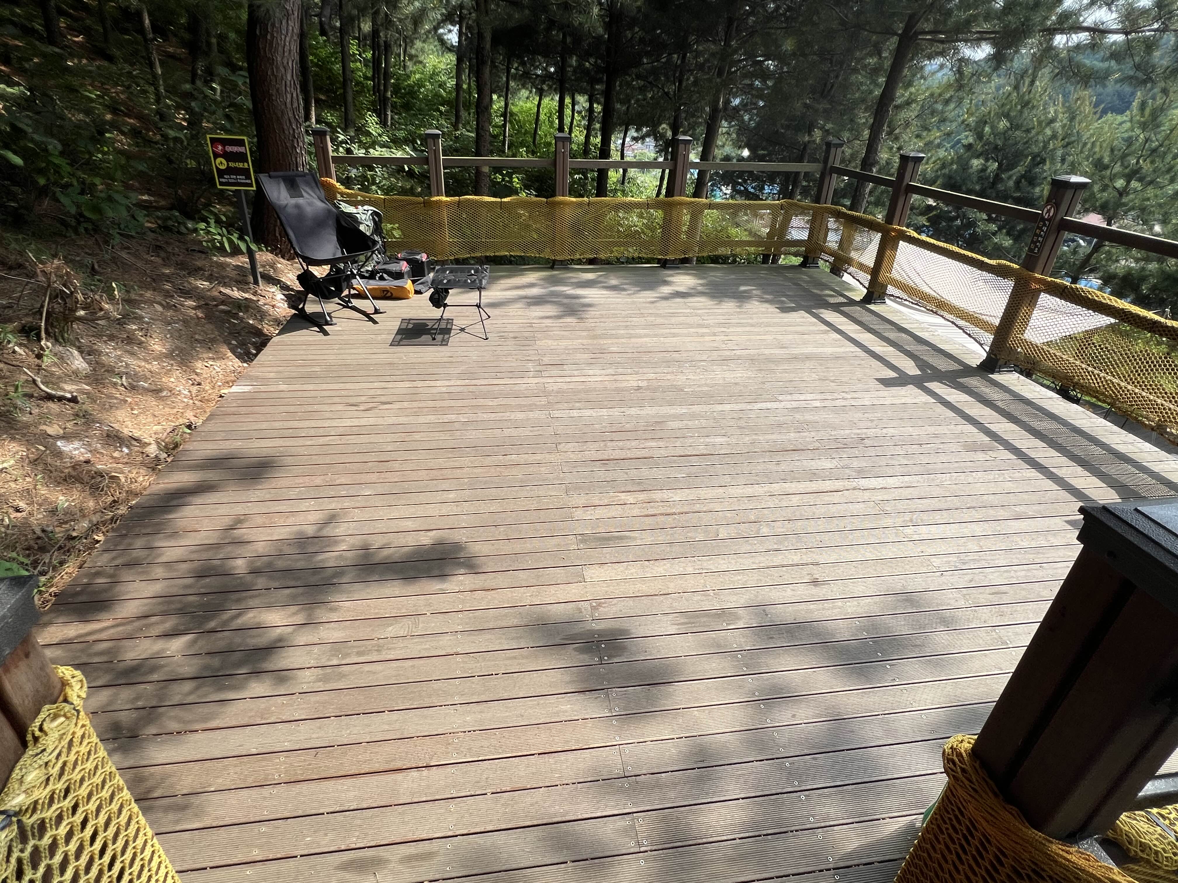 위 사진의 뒷편에 보이는 곳이 8번 데크인데 나무로 둘러싸여서 그늘도 많고 시선도 많이 차단되고 요새와 같은 입지입니다.