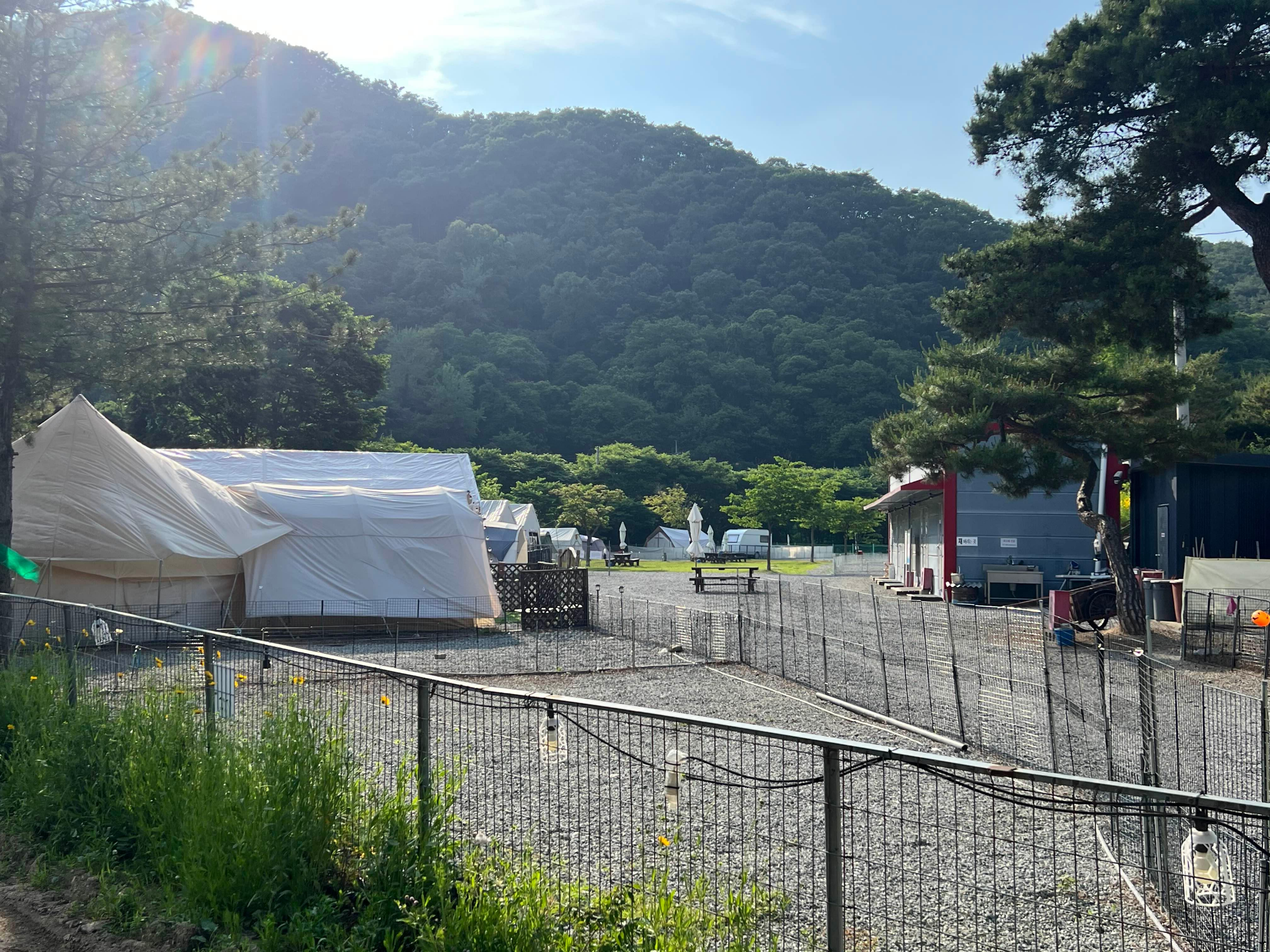 야영장은 뷰가 거의다 산 뷰 아니면, 노인병원, 군부대 뷰라 딱히 뷰를 찾는 것보다는 숲 속에 있는 느낌이 들도록 나무가 무성한 곳이 좋은 것 같아요.