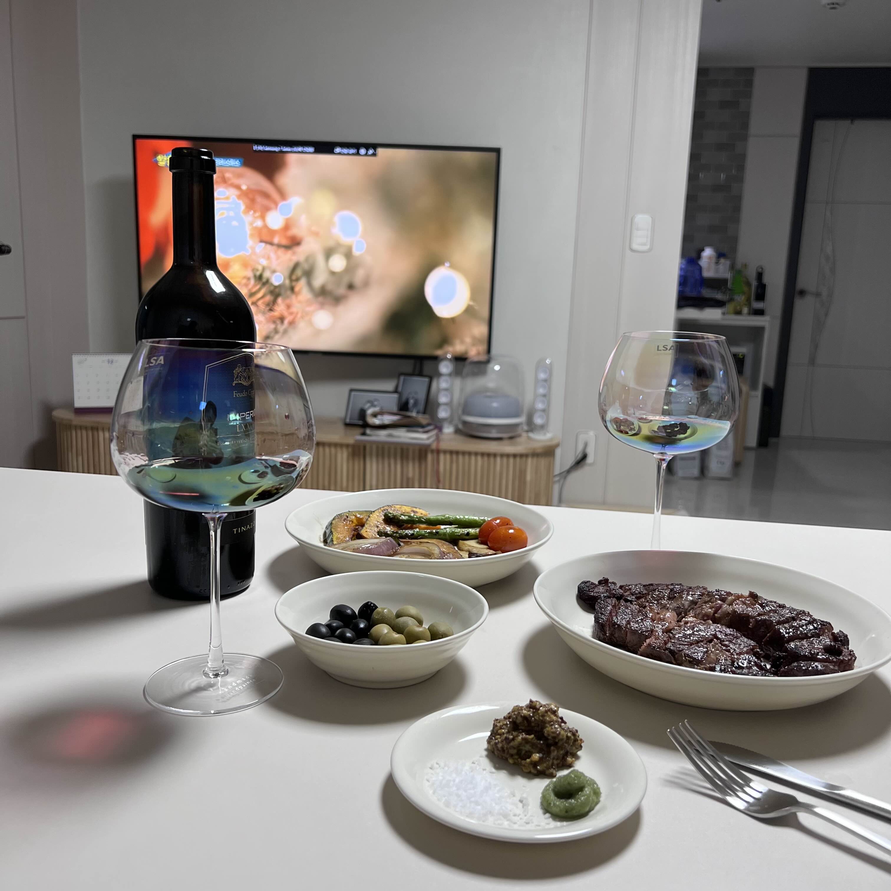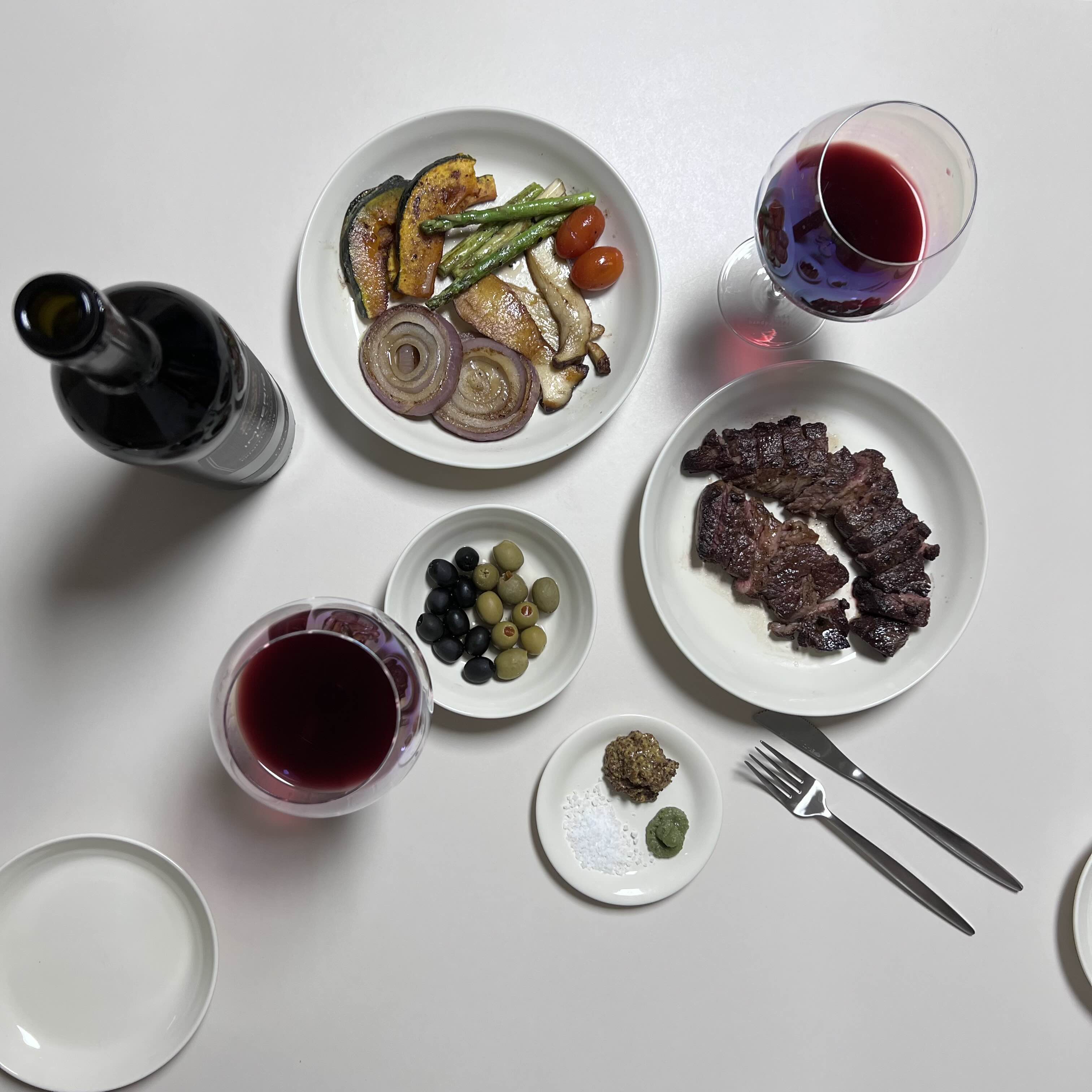 양고기나 파스타 등과도 어울린다고 되어 있지만 파스타랑 먹기에는 맛이 진하다고 생각이 든다. 육류와 더 잘 어울릴 것 같고, 나는 스테이크가 마침 집에 있어서 스테이크와 함께 먹기로 했다. 캠핑이나 야외에서 바베큐를 먹거나 스테이크를 먹게 될 때 가성비 좋은 와인으로도 제격이라고 생각이 든다. 나중에 또 기회가 있다면 하나 더 사두었다가 캠핑 가거나 친구들과 마실 때 꺼내도 좋을 것 같다.