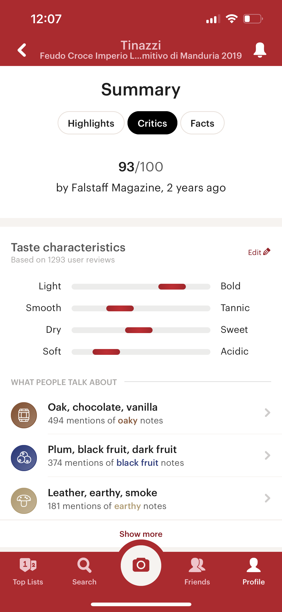 - 탄닌감이 조금 있는 중간정도 바디감, 밸런스가 좋다는 평