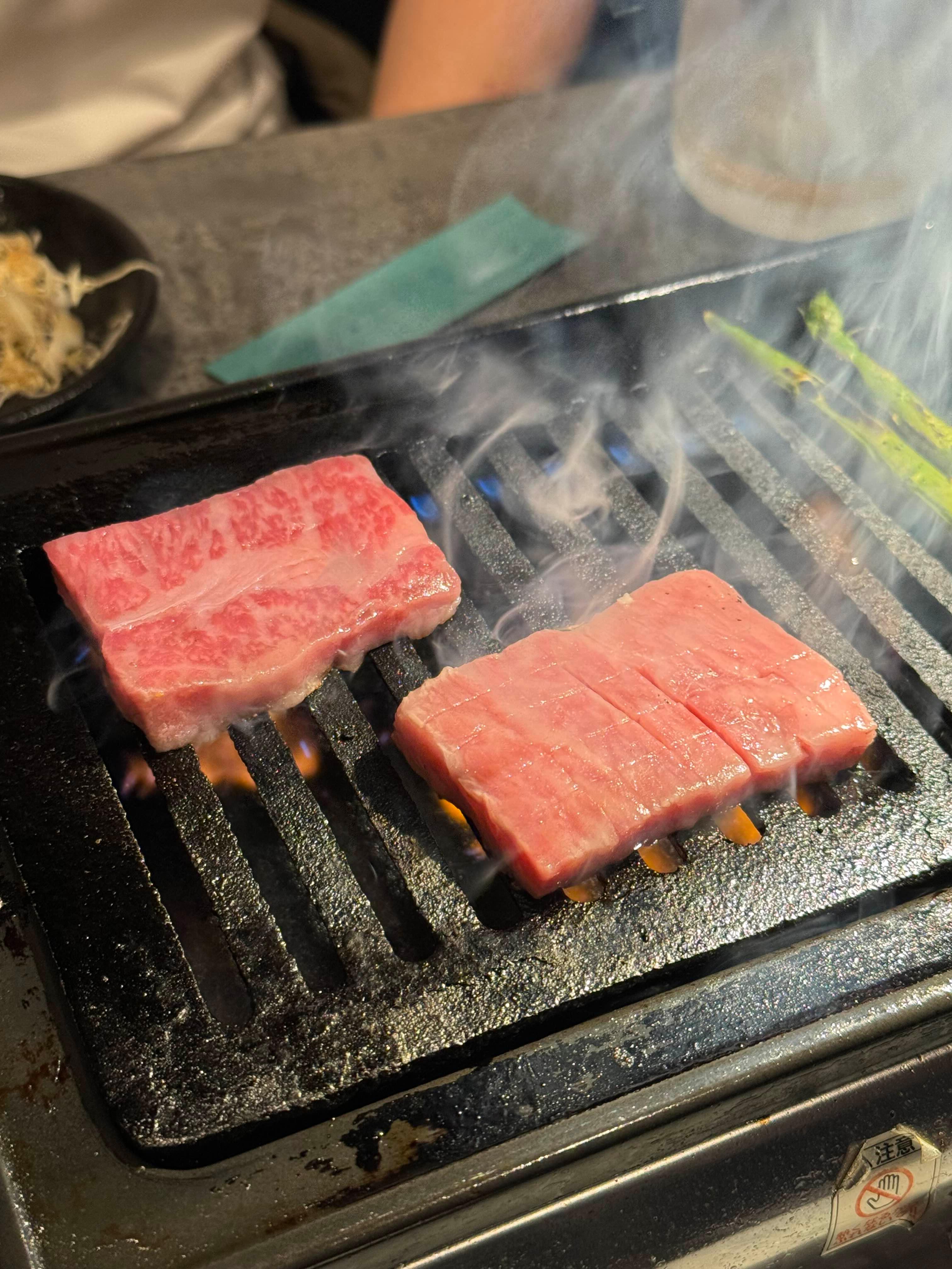 가게는 1층, 2층으로 나뉘어져 있습니다. 1층에는 구마모토 회사원들이 회식위주로 돌아가는 것 같고, 2층은 관광객들을 올려 보내는 것 같아요. 아무래도 1층은 담배도 피우고 하시는 것 같습니다. 2층에는 사람이 없어서 전세내고 고기 먹었어요.