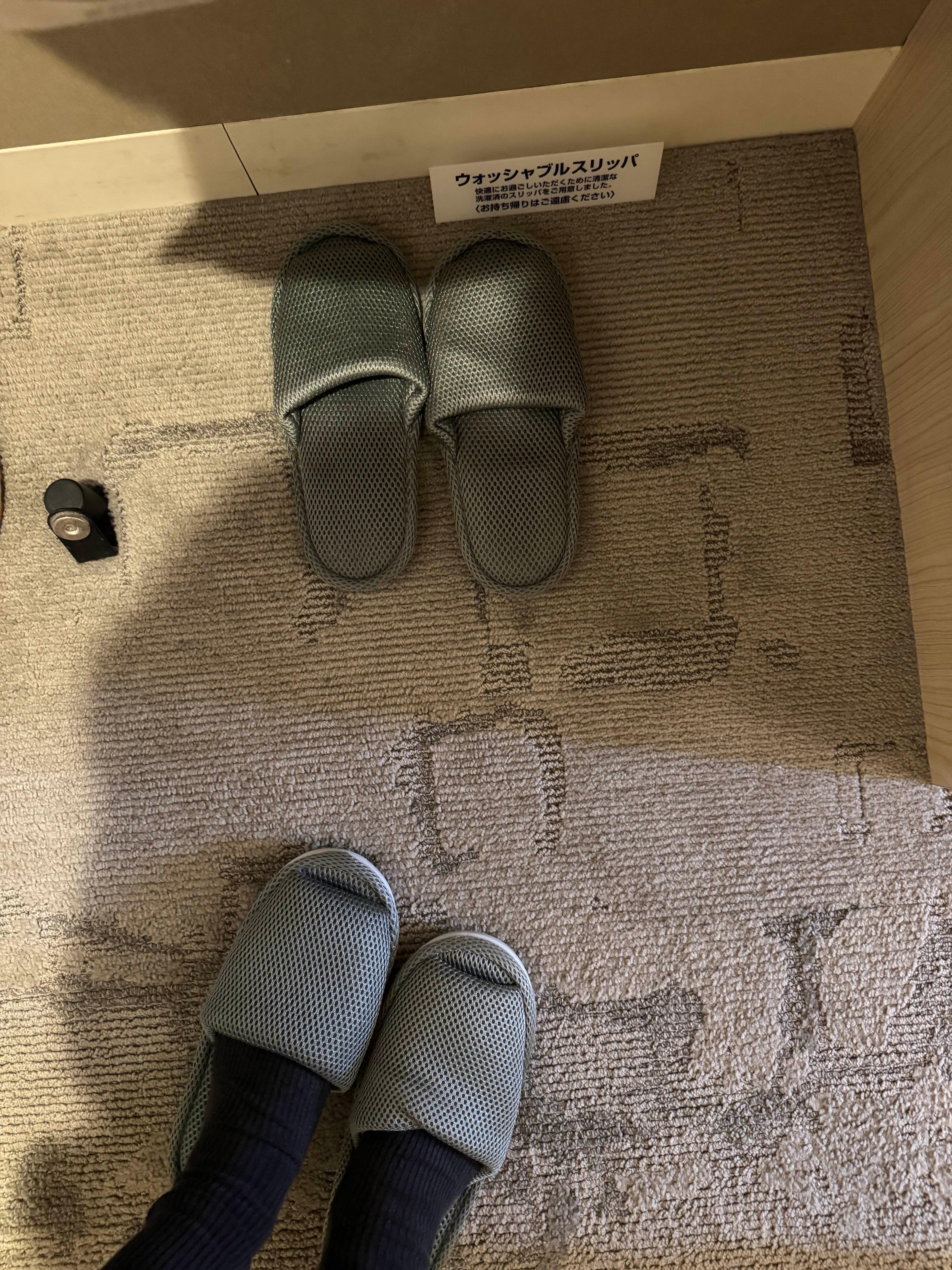 방에 들어가면 슬리퍼가 있는데 여태까지 갔었던 호텔보다도 품질이 좋아 보였어요!