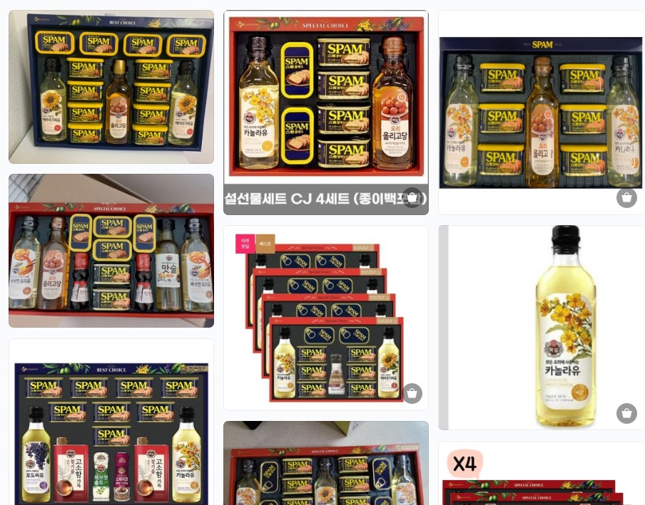 한우/홍삼/영양제/과일/약과/마트에서 파는 설선물세트(식용류, 스팸, 참치 등)