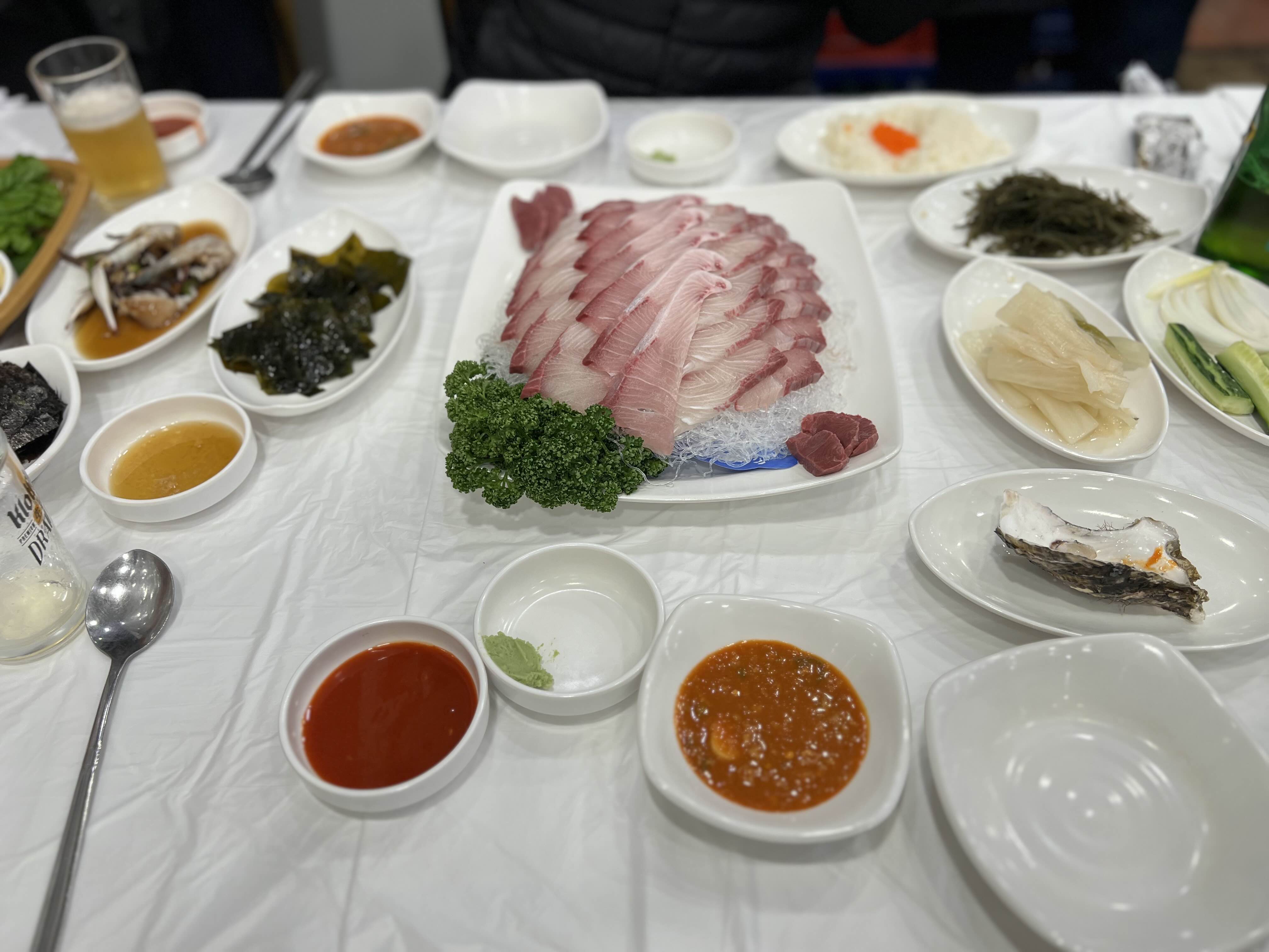2명이서 갔기 때문에 다른 메뉴들을 많이 시켜보지는 못했으나, 대방어를 먹으러 간 것이니 특방어와 뱃살만 먹어도 충분하다고 생각합니다. 대방어집은 제주도에 많습니다만 제주공항에 내려서 바로 올 수 있는 곳이기 때문에 만배회센터 추천드립니다. 만약에 만배회센터에 웨이팅이 길어 못 간다면 '삼바리회센터', '마라도 횟집' 추천드립니다. 세 곳 다 저희가 고민했던 곳입니다.