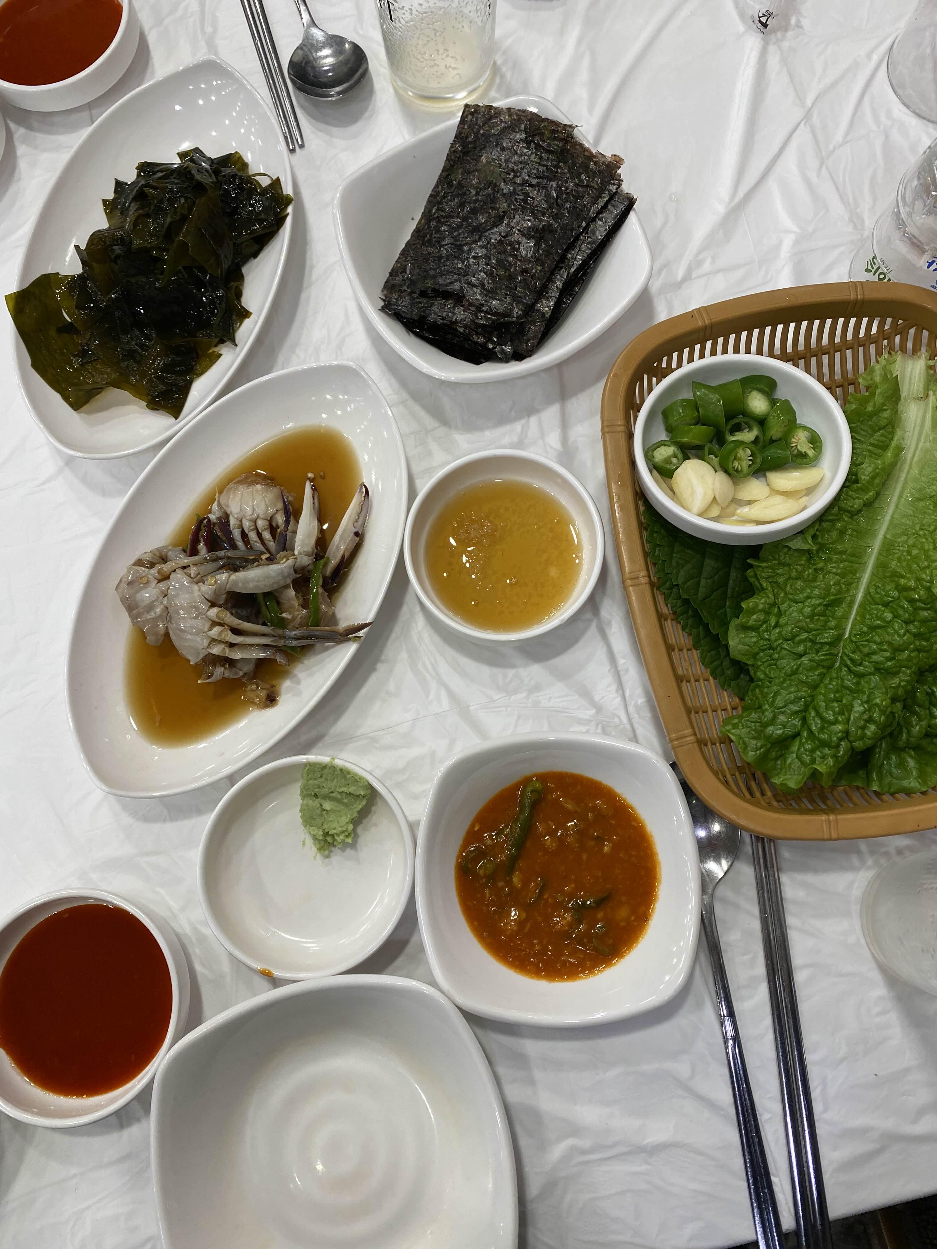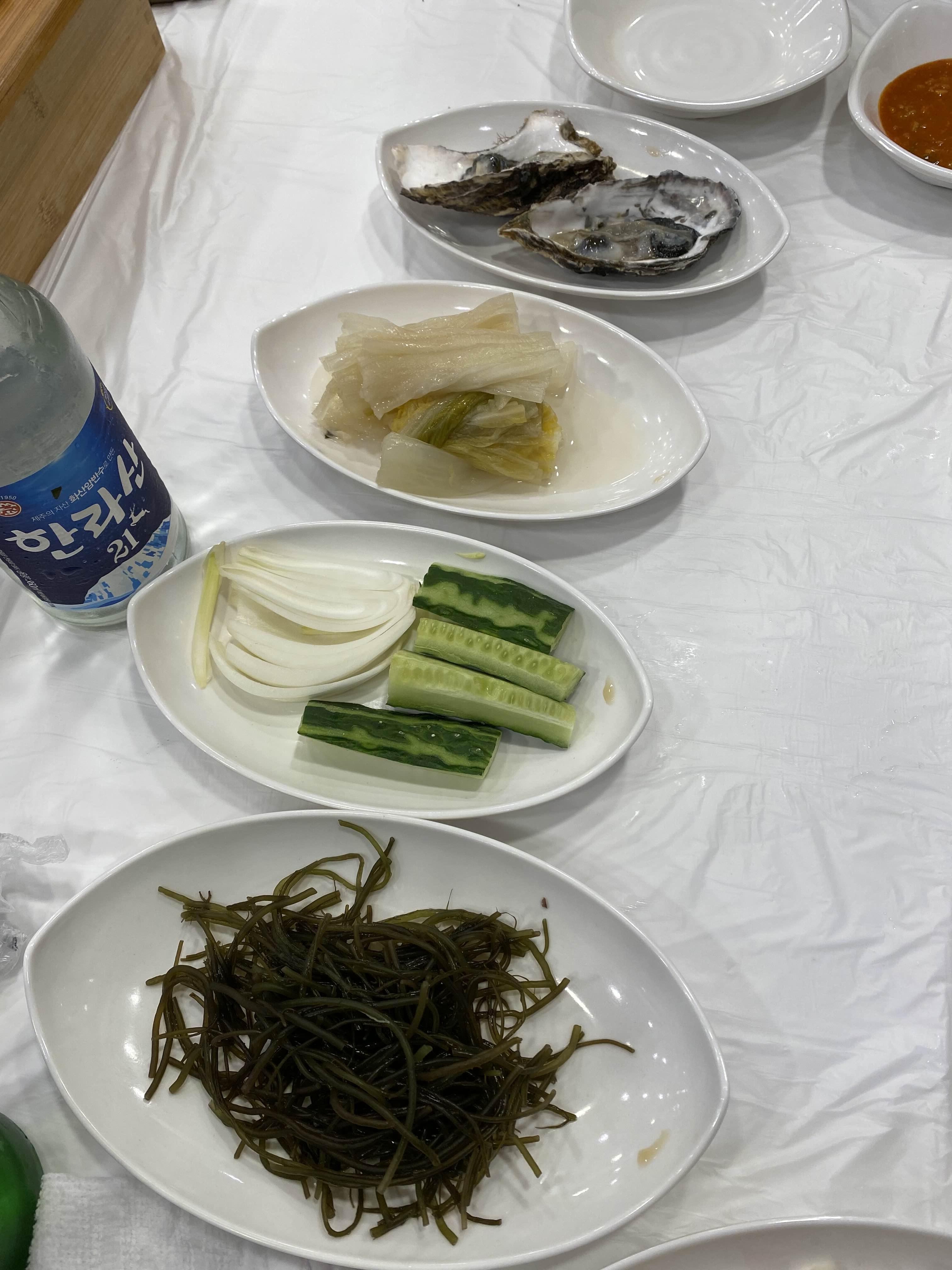 기본 반찬으로 상추쌈과 김, 미역, 톳, 백김치, 굴 등이 제공되서 김이랑 같이 싸드시면 아주 맛있습니다.