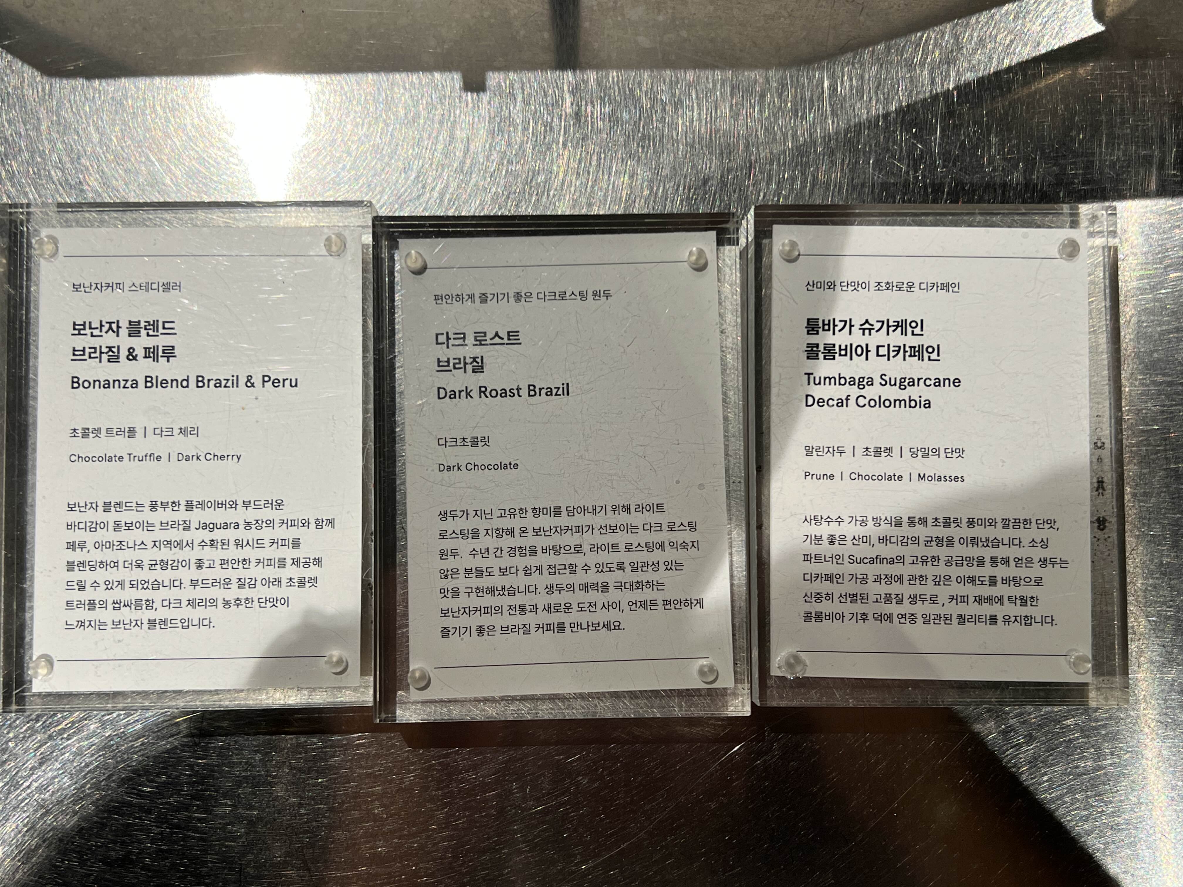커피는 보난자 블렌드(브라질&페루)