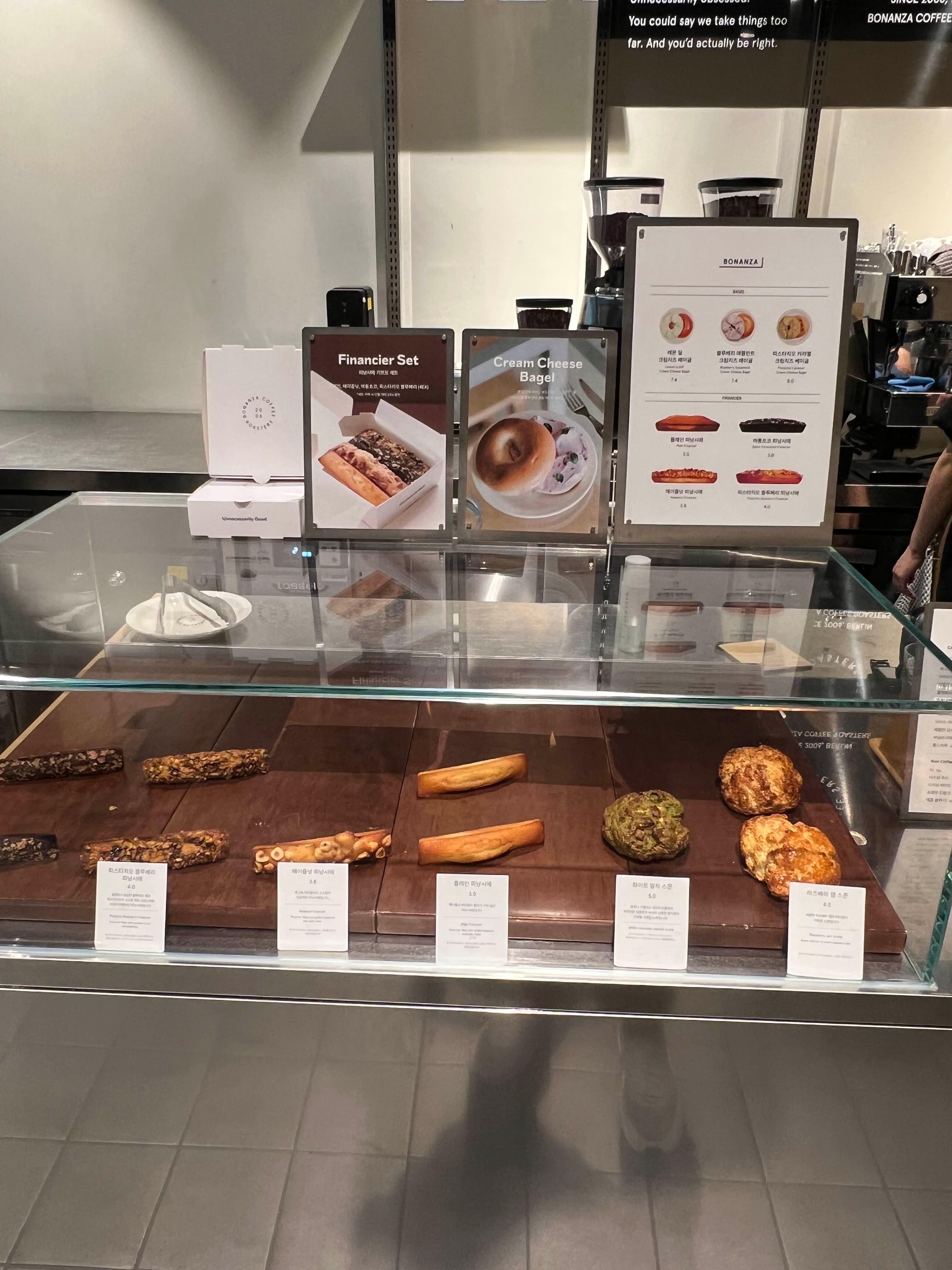 베이글과 휘낭시에가 아래 메뉴 처럼있으니 참고해서 주문해보세요!