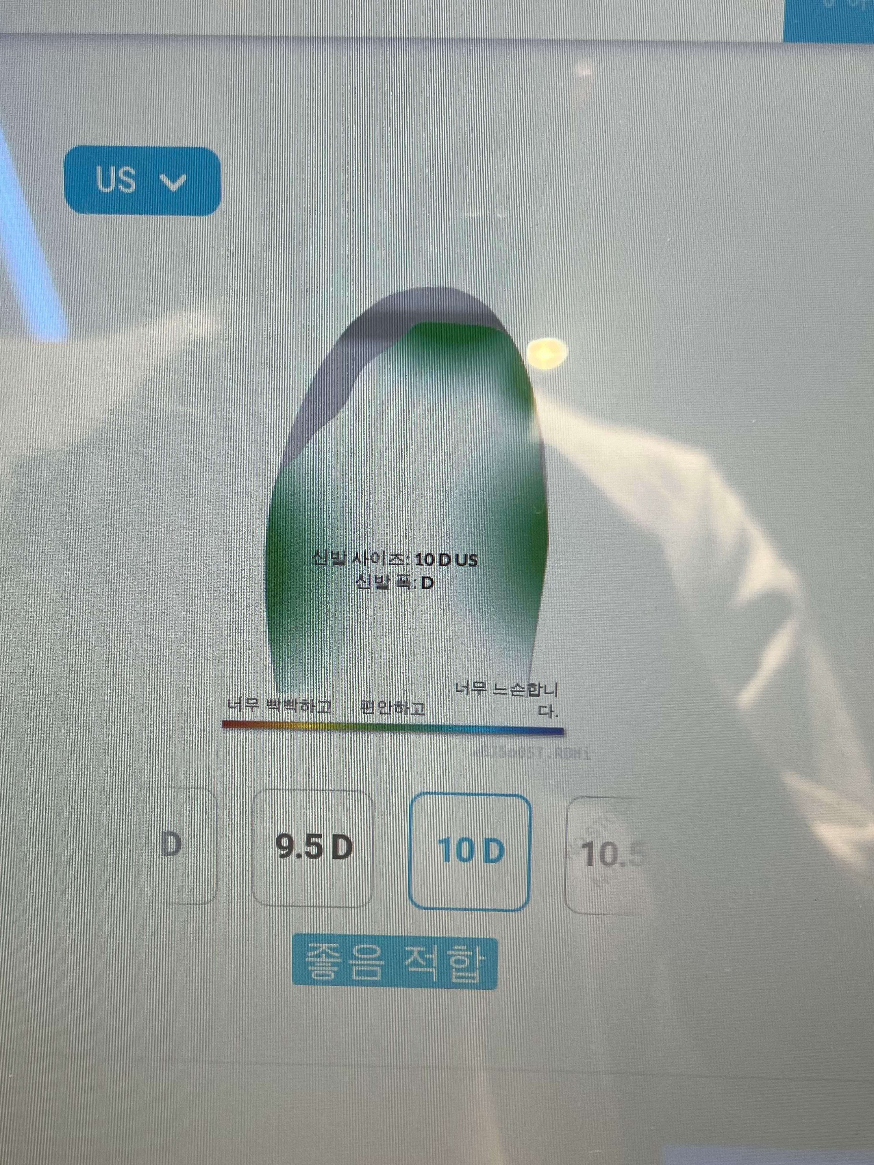 가만히 서 있으면 센서가 발을 인식해서 사이즈랑 발볼을 측정합니다.