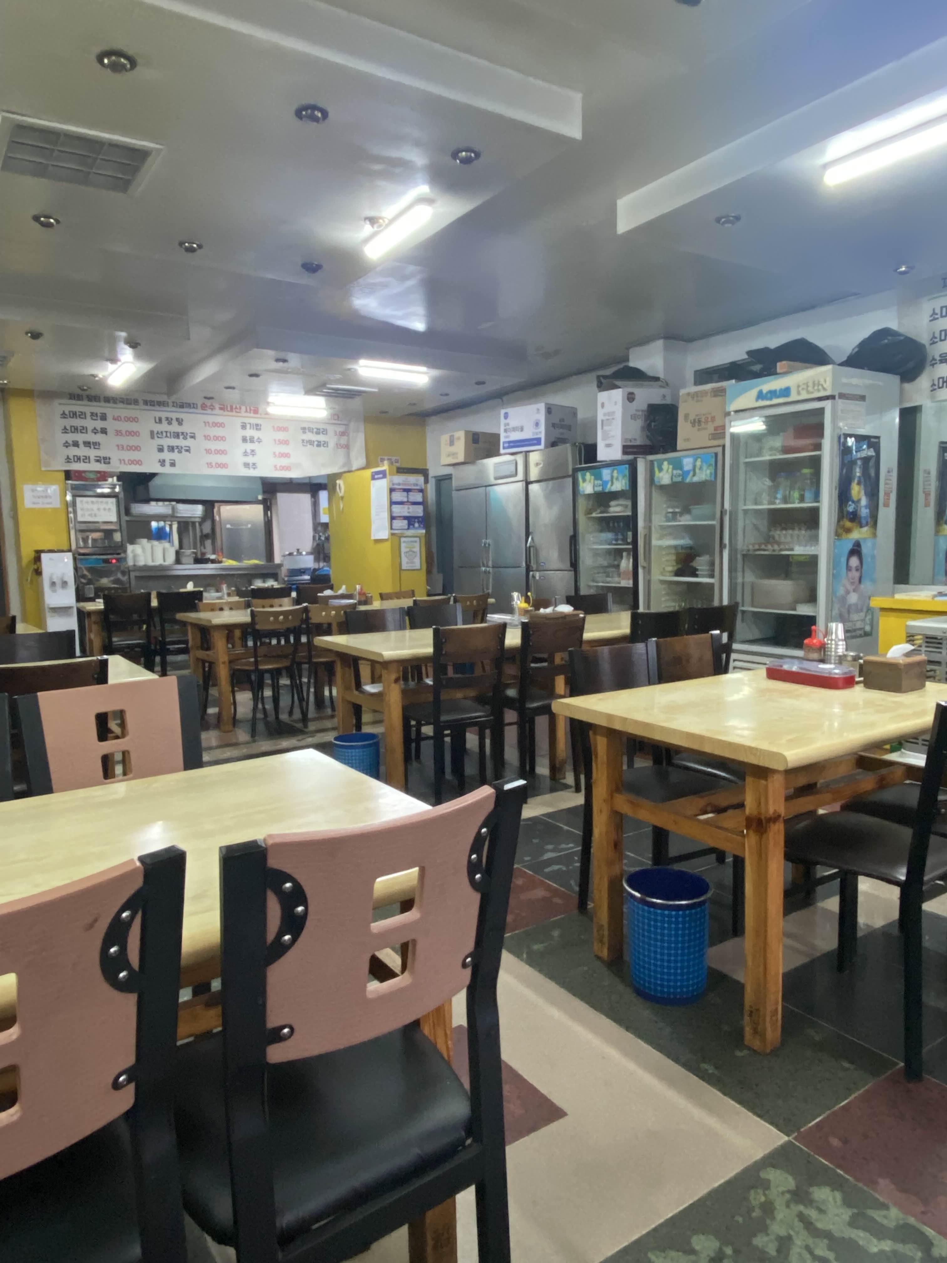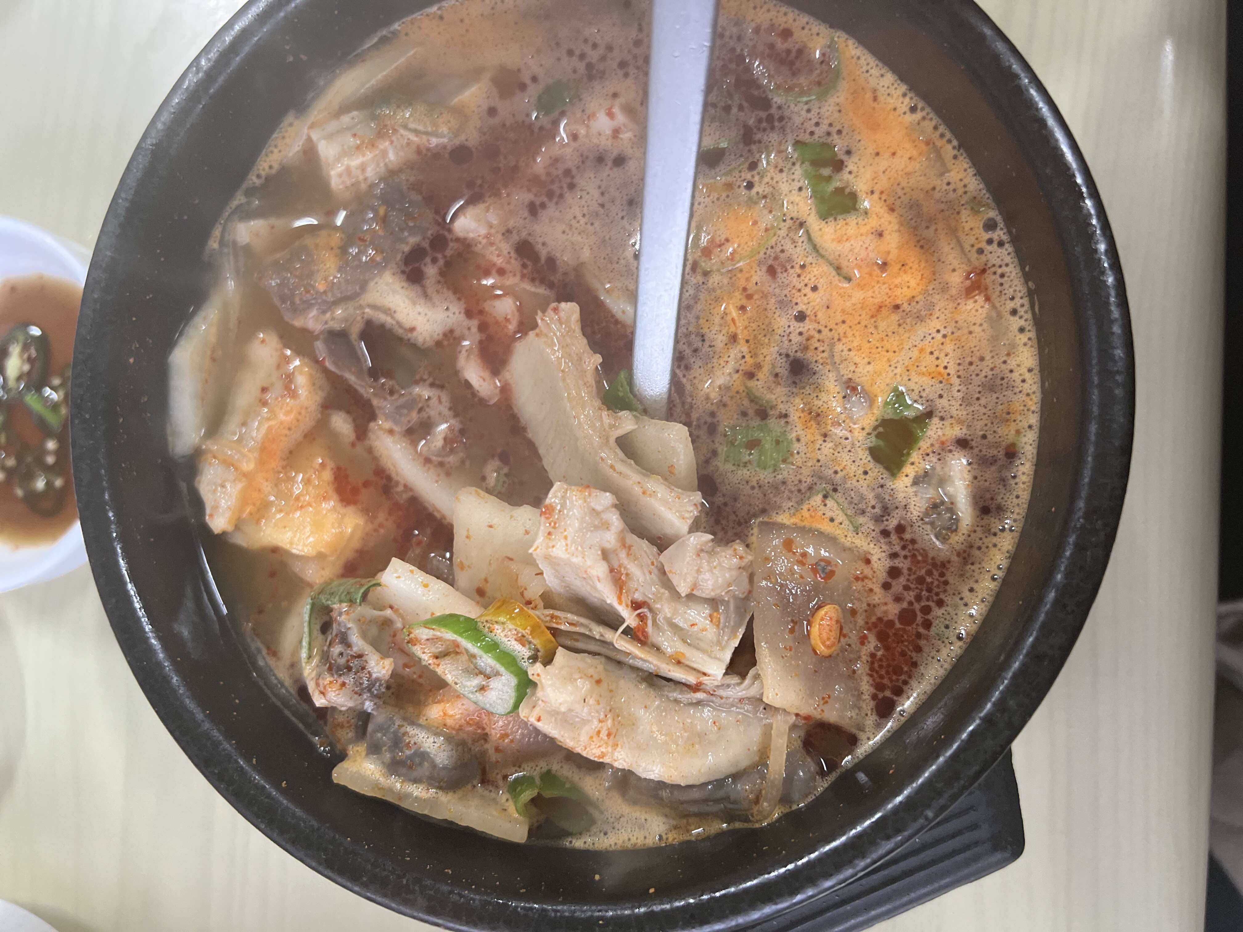 소머리국밥은 맑은 색 국물에 나오는데 시원하고 좋았다. 둘 다 맛은 괜찮았는데 개인적으로는 빨간 내장탕이 더 내 입맛에 맞았던 것 같다. 내장들도 엄청 많이 들어있어서 국물을 한참 먹고 다 먹어갈 때쯤까지 바닥에 내장들이 꼭꼭 숨어있었다.