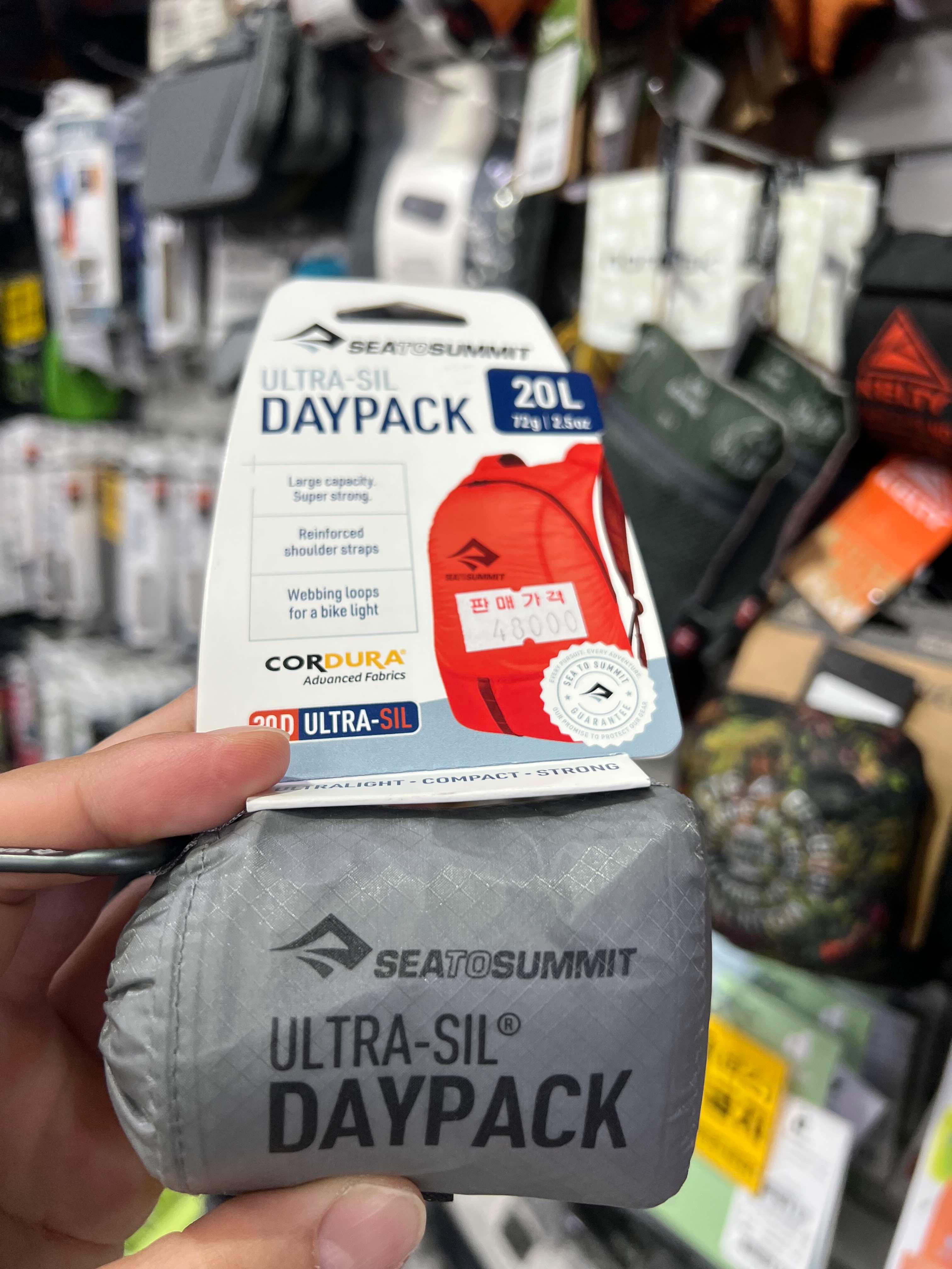 그리고 관심있게 봤던 것들은 씨투서밋에서 나오는 작은 가방입니다. 가볍고 작게 패킹해서 가지고 다니다가 배낭을 두고 이동하거나 비행기를 탈 때, 아니면 마트를 가거나 도보여행을 할 때 이용할 수 있겠더라고요.