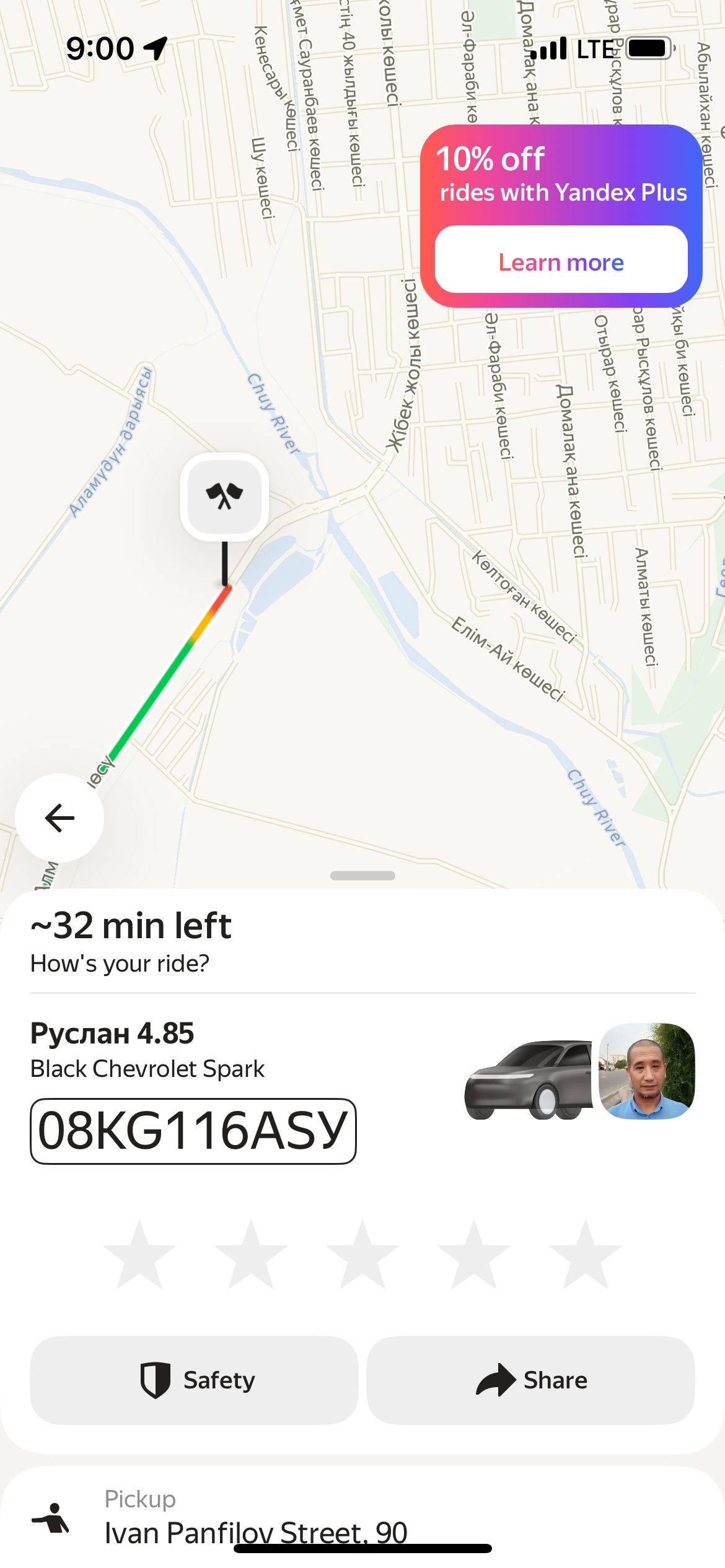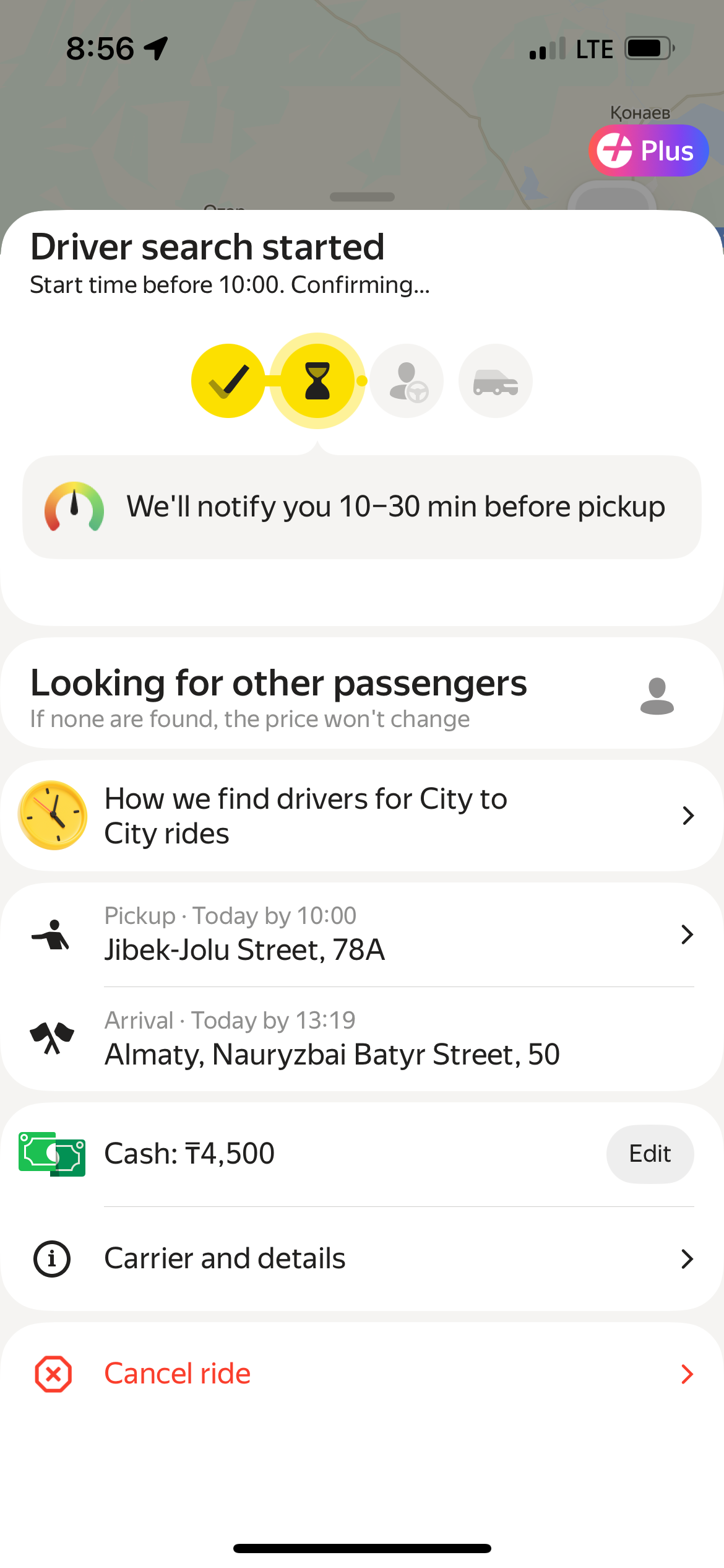 그래서 방법은 얀덱스 택시로 국경 근처까지 이동하고 국경을 넘은 후 카자흐스탄 시간으로 적용하여 시티 투 시티 기능으로 택시를 부른다. 택시가 국경까지 오는 데는 약 50~60분 정도 소요되니 조금은 쉬면서 기다려야 한다.