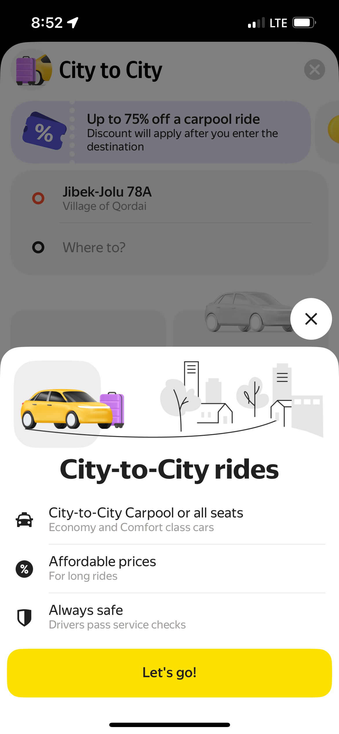 국경을 넘어 카자흐스탄에서 시티 투 시티로 택시 호출