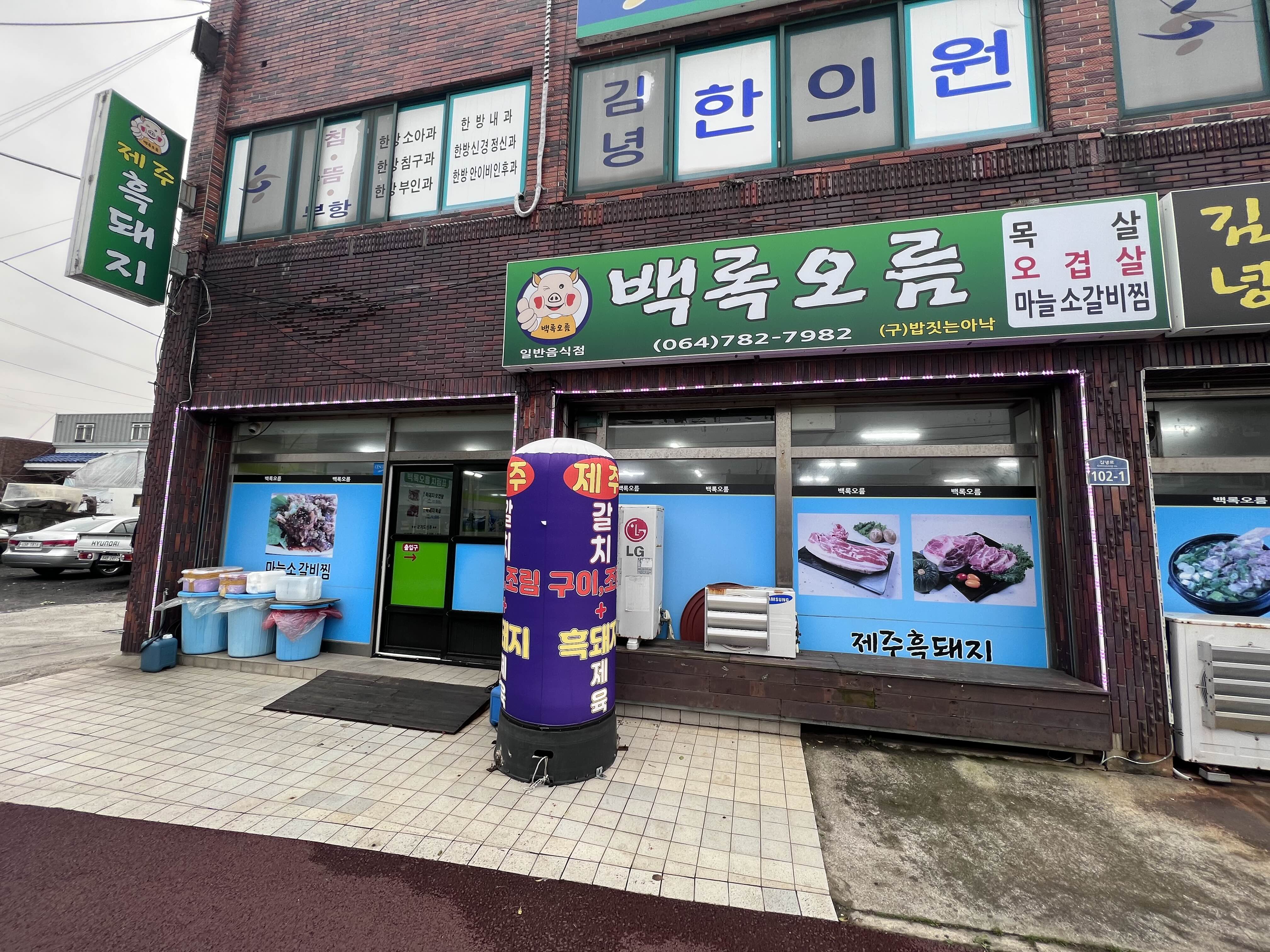 김녕은 마을이 조금 작아서 맛집이나 유명한 곳이 다른 지역에 비해서 많진 않은 곳이다. 그래도 조용히 휴식을 보내기에는 좋은 곳이었고, 그 안에서도 맛있는 집들이 있어 소개한다. 먼저, 김녕에서 흑돼지를 먹고 싶다면 단연코 '백년오름'이다.