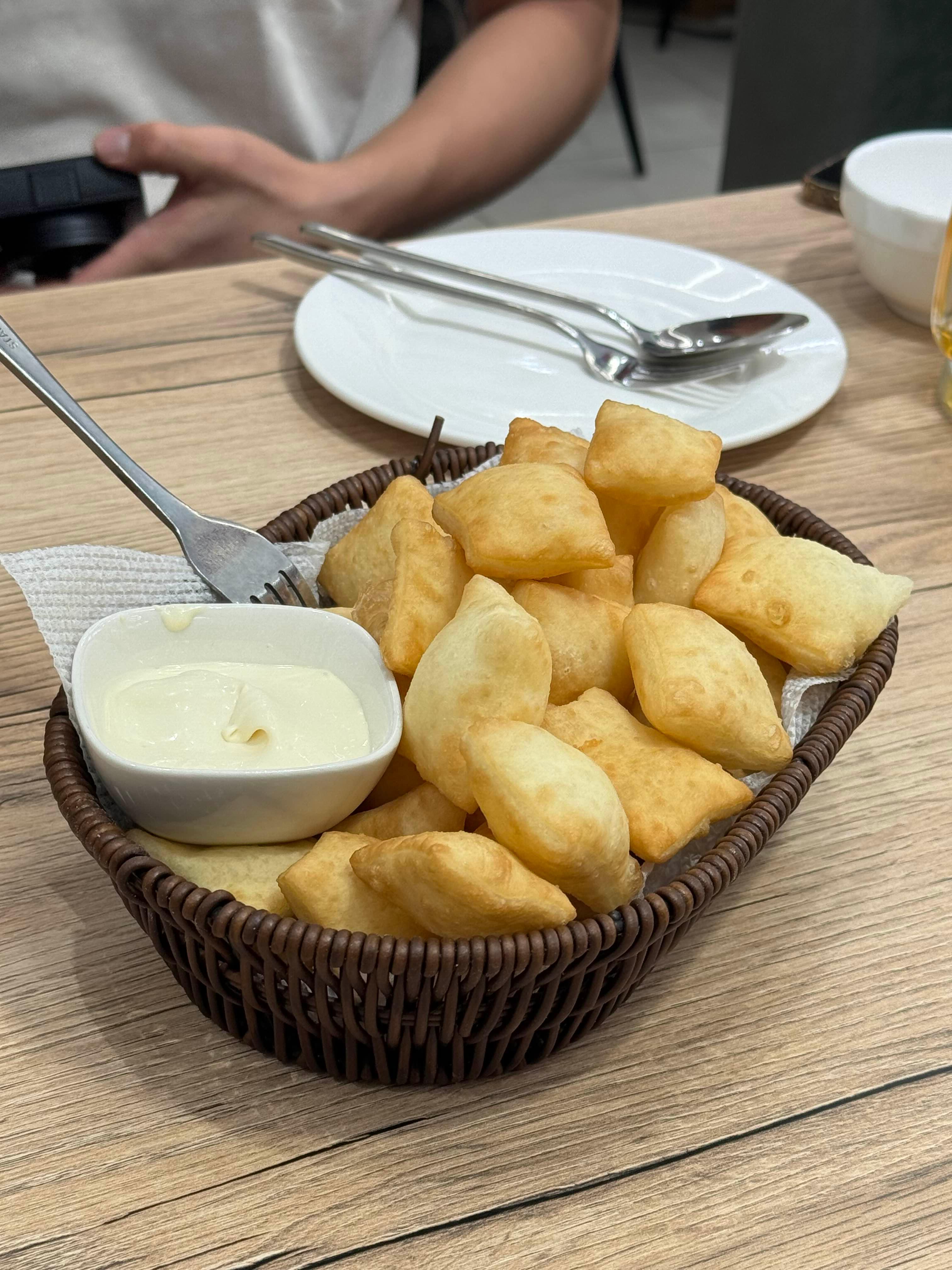 에피타이저 느낌으로 이런 빵 같은 걸 시켜보았어요.