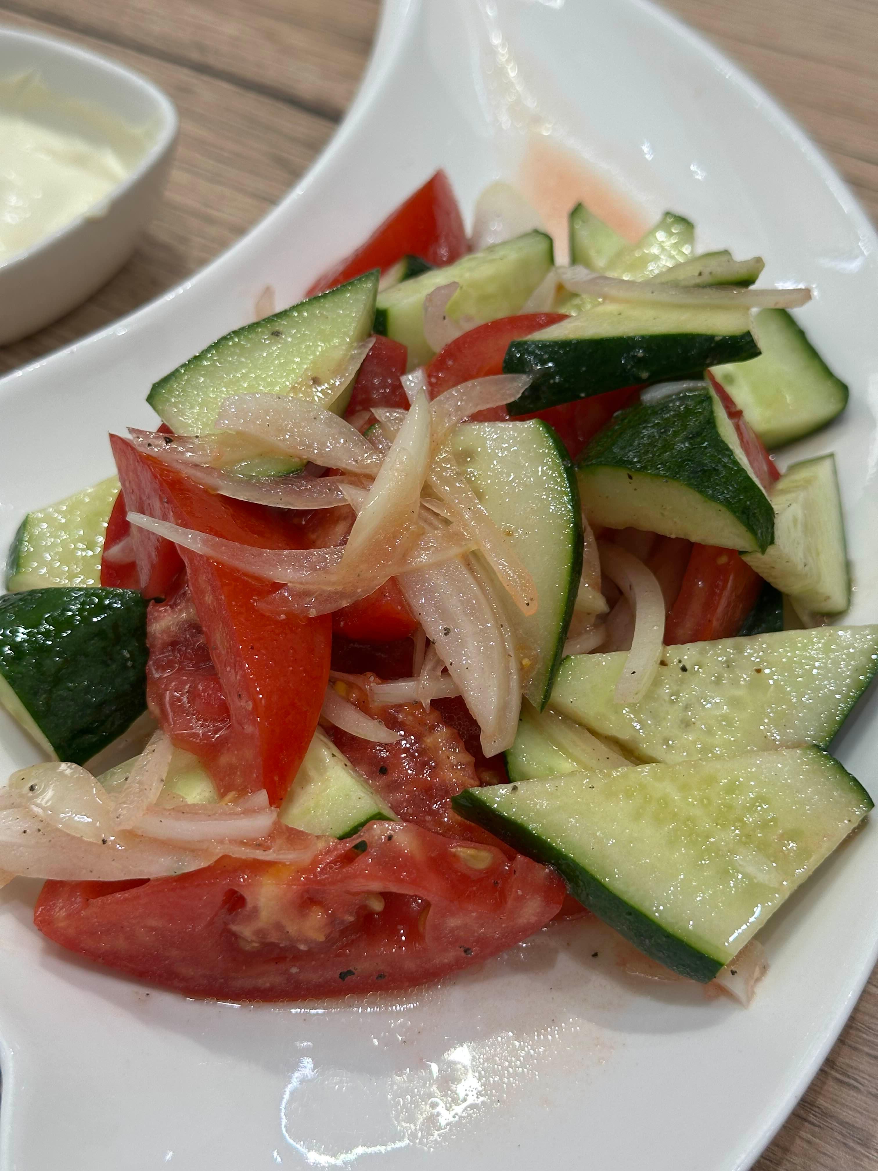 그리고 키르기스스탄에서 많이 먹었던 오이가 들어간 샐러드입니다.