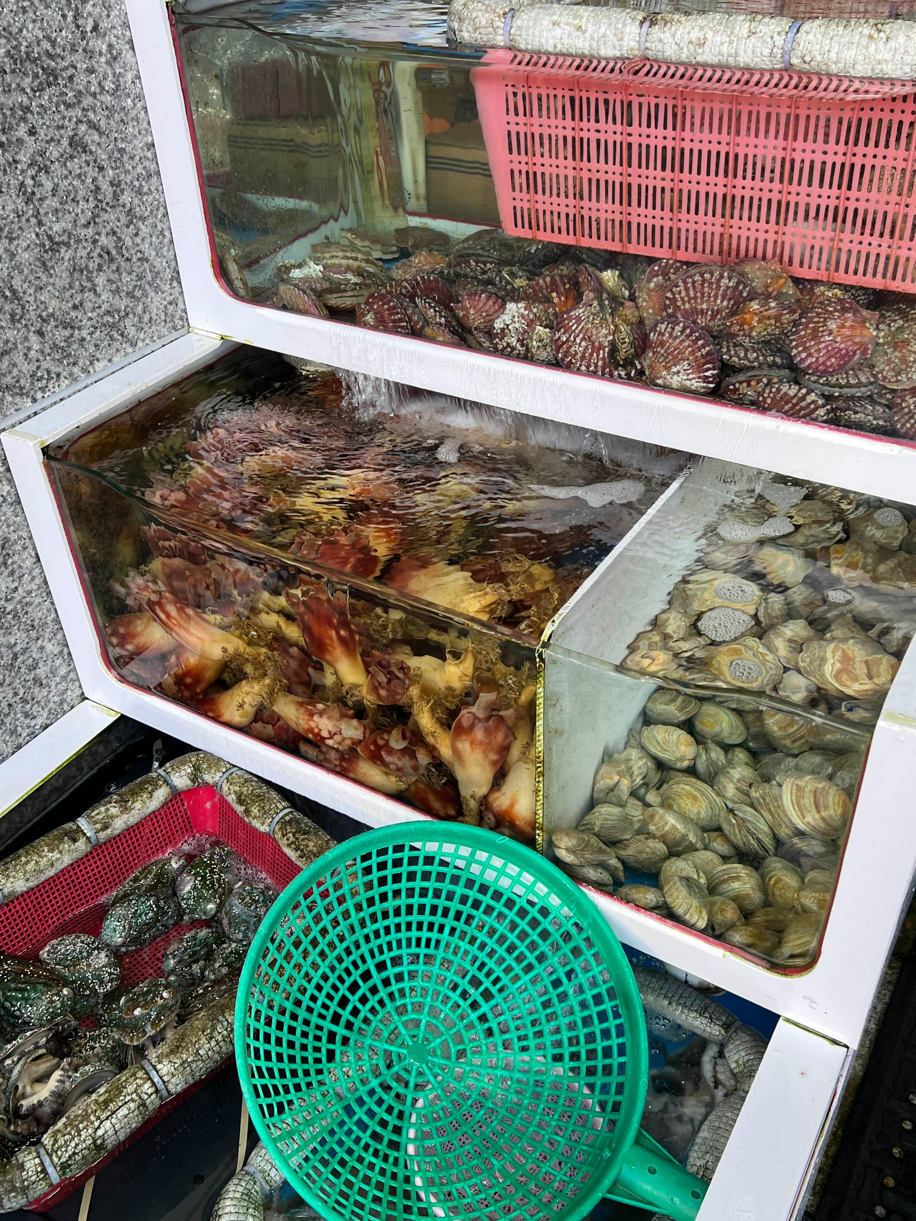 저희가 간 곳은 소라 회 수산이라는 곳이었고, 아주머니가 친절하게 해 주셨어요!