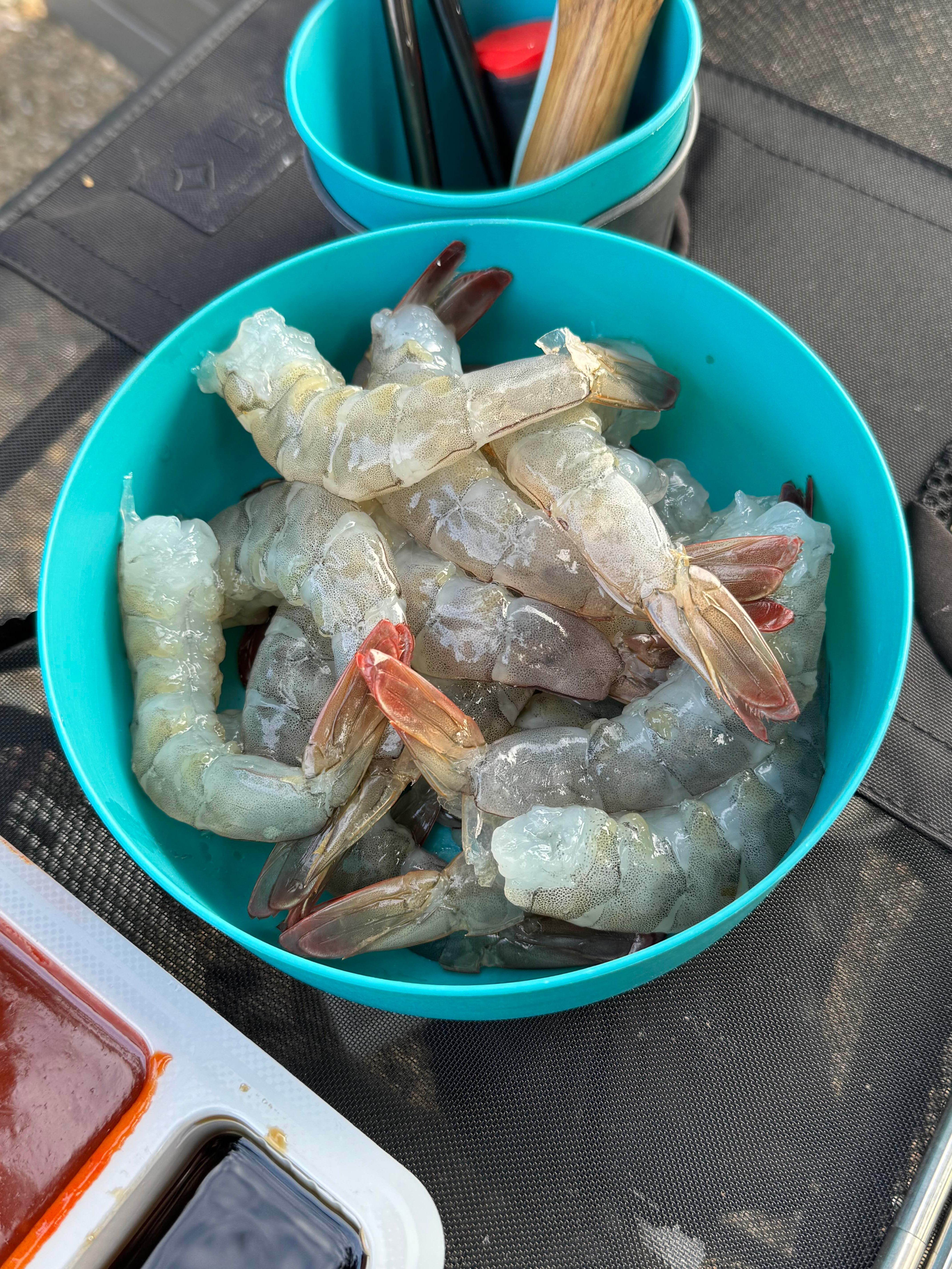새우는 생으로 껍질 까서 먹었습니다. 생으로 먹기 걱정되시면 굵은소금 챙겨서 대하구이로 먹어도 됩니다.