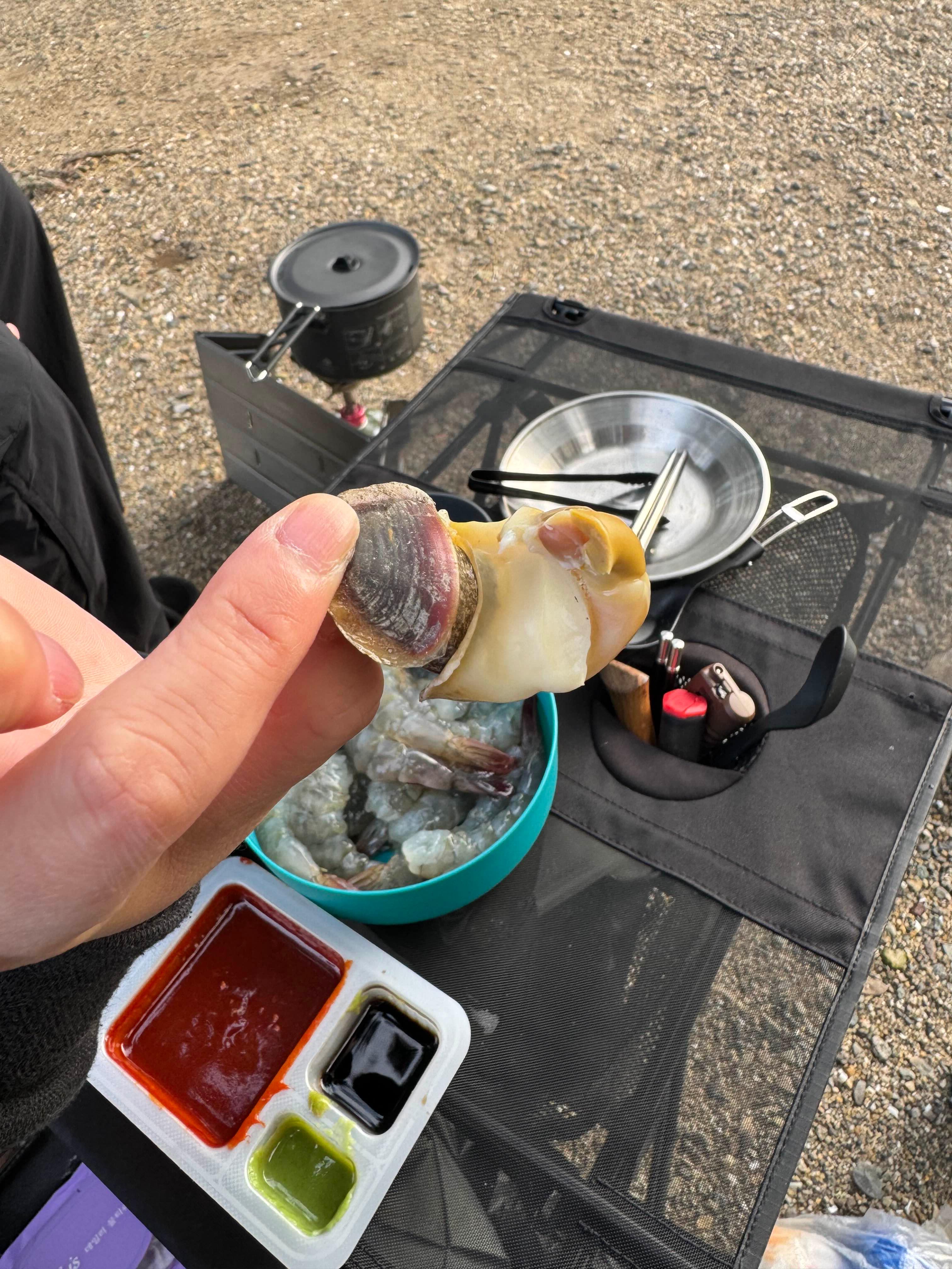 나중에 캠핑장에 가니까 새우도 주문해서 먹을 수 있더라고요!