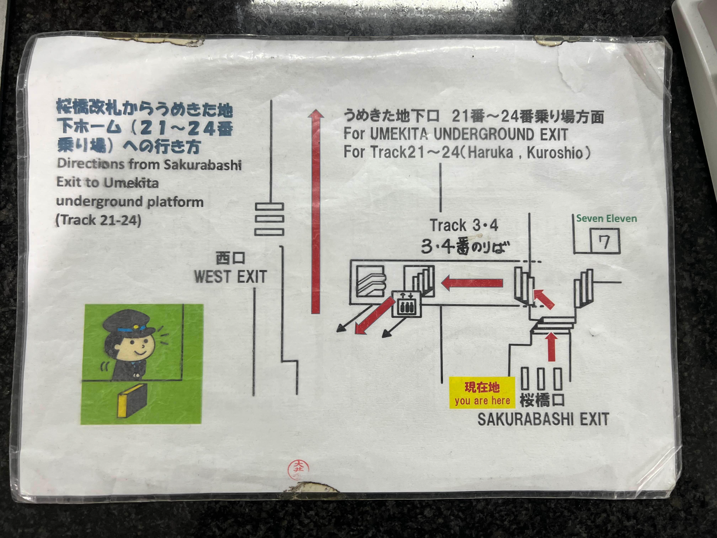 아무리 찾아도 하루카라는 말도 없었기 때문에 출구 쪽 역무원에게 다시 물어봤어요!