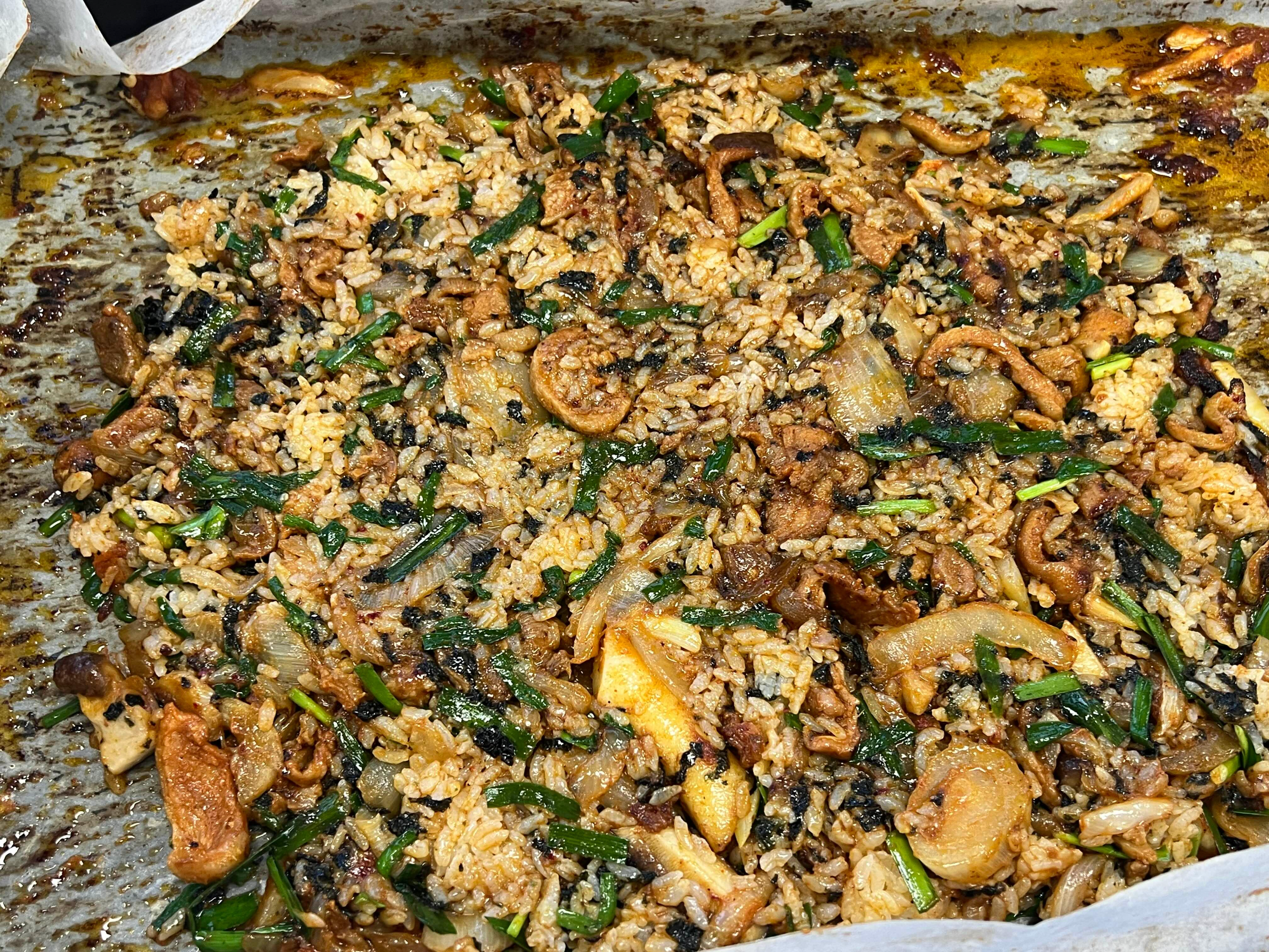 너무 느끼할 수 있으니 밥은 적당히 볶는 게 나아요. 밥 한 공기도 이렇게 많았네요!