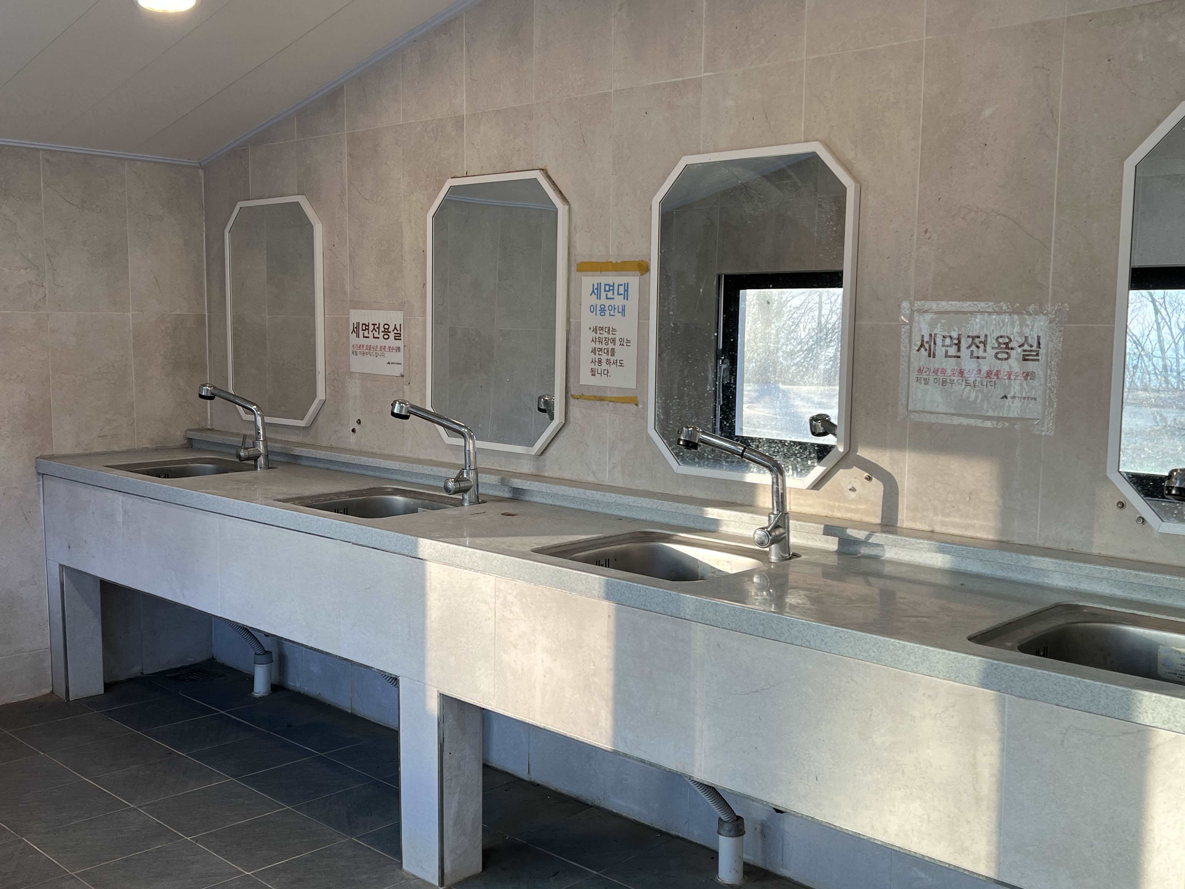 전용세면실은 좀 따듯한 편이에요. 몸이 많이 춥거나 일행 화장실 기다릴 때는 전용세면실에서 기다려요.
