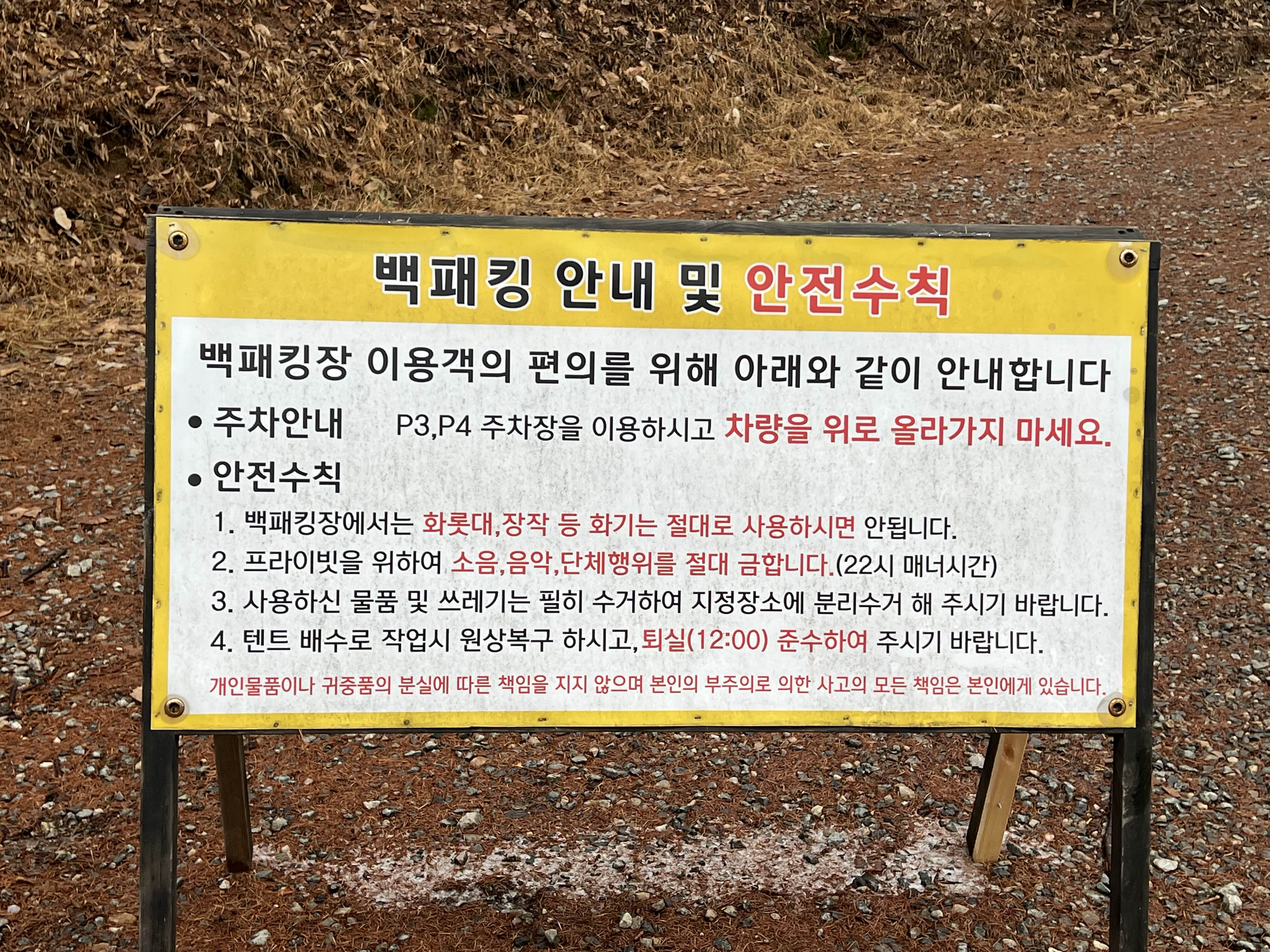 P3,4 주차장에 주차하고 백패킹존을 이용하면 됩니다.