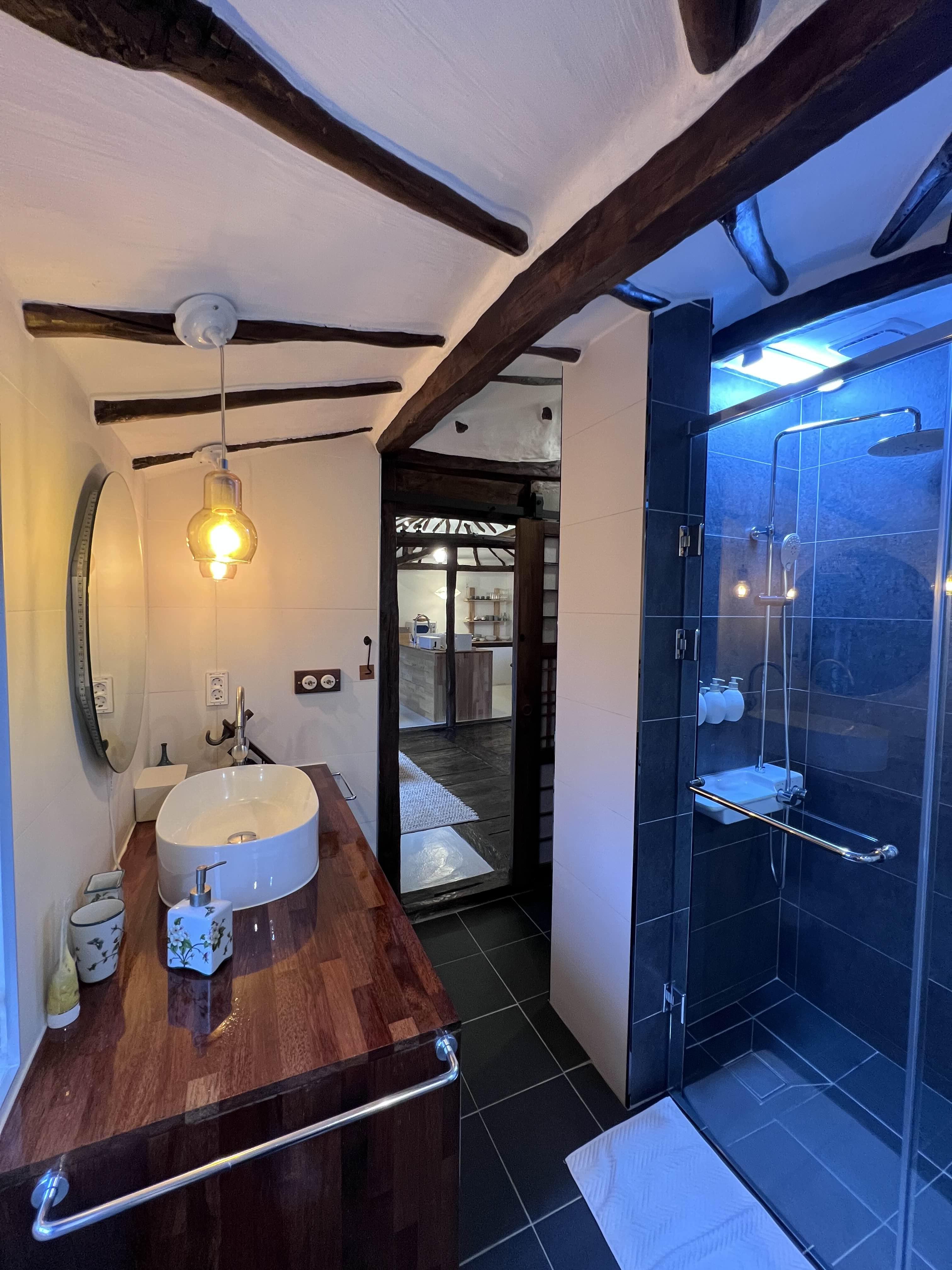소품들이 정말 예전 외양간 느낌을 연상케 한다. 소품들과 집 덕분에 시골집 또는 조선시대에서 목욕하는 것 같은 느낌이 든다.