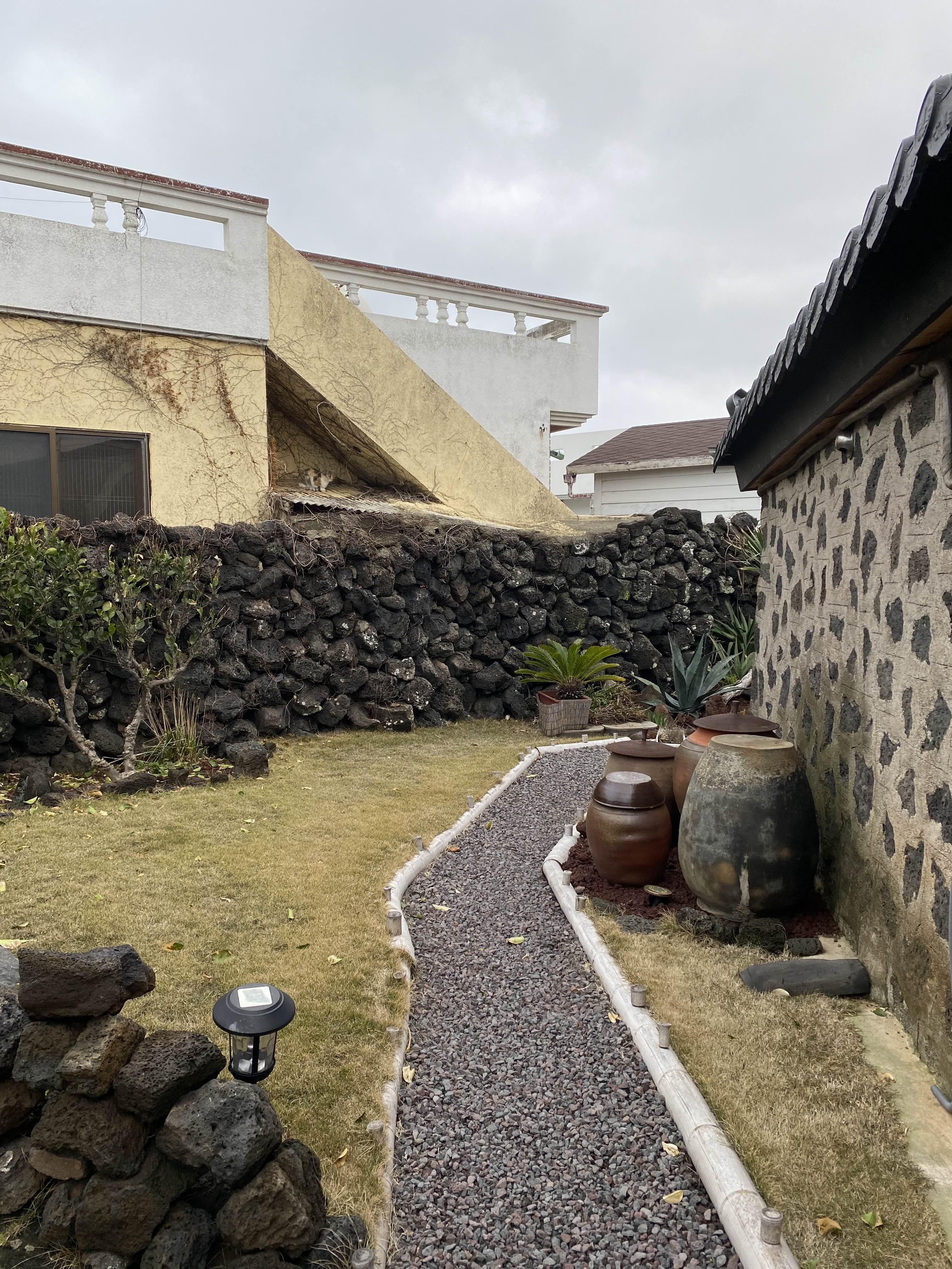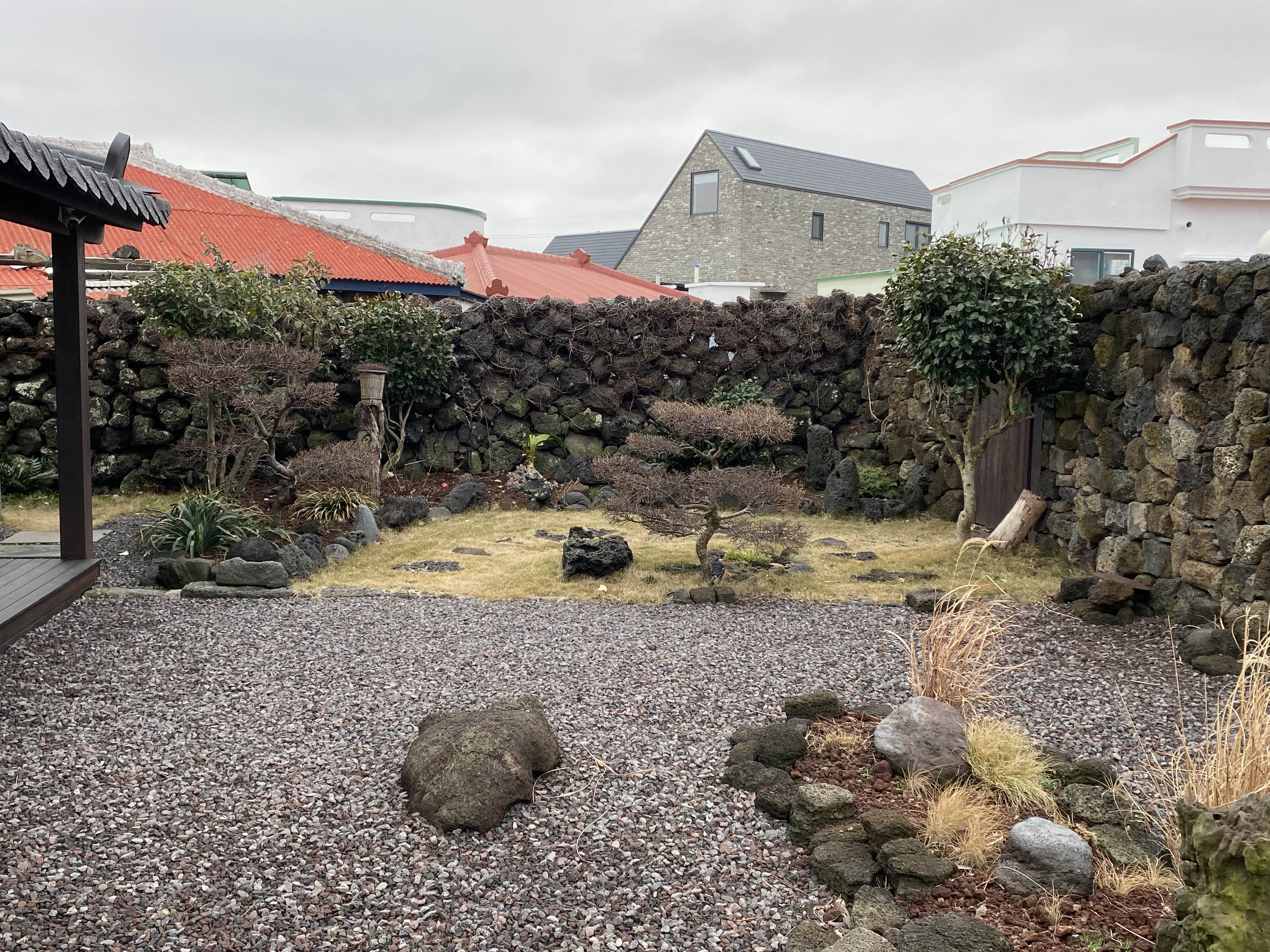 정원도 아기자기하게 잘 꾸며놓으셨고, 마당에는 제주 현무암이 잘 깔려있다. 사각사각 밟는 느낌도 좋고 제주스러운 분위기가 물씬 풍겨서 숙소에만 있어도 내가 제주도에 있구나를 깊숙이 느낄 수가 있다. 겨울에 날씨가 안 좋아도 좋았는데 날씨가 좋은 계절에 오면 숙소밖으로 안 나갈 것 같다.