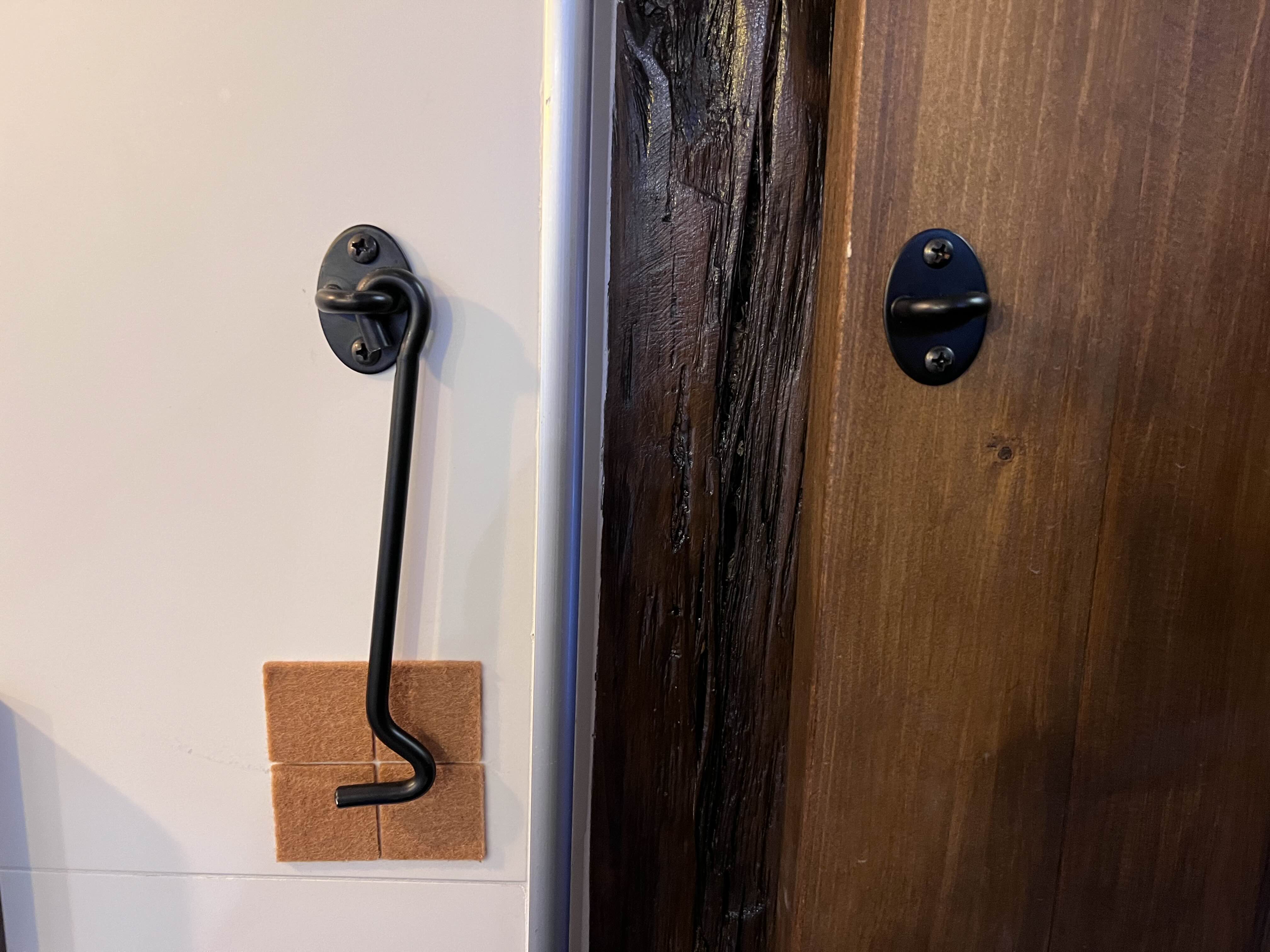 소품 하나하나가 안 이쁜 것들이 없고, 디테일 하나에도 얼마나 고심했을까, 이런 부분들까지도 신경 쓰셨구나 라는 걸 느낄 수가 있어서 찍어봤다. 특히나 전기 스위치가 일반적인 게 아니고 엔틱스러워서 너무 좋았다. 이런 집에는 저런 게 어울리지! 문고리도 타일에 부딪히는 소리가 신경 쓰일까 아래 스펀지 같은 것을 대어 났다. 저세상 센스다. 소화기도 흰색!