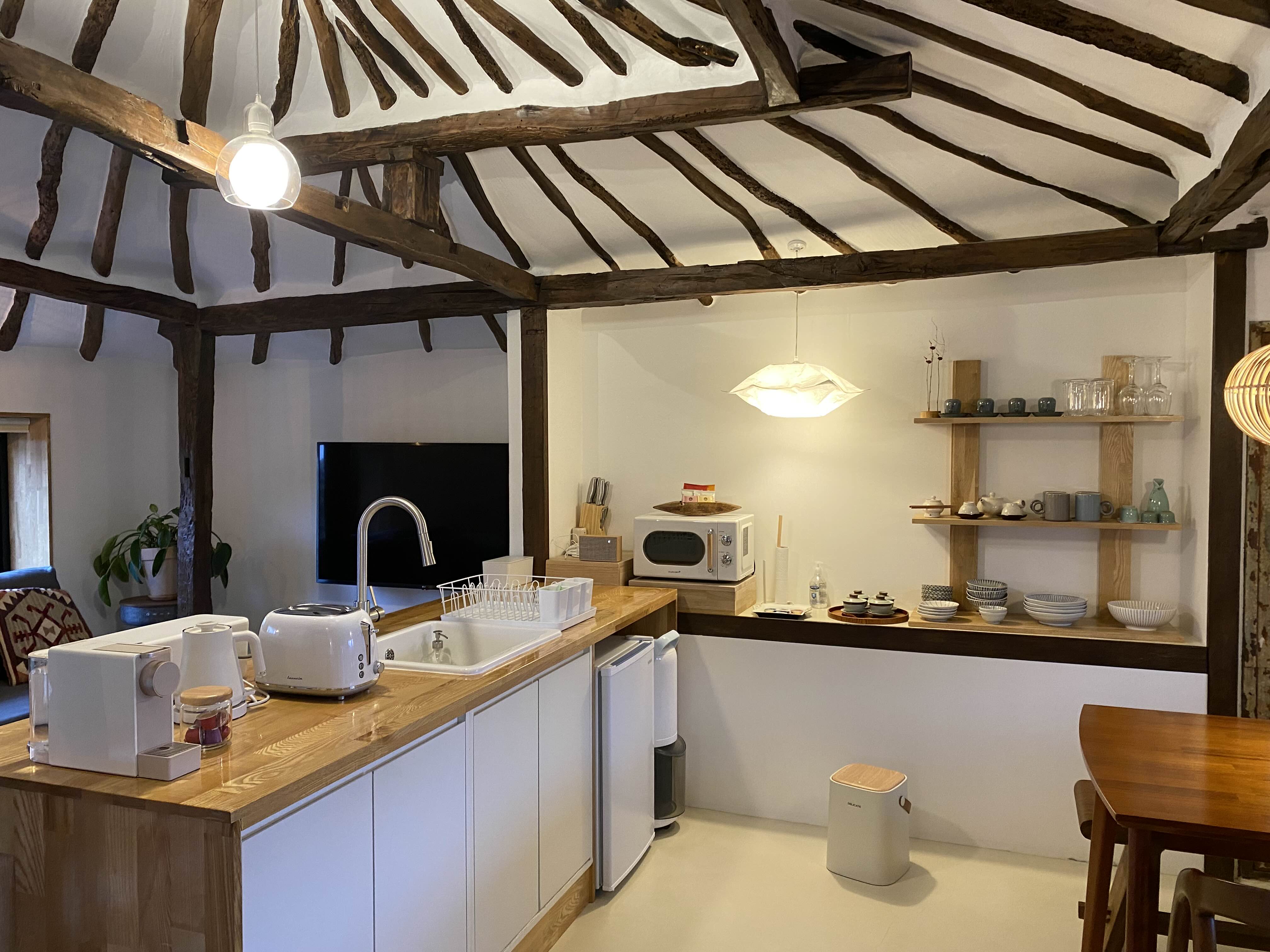 이 곳은 요리를 할 수 있는 부엌이다. 안거리에는 불을 쓸 수 없고 싱크대와 식탁이 있어 음식을 먹을 순 있다. 그래서 직접 요리를 하거나 간단한 조리를 해야 한다면 부엌에서 해 먹어야 한다. 부엌도 예전의 건물을 리모델링한 것인데 예스럽고 정겹고 좋다. 새 느낌이 나지 않고 오랫동안 잘 유지되어 온 느낌이다.