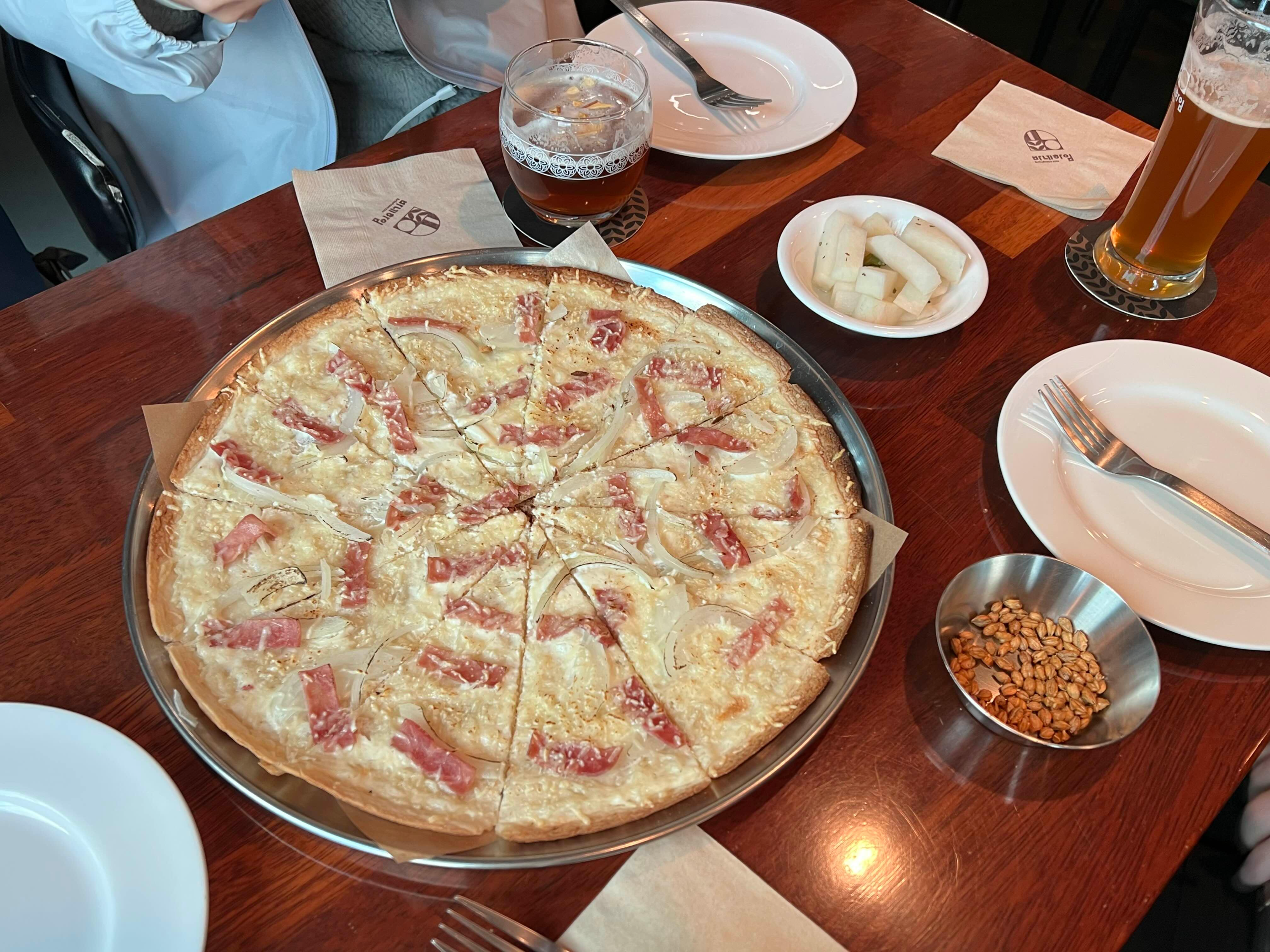 각자 좋아하는 맥주를 주문하고 피자를 주문했습니다.