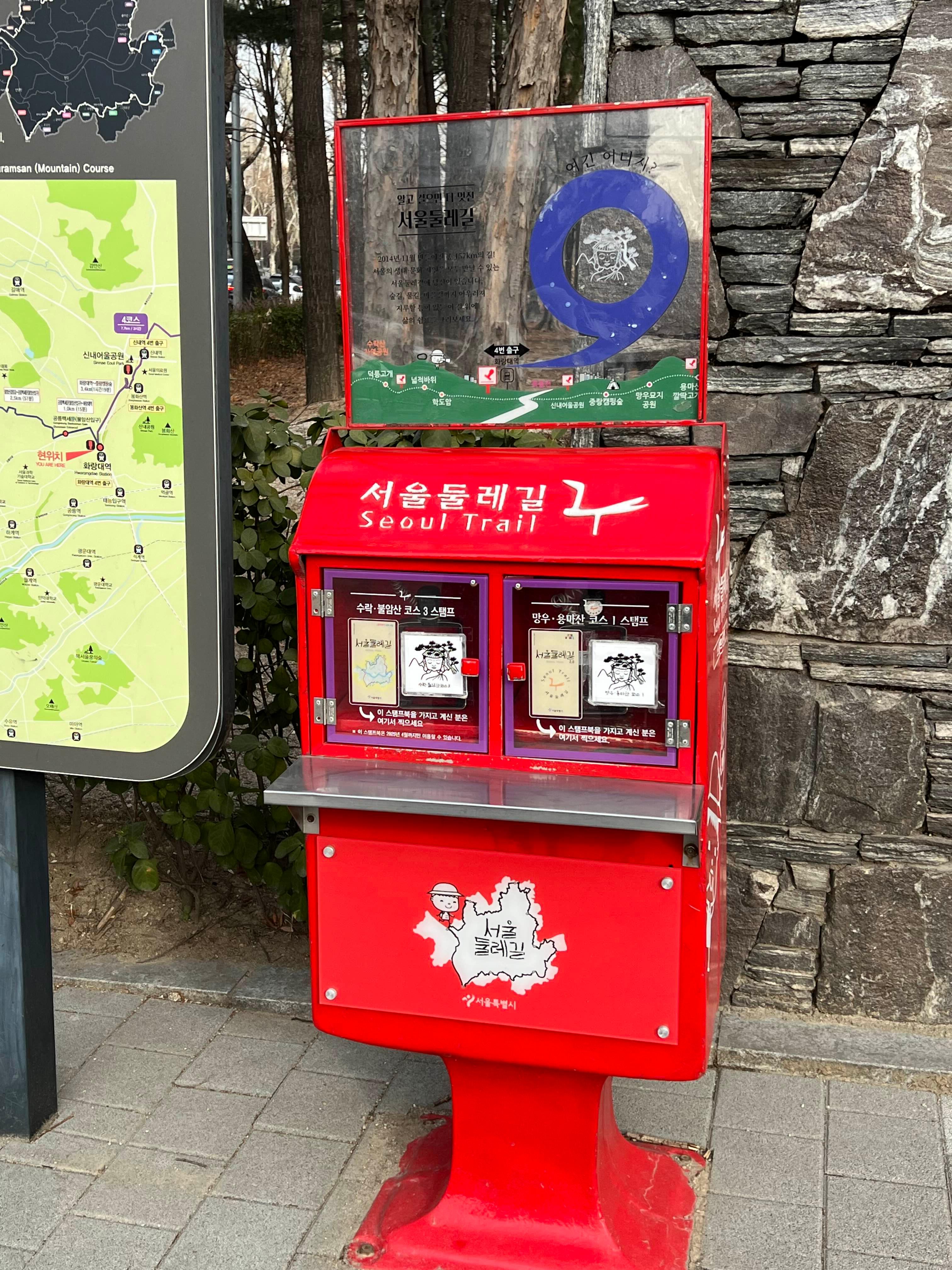 서울 둘레길 스탬프북이나 모바일여권스탬프 앱을 다운 받아서 인증받으세요.