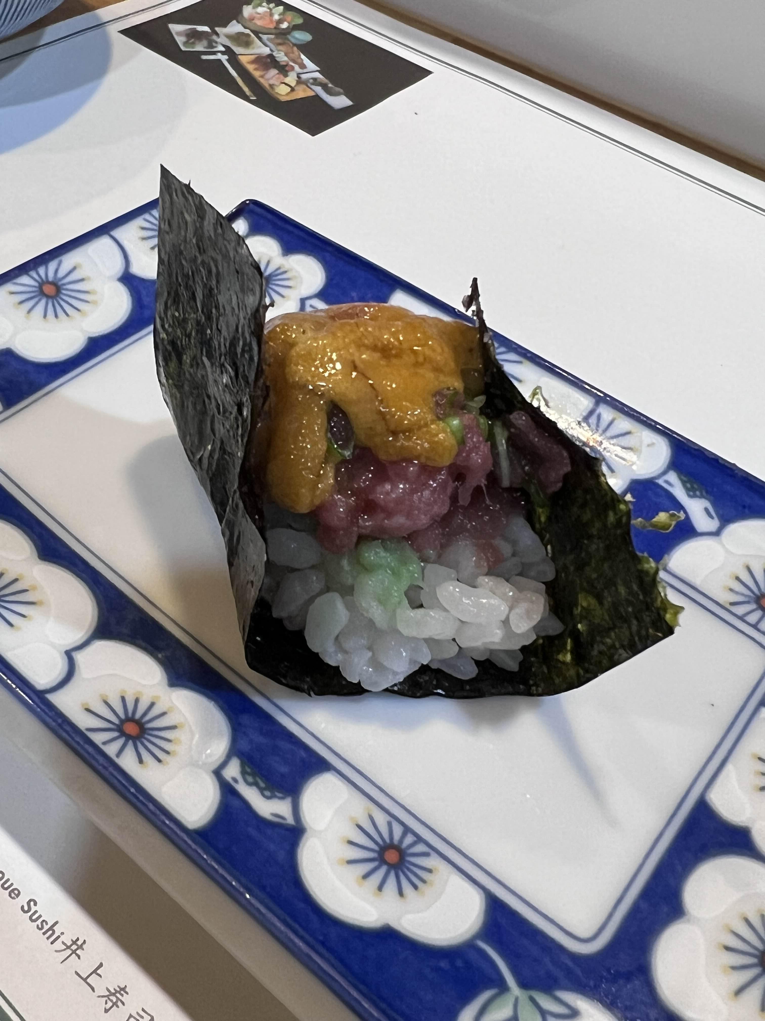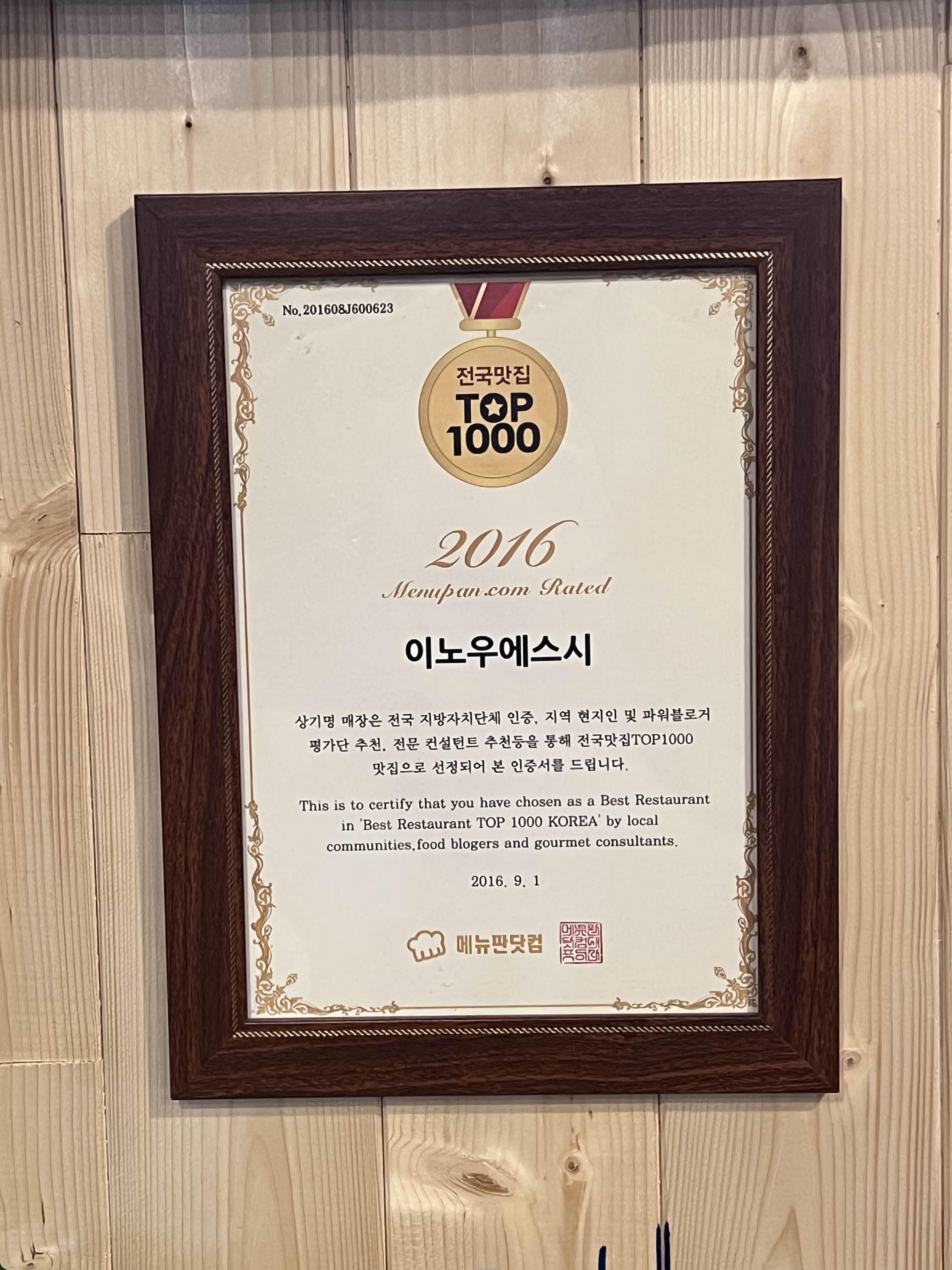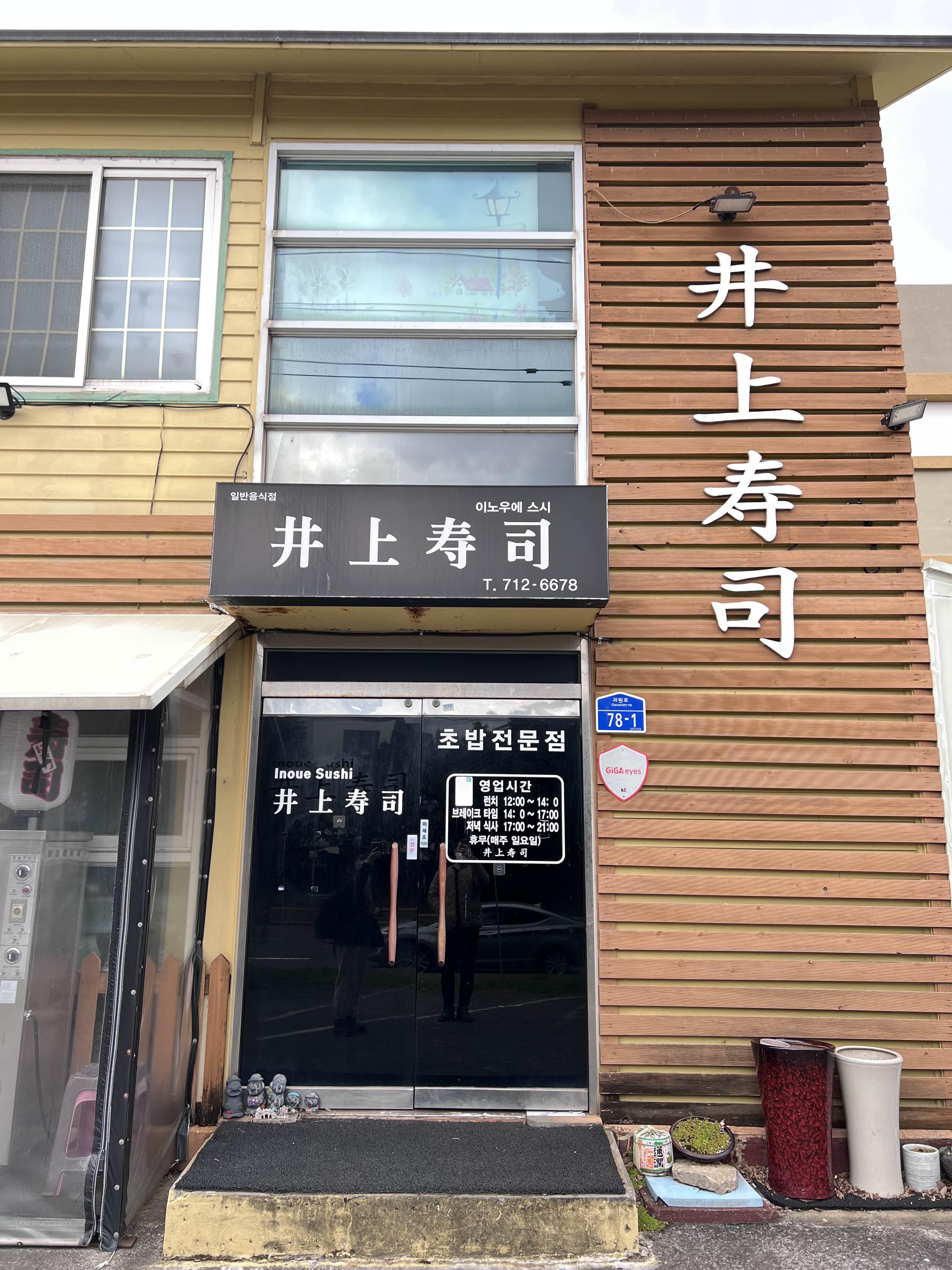 이노우에스시는 2016년에 전국맛집 TOP1000 에 선정될 정도로 맛이 괜찮은 곳이니 방문 보장해도 된다. 우리는 전화로 점심 오마카세 예약을 하고 갔다. 재료도 거의 다 제주에서 나는 재료로 만드신다.