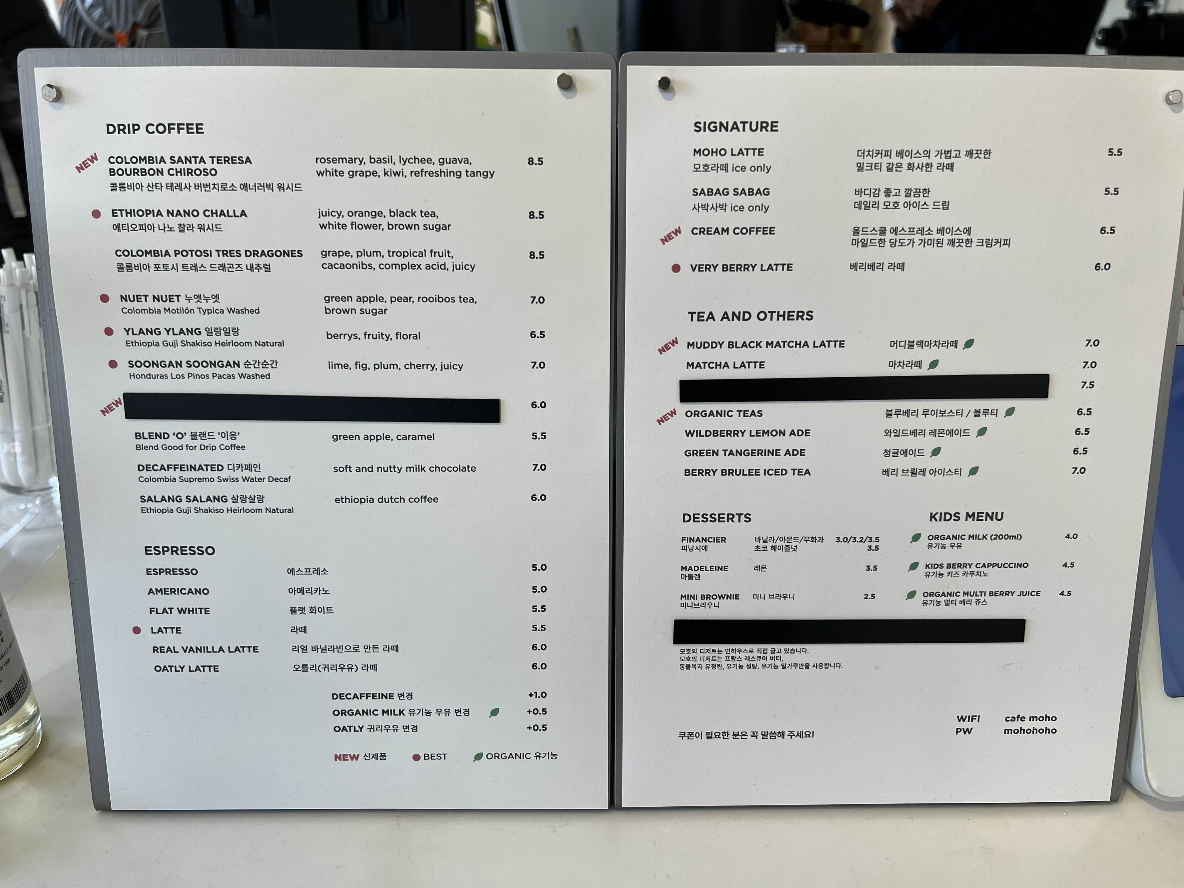3. 카페 모호 메뉴