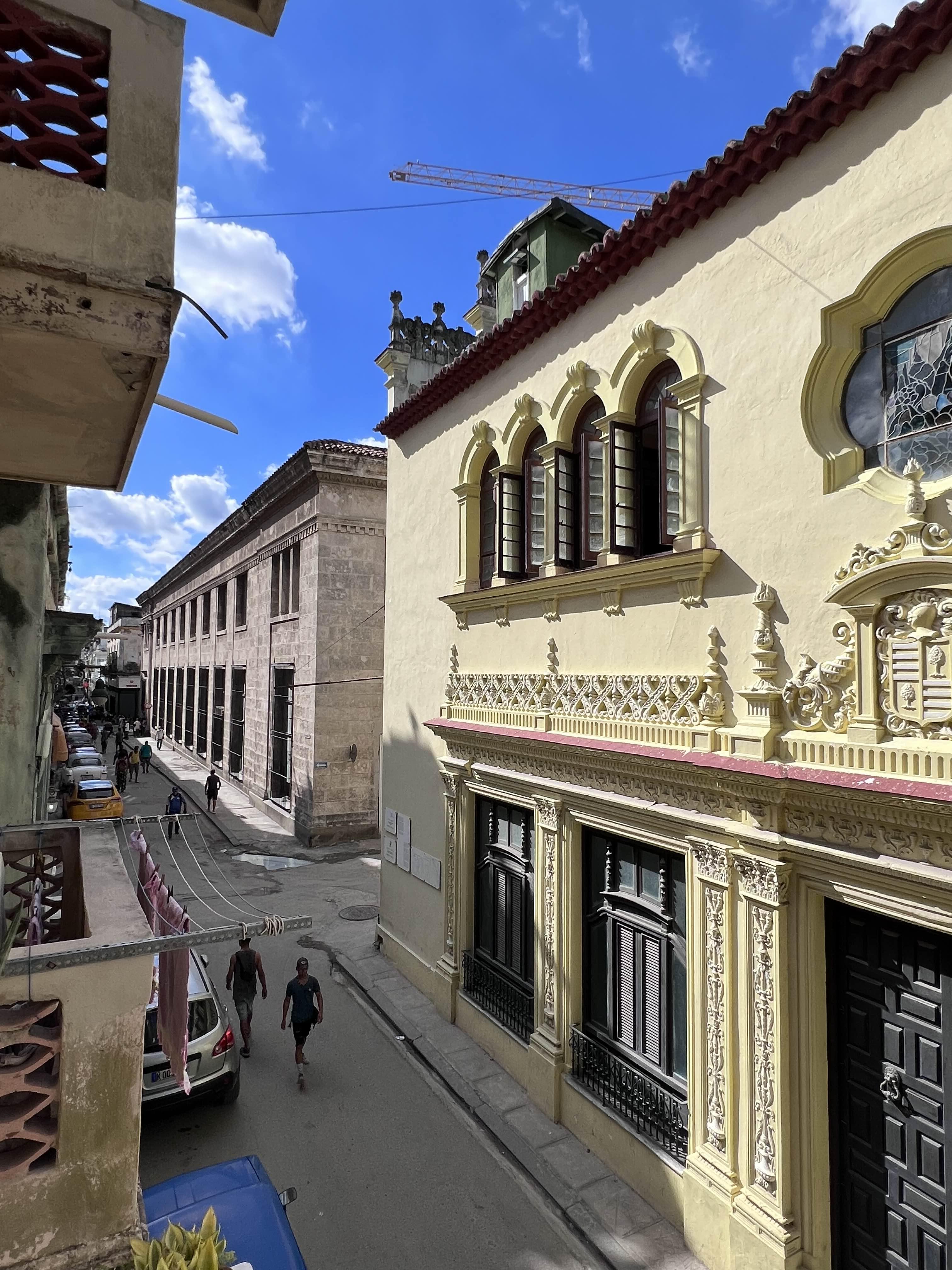 우리 테라스에서 본 길거리의 모습. 쿠바는 날씨가 엄청 좋고 햇살이 좋아서 항상 밝더라고요. 게다가 높은 건물이 없고 색감도 파스텔톤이라 더 아늑한 느낌입니다. 정말 얼마나 자주 페인트칠을 하는 건가 싶습니다.