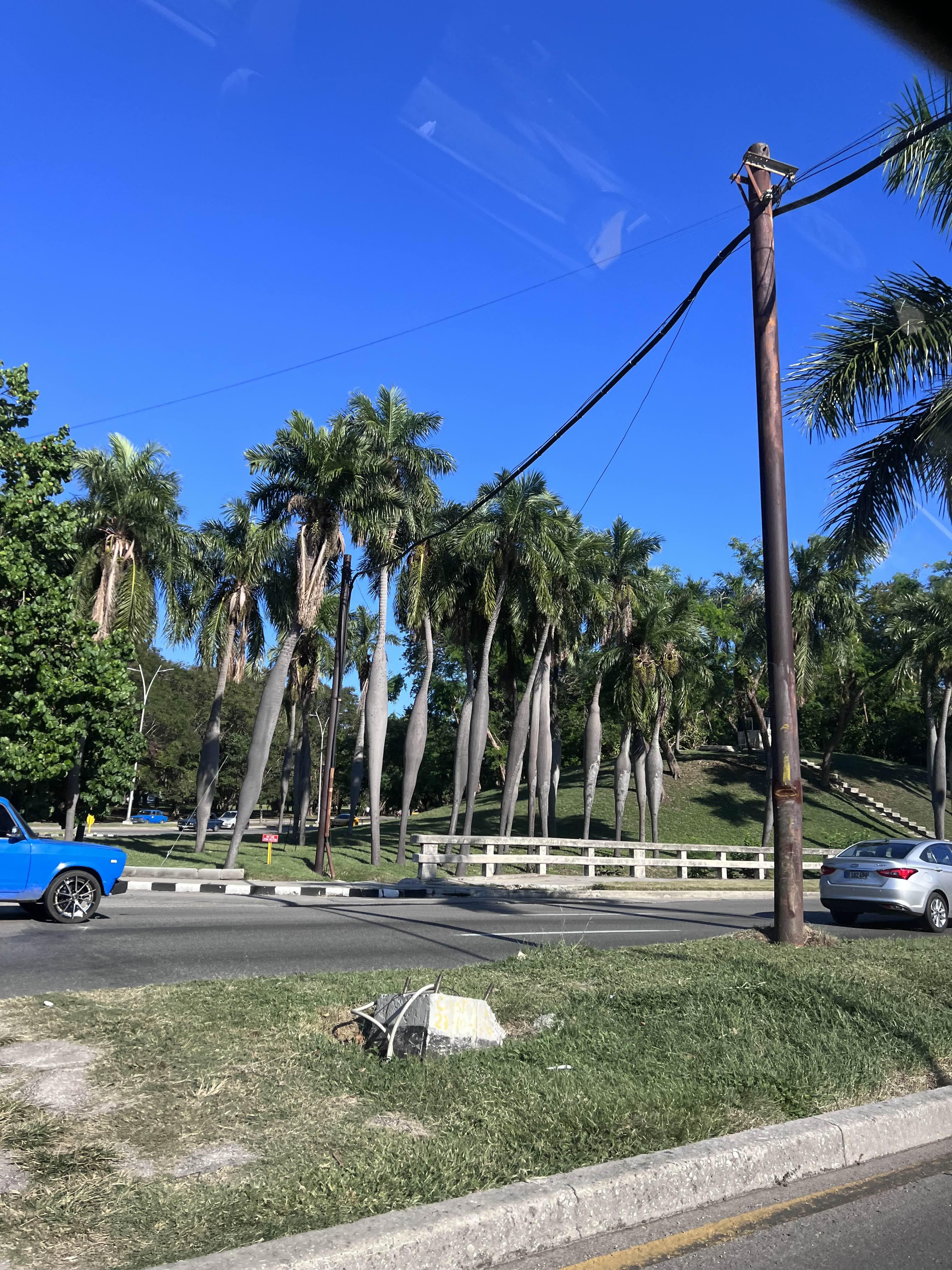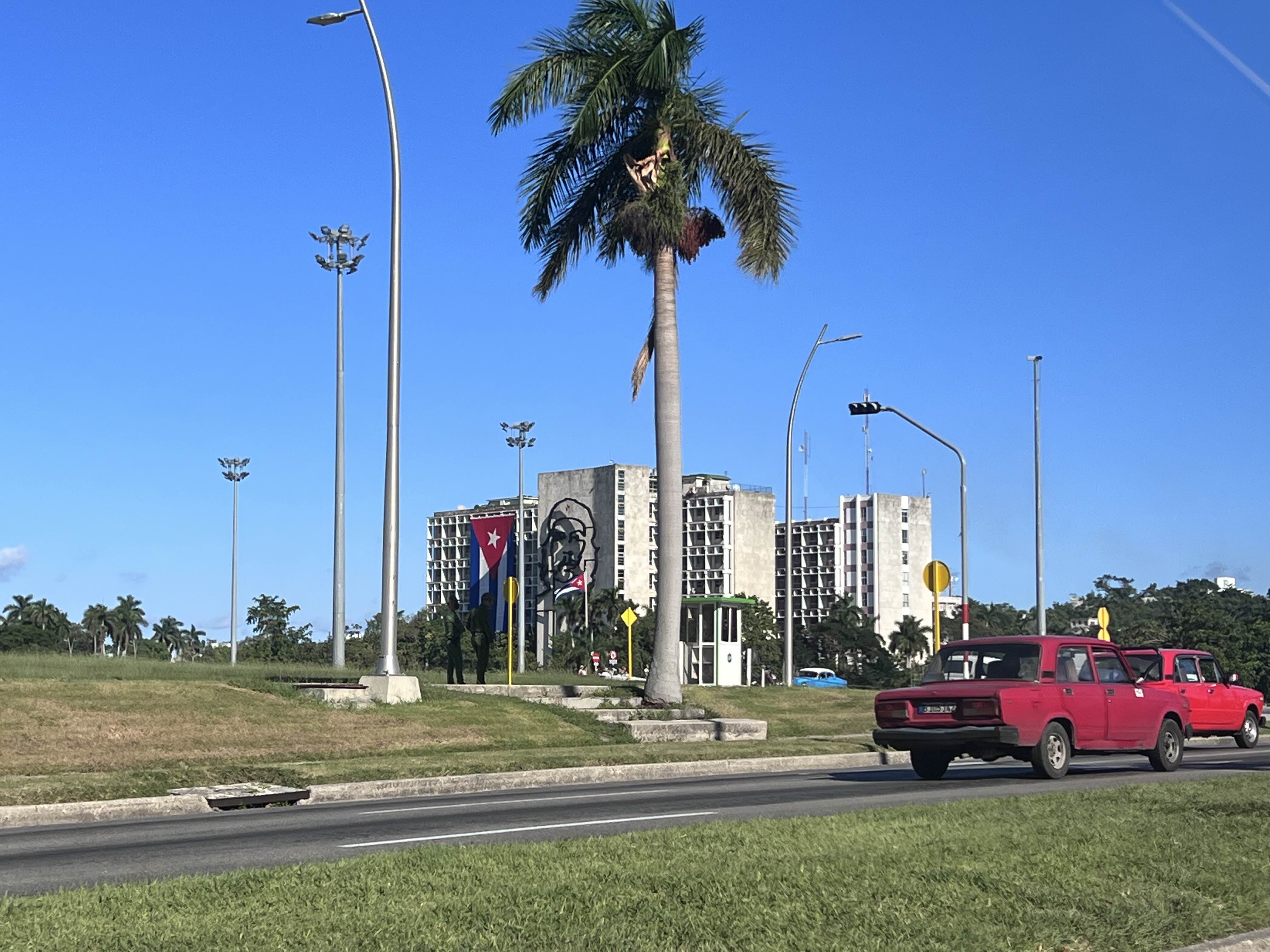 공항에서 시내까지 약 30분정도 소요됩니다. 숙소 앞까지 데려다주니까 창밖 구경을 좀 하면서 갑니다. 가는 길에도 올드카가 꽤 많이 보이고 야자수 나무도 많이 보입니다. 나중에 오게 될 기념탑과 체게바라 얼굴이 보이는 광장도 지나갑니다.