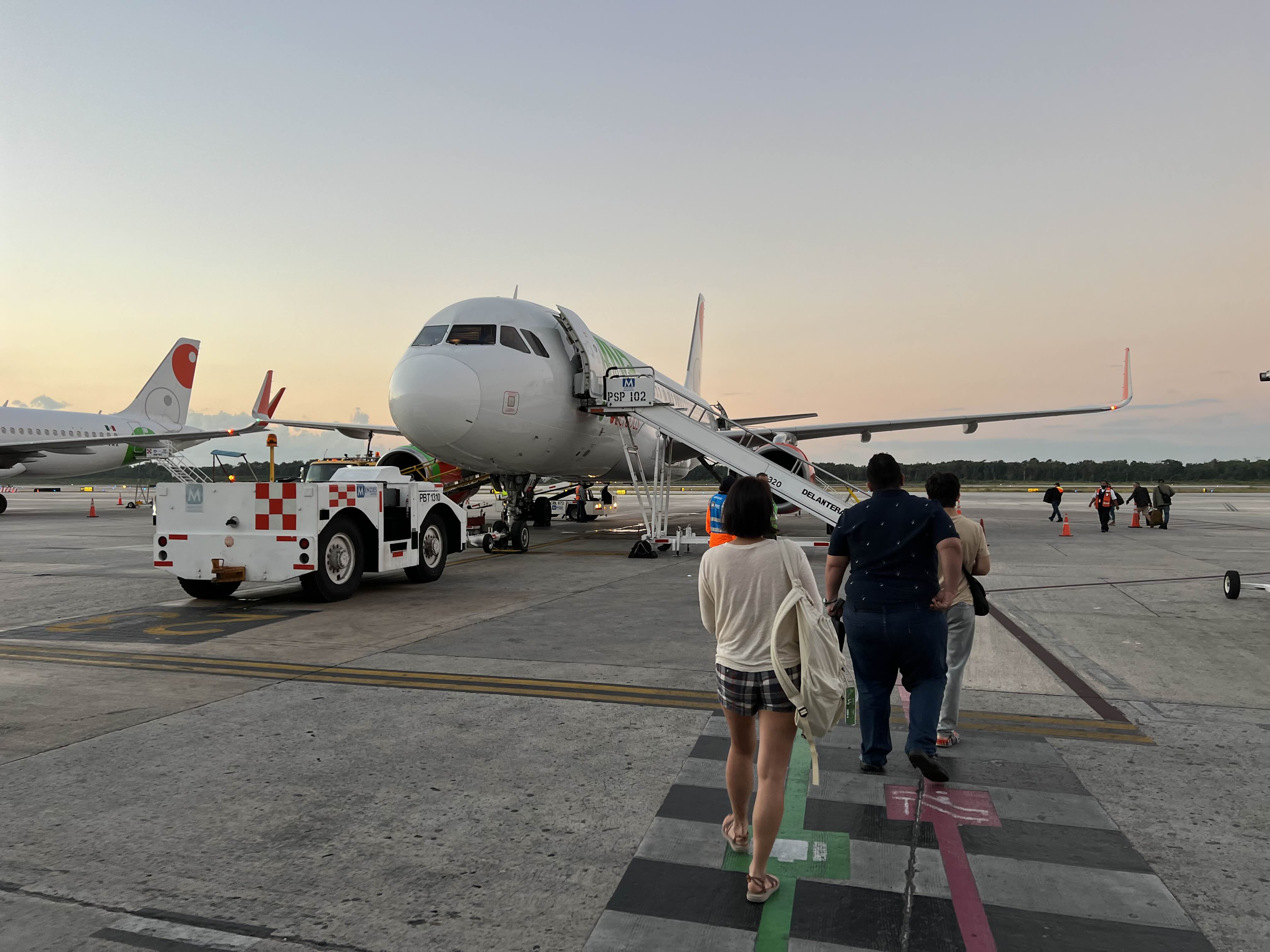 드디어 쿠바로 가는 비행기로 이동 중. Viva편이 가장 싸기도 했고, 어차피 한 시간이면 가기 때문에 좋은 비행기를 탈 필요가 없다. 보통 버스로 데려다주던데 여기는 그냥 걸어서 이동했다. 아름다웠던 칸쿤 이제 안녕! 이제 쿠바로 간다!