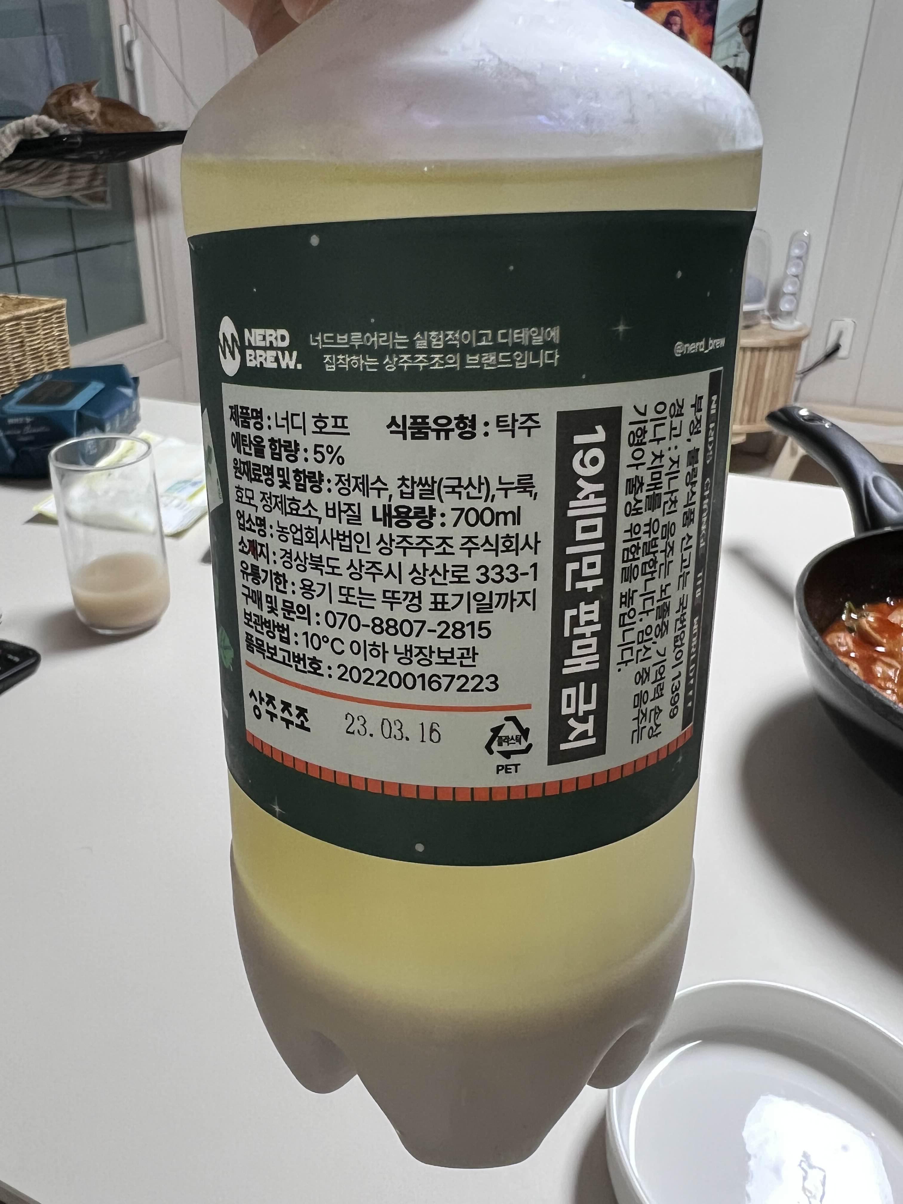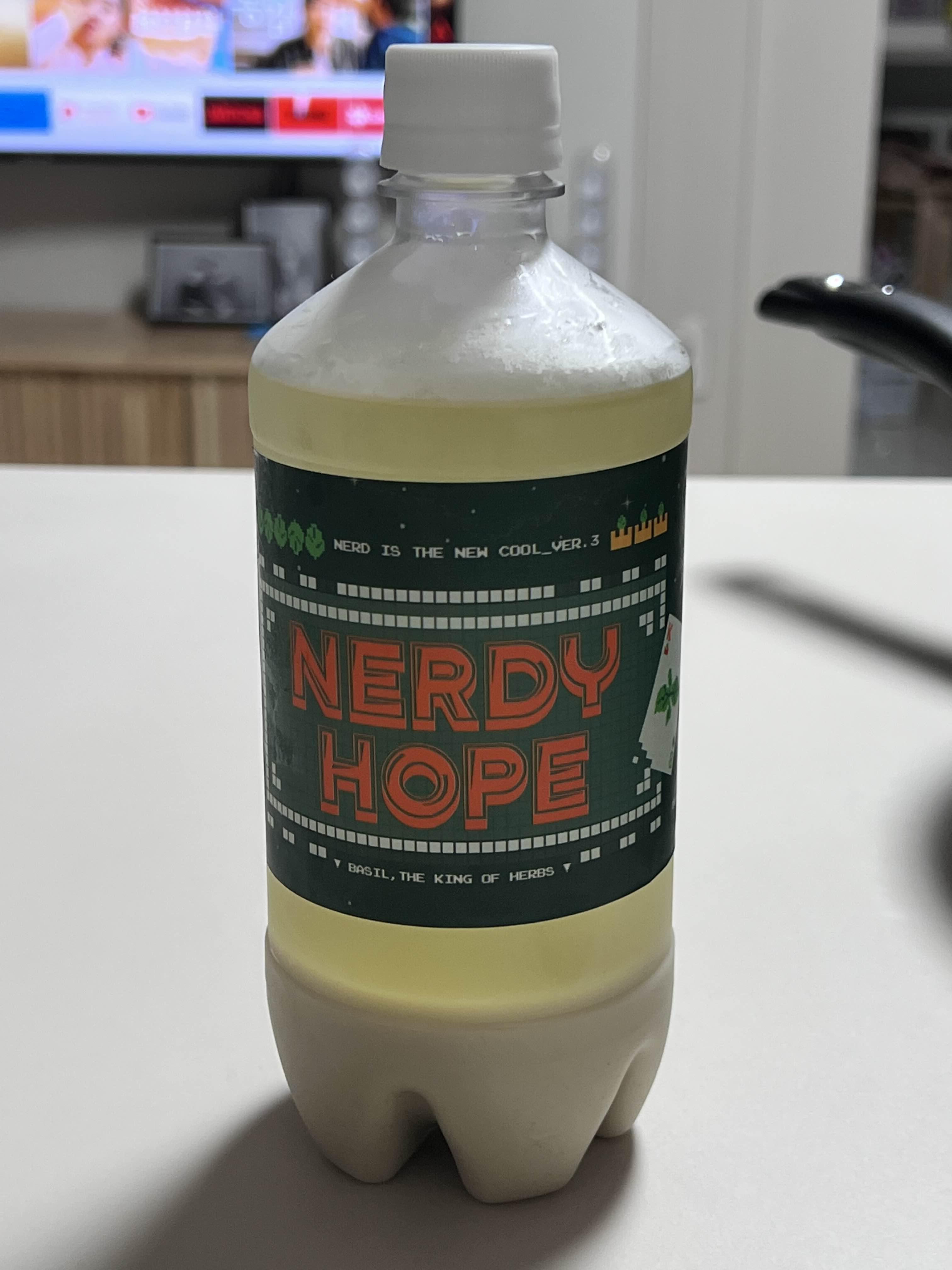너드브루어리에서 만들었고, 실험적이고 디테일한 상주주주의 브랜드라고 합니다. 5% 도수에 찹쌀로 만들고 신기하게 바질이 들어갑니다. 바질막걸리라 궁금해서 구매해 봤는데요, 정말 바질향이 향긋하게 나서 좋았습니다. 이렇게 실험적인 막걸리가 요즘 많이 당기는 것 같아요. 와인도 맛이 다르고 다양하듯이 막걸리도 다양하고 무슨 재료로 만들어졌는지에 따라서 맛이 천차만별인 것 같아요. 음식과 같이 먹기보다는 간단하게 맥주처럼 간단한 안주와 먹는 게 좋을 것 같아요. 막걸리는 많이 마시지 않는 분들도 이렇게 한 잔 맛볼 겸 드셔보면 좋겠네요.